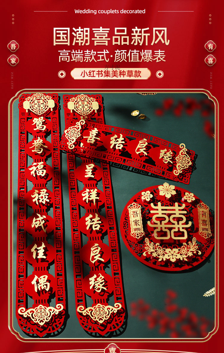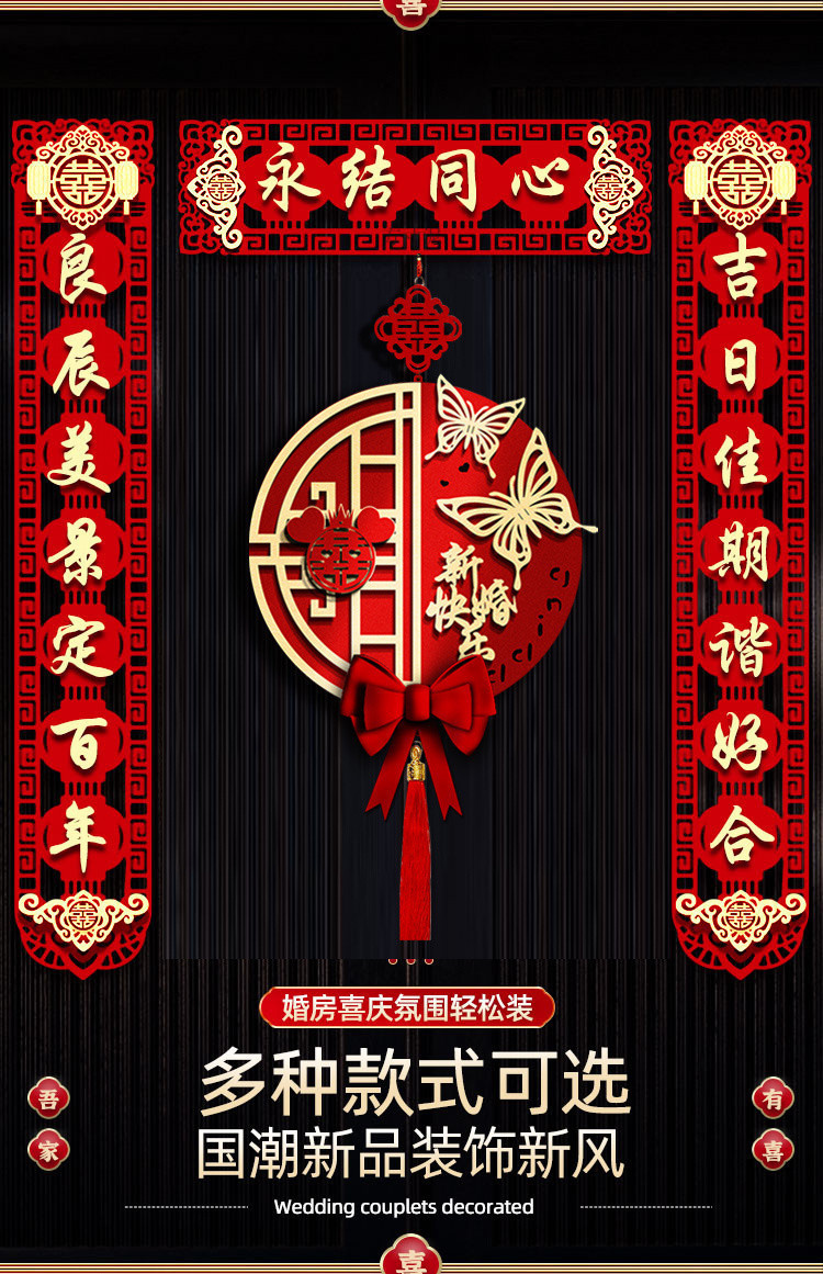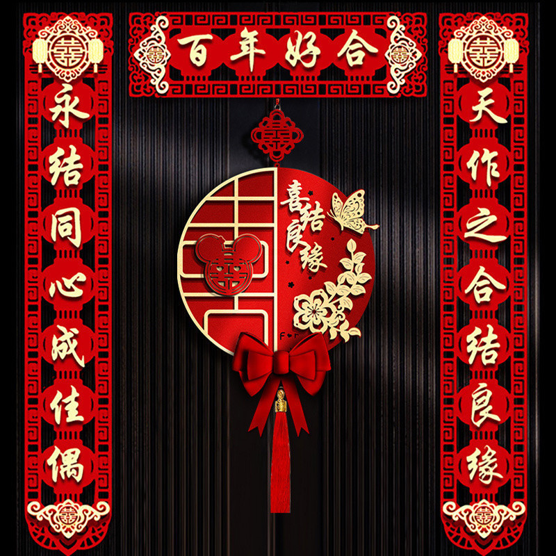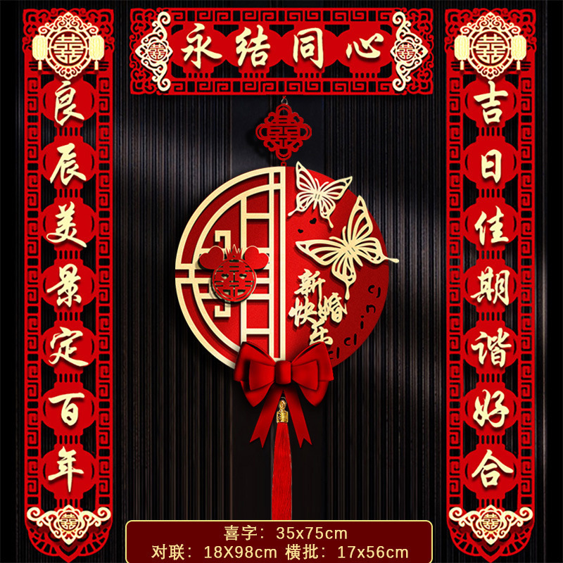 结婚对联大门婚联婚房布置男方女方新房装饰喜联入户门喜字贴套装