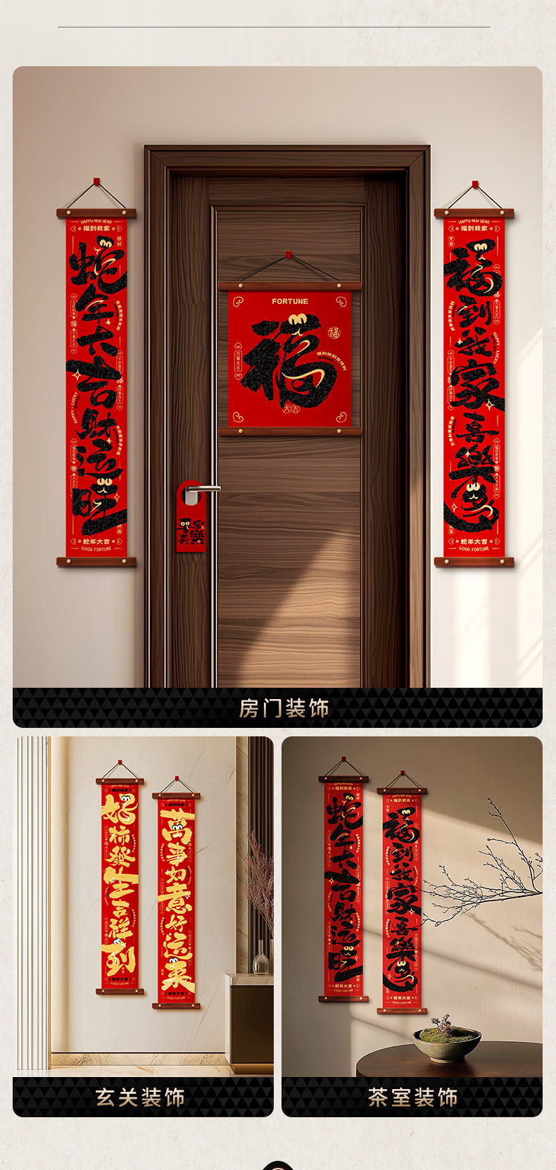 2026蛇年新年绒布春联喜庆大门装饰元旦入户门防水生肖对联批发