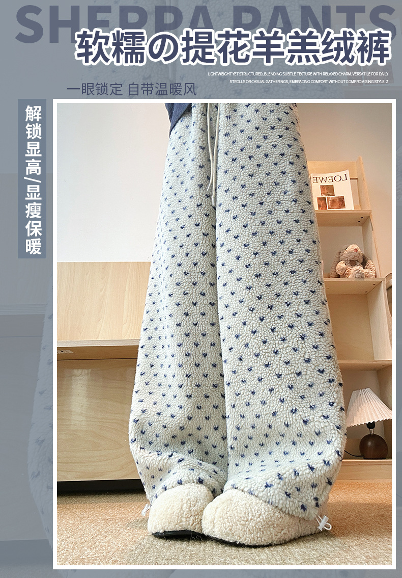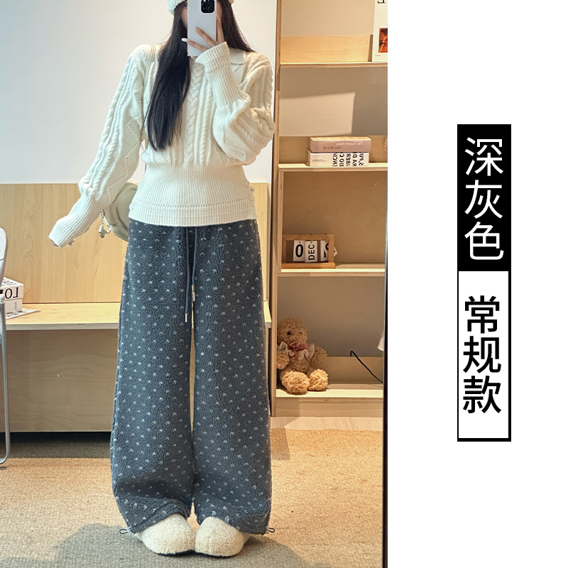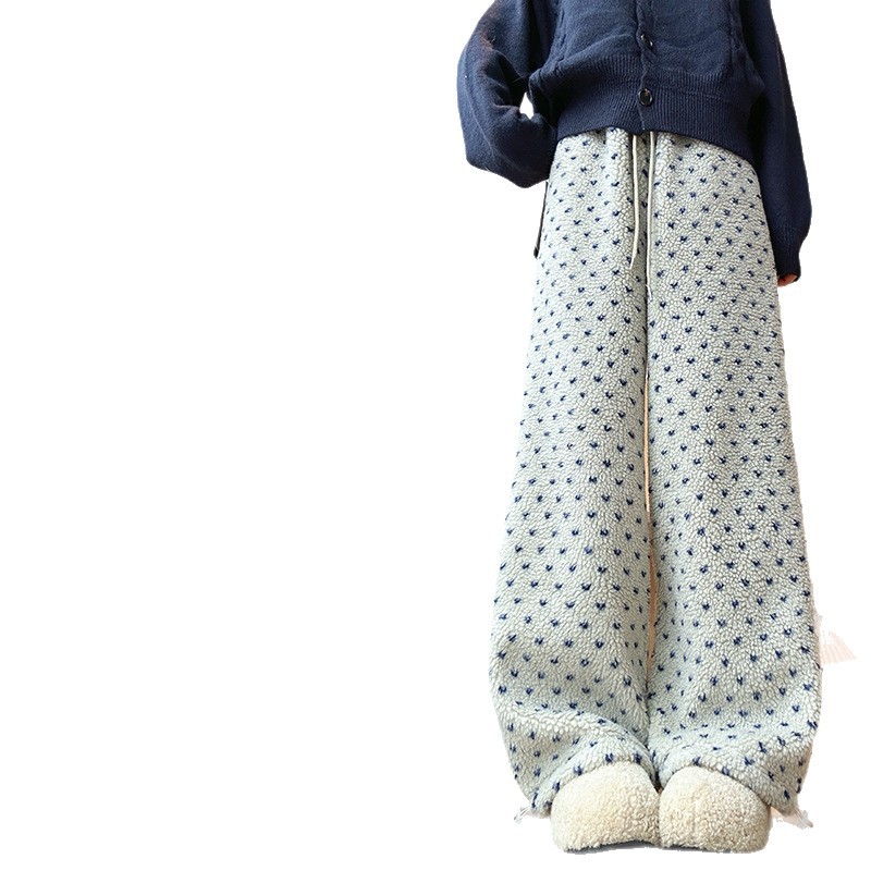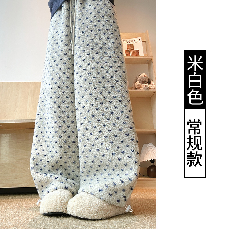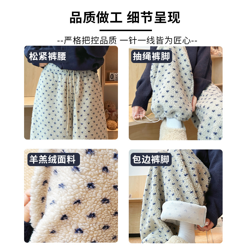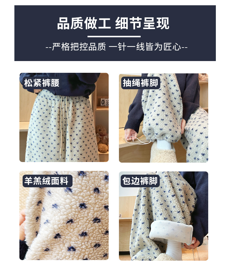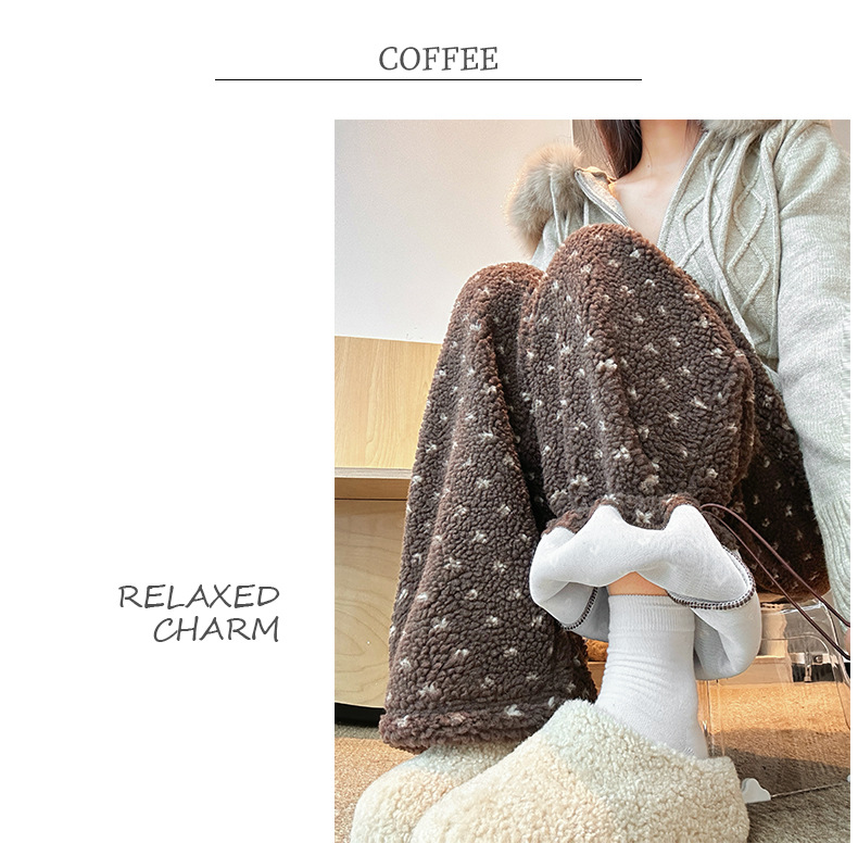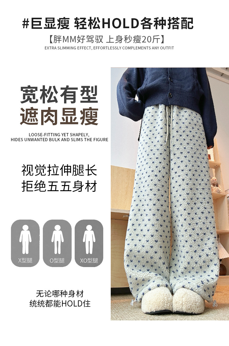 波点羊羔绒阔腿裤冬季保暖裤子女冬时尚感高腰抽绳居家休闲裤批发