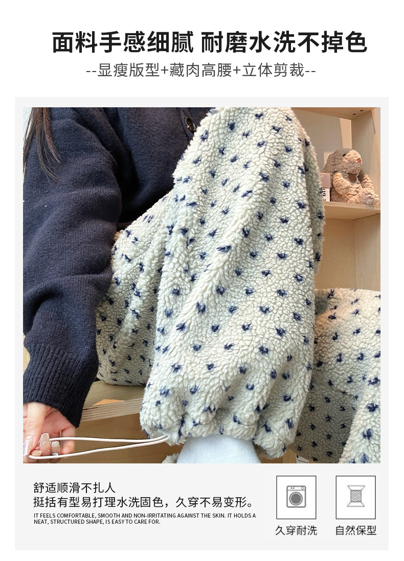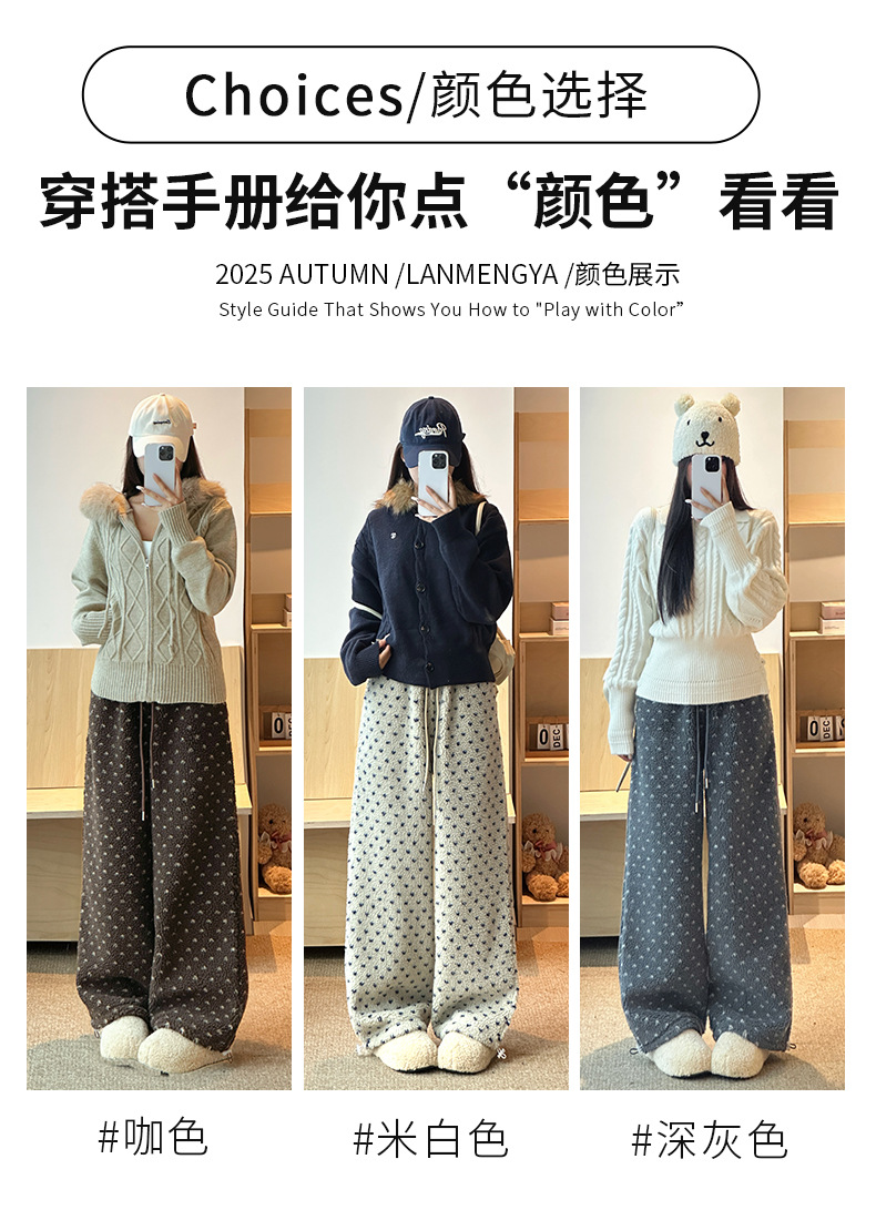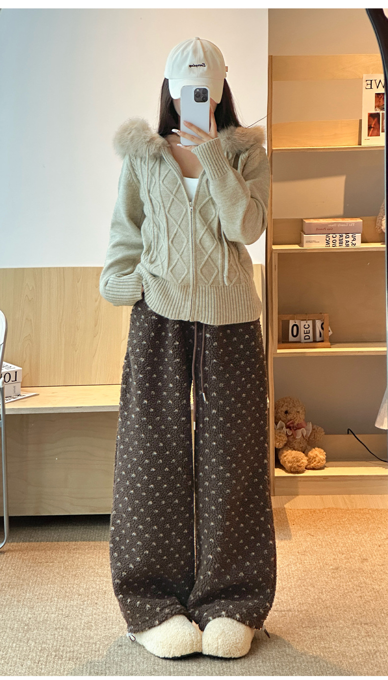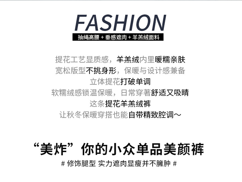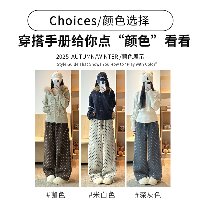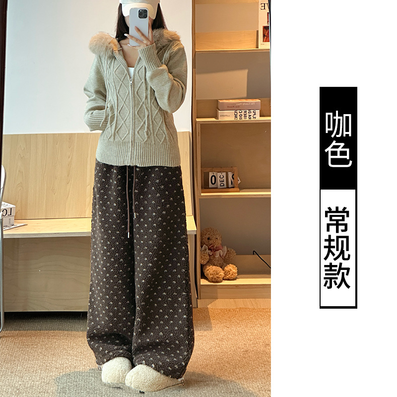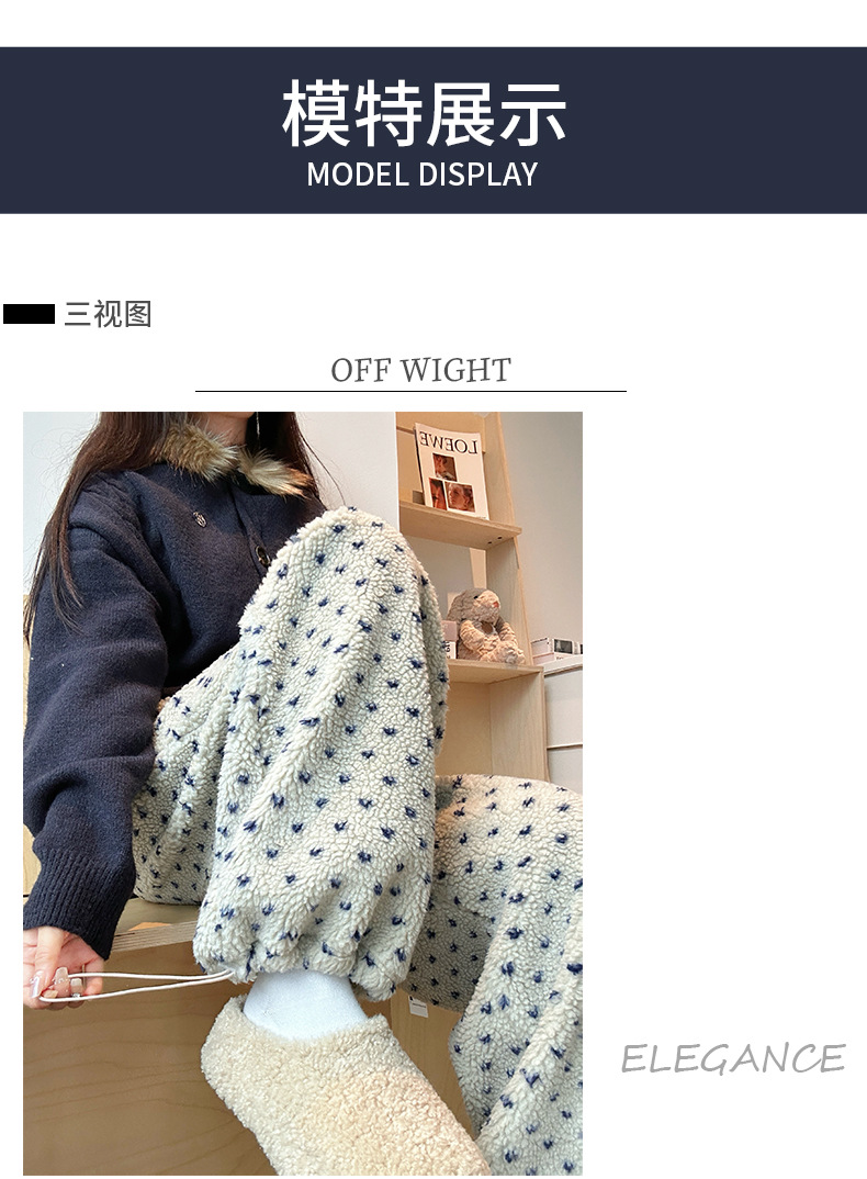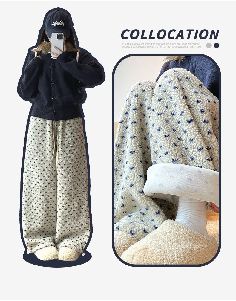 波点羊羔绒阔腿裤冬季保暖裤子女冬时尚感高腰抽绳居家休闲裤批发
