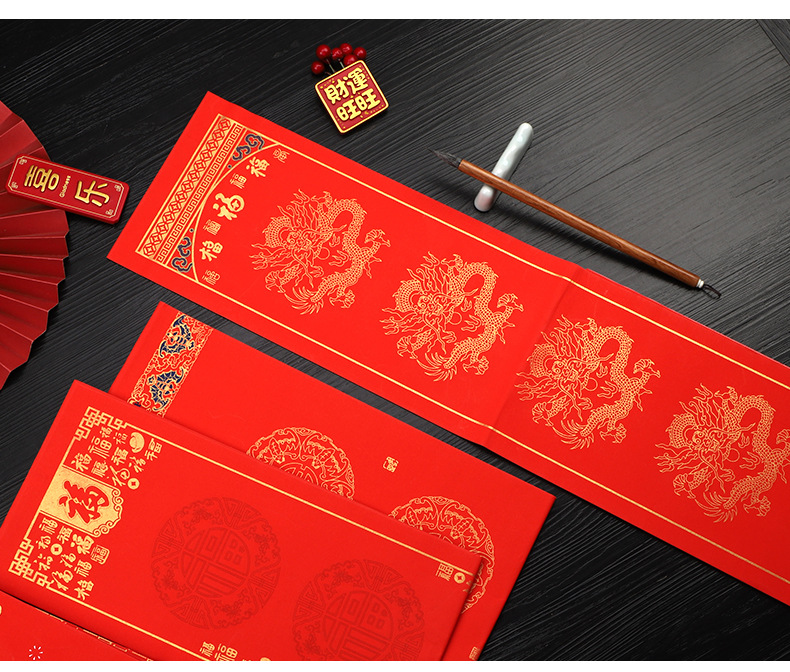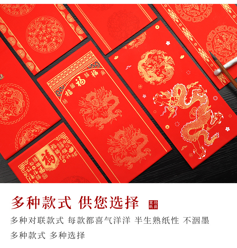 新春七言对联喜庆万年红空白手写加厚宣纸结婚春节专用纸福字批发
