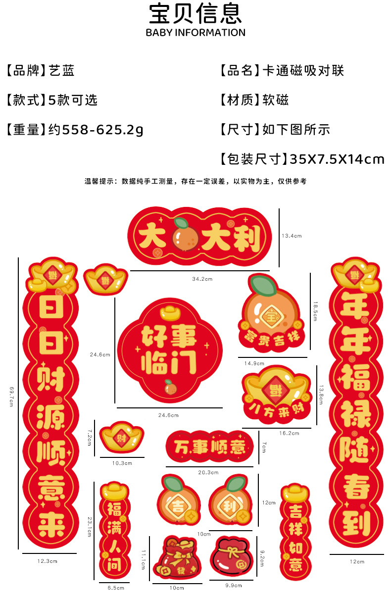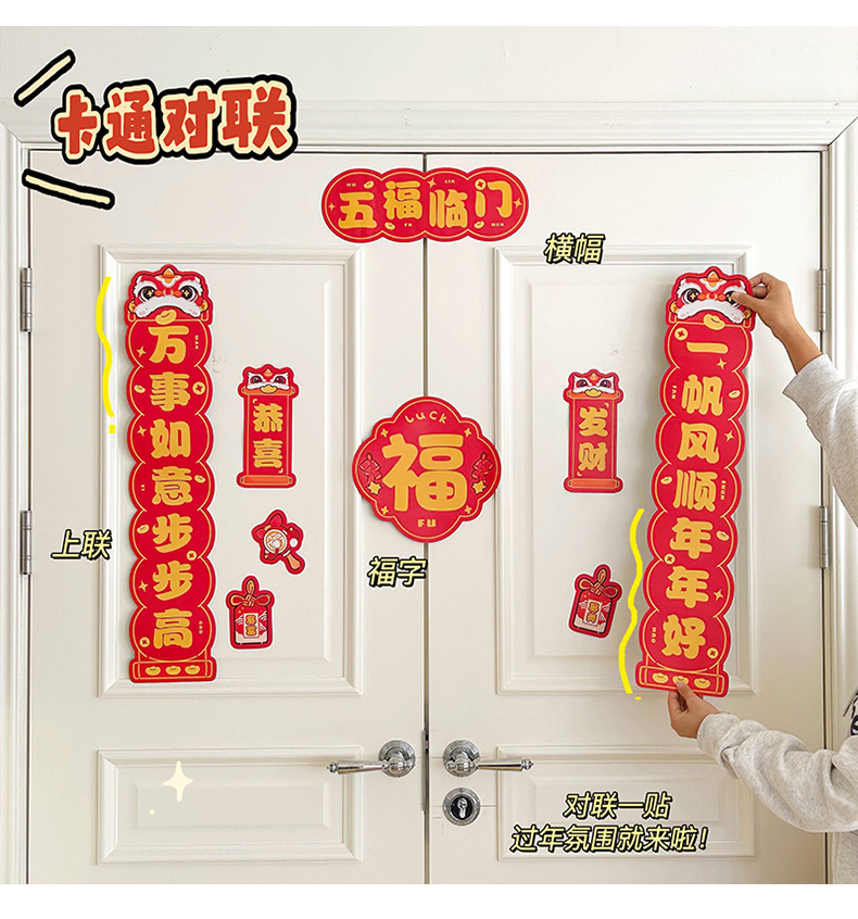 2025春联磁吸对联套装创意卡通新年春节福字过年小区入户门联装饰