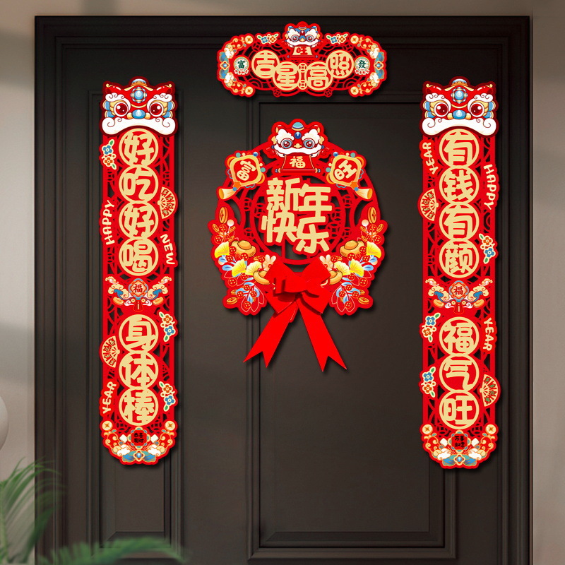 新款元旦新年装饰毛毡布对联过年春节新居入户门大门装饰布置春联