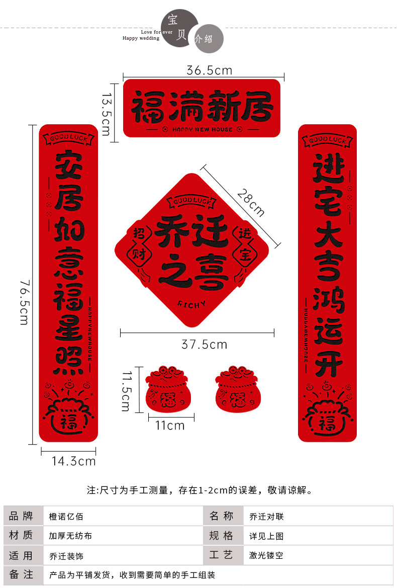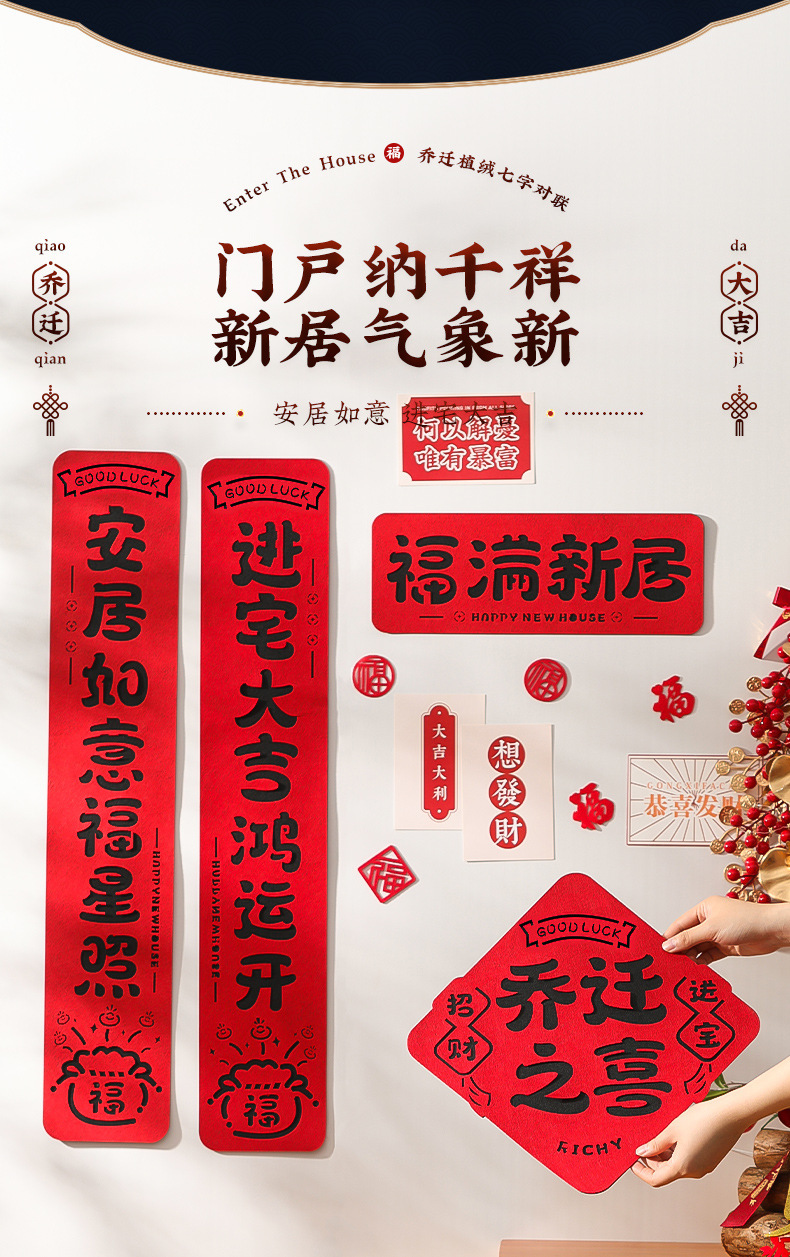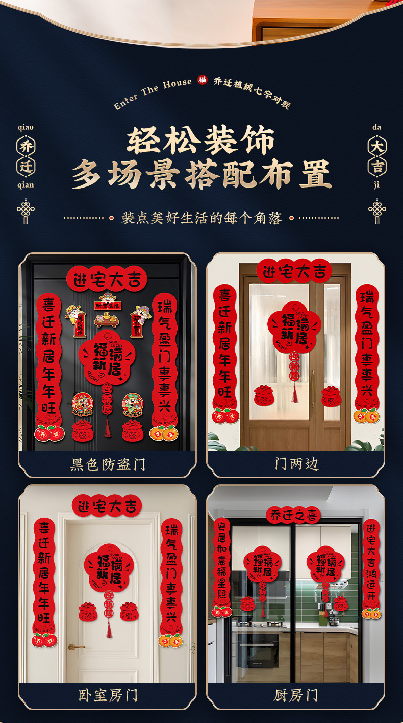 乔迁之喜磁吸对联新居进宅大吉入户门贴搬家入宅仪式布置装饰用品