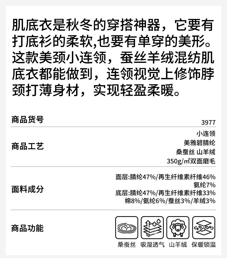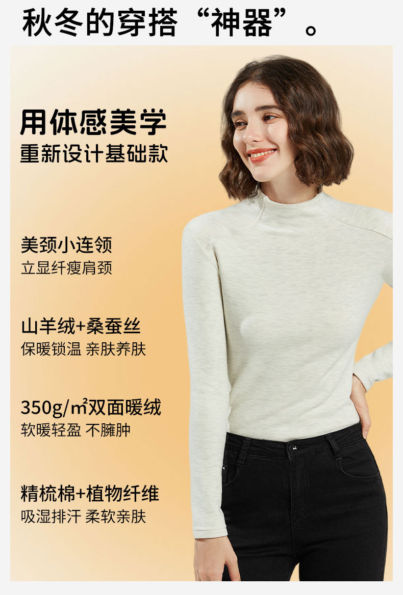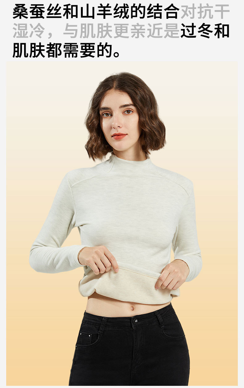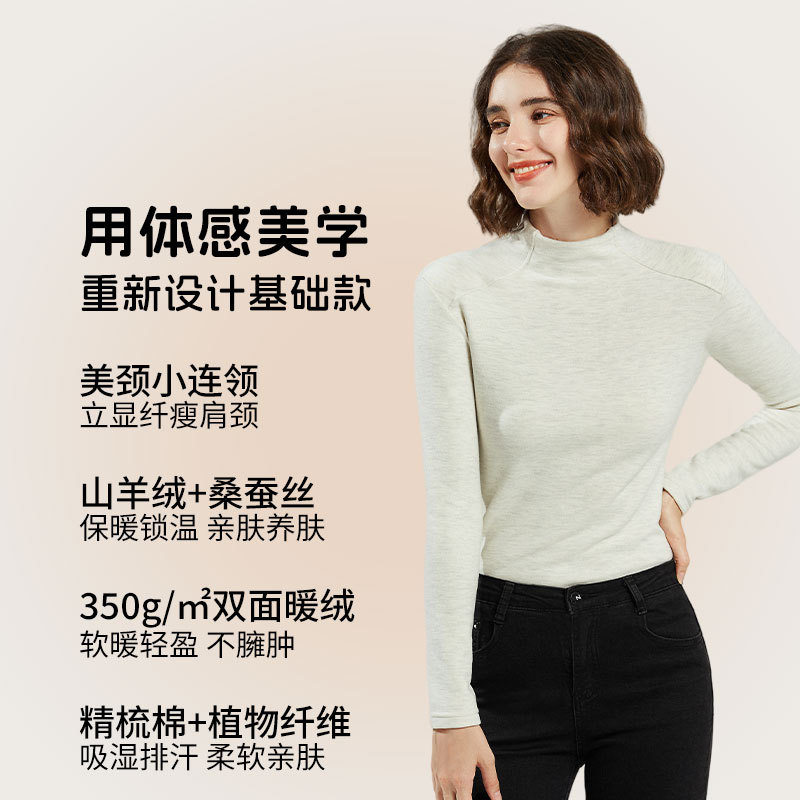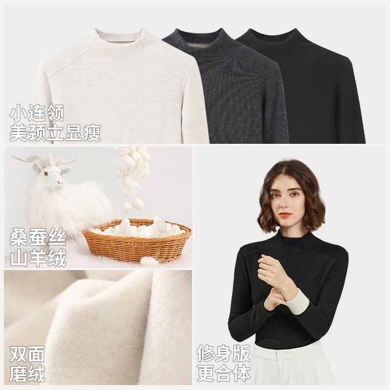 【蚕丝羊绒】德绒打底衫女内搭半高领保暖打底秋衣连领肌底衣女冬