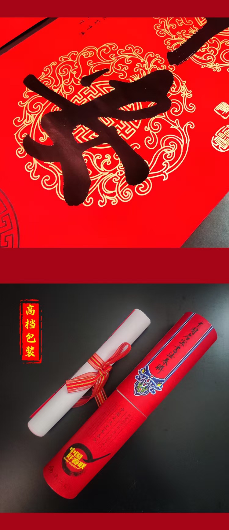 2026年名家书法对联红底烫黑金高档红色桶装春联送礼家用别墅厂家