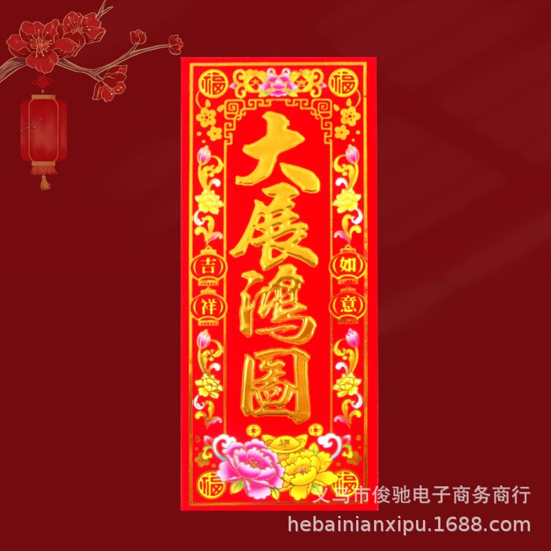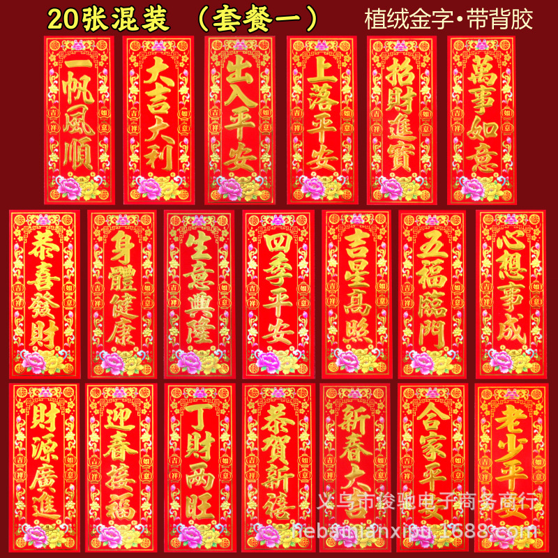 | flocking spring festival couplets 12.5 * 30cm (with adhesive tape)(植绒挥春12.5*30cm(带背胶)) | USD $1.13 | 1688 pack available |