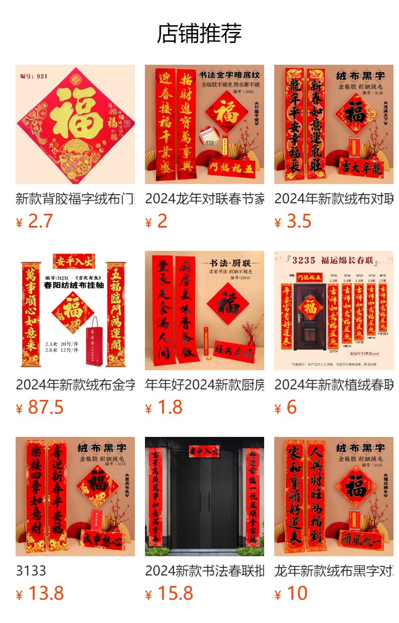 2026年带背胶新春对联植绒金粉耐晒名家春联龙年批发大字龙年春联