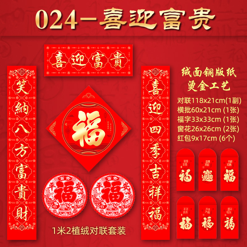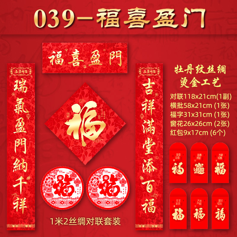 2026广告对联定制马年植绒丝绸春联高档礼盒背胶加印烫金logo福字