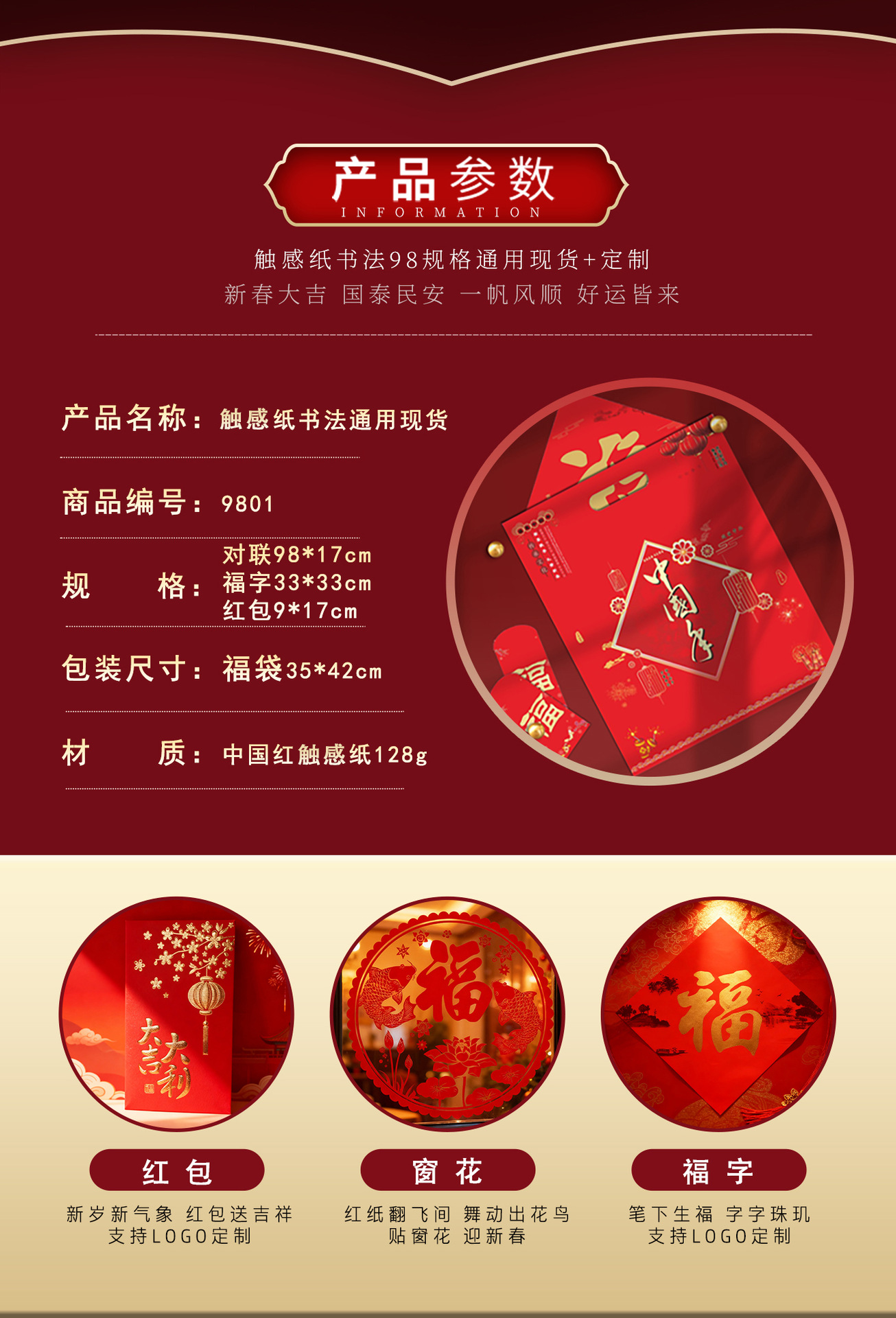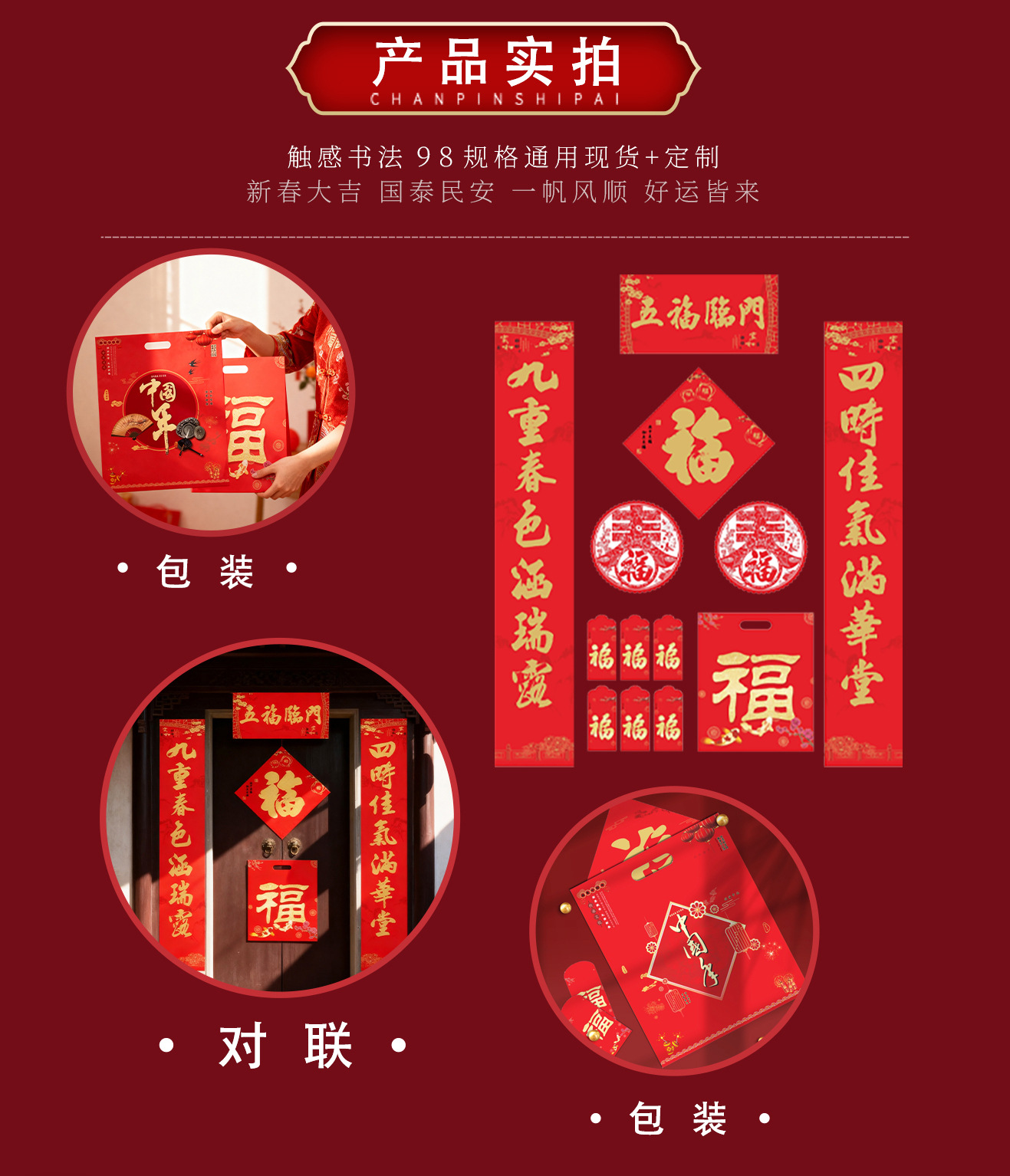 2026马年书法对联大礼包中国红触感纸特种纸防晒98CM春联套装批货