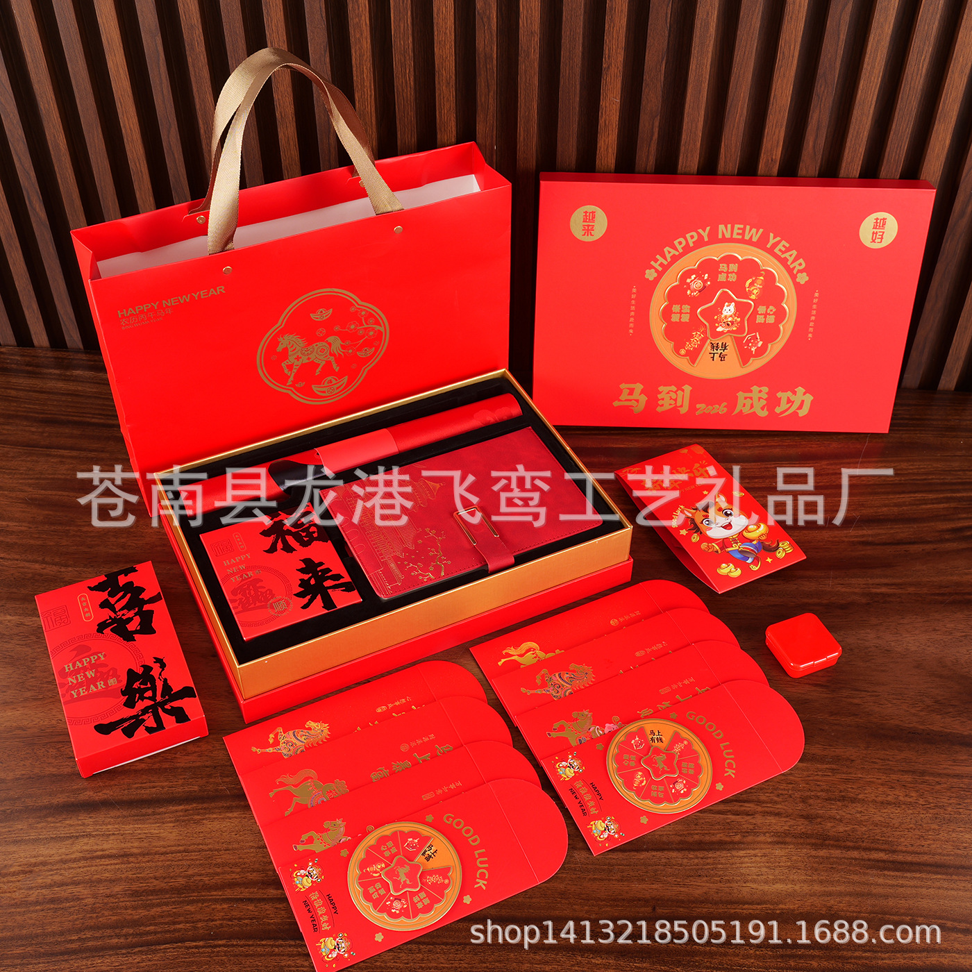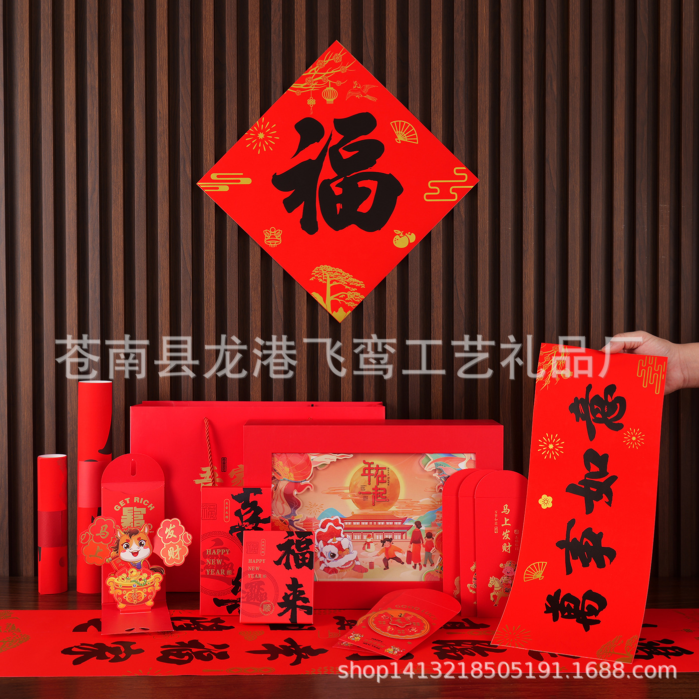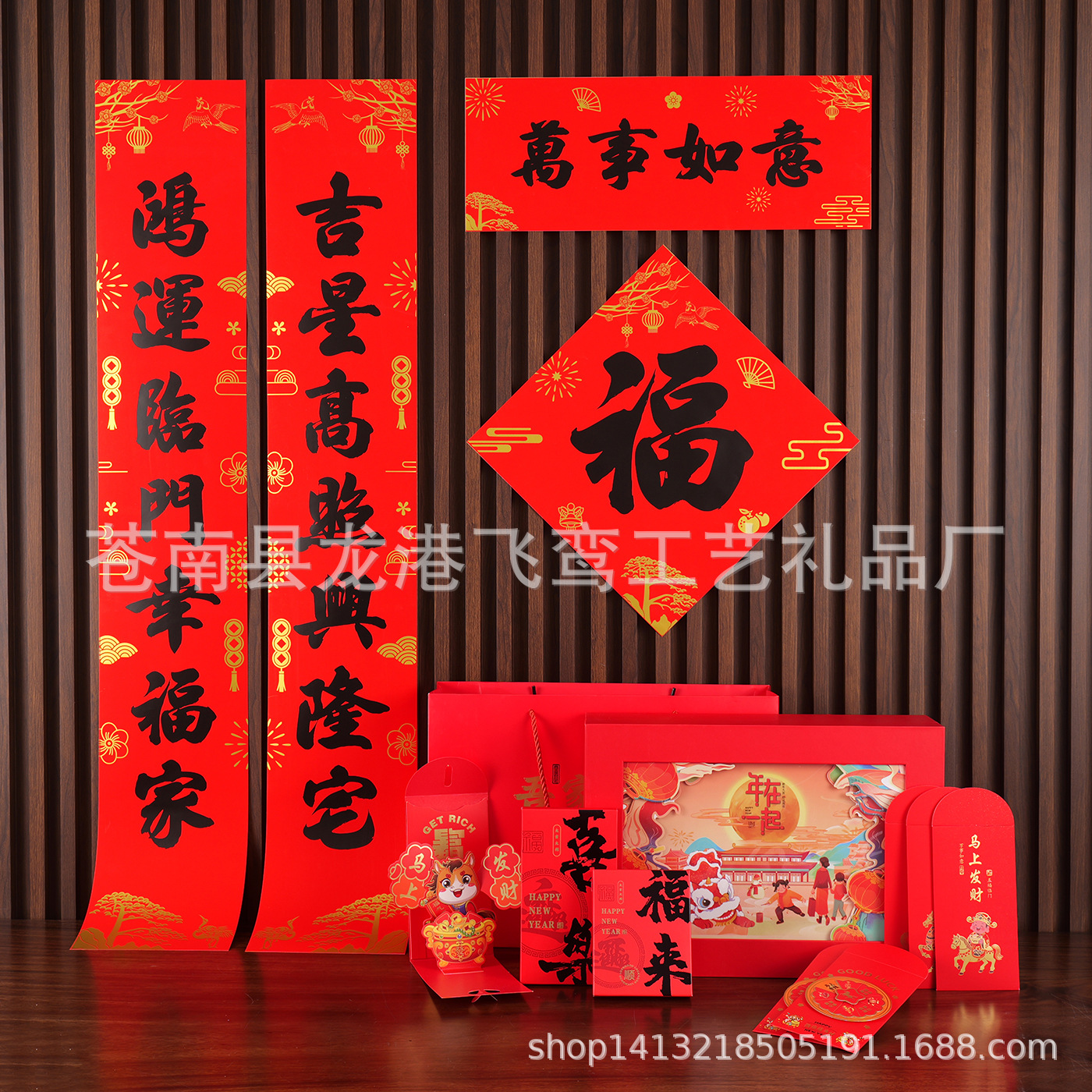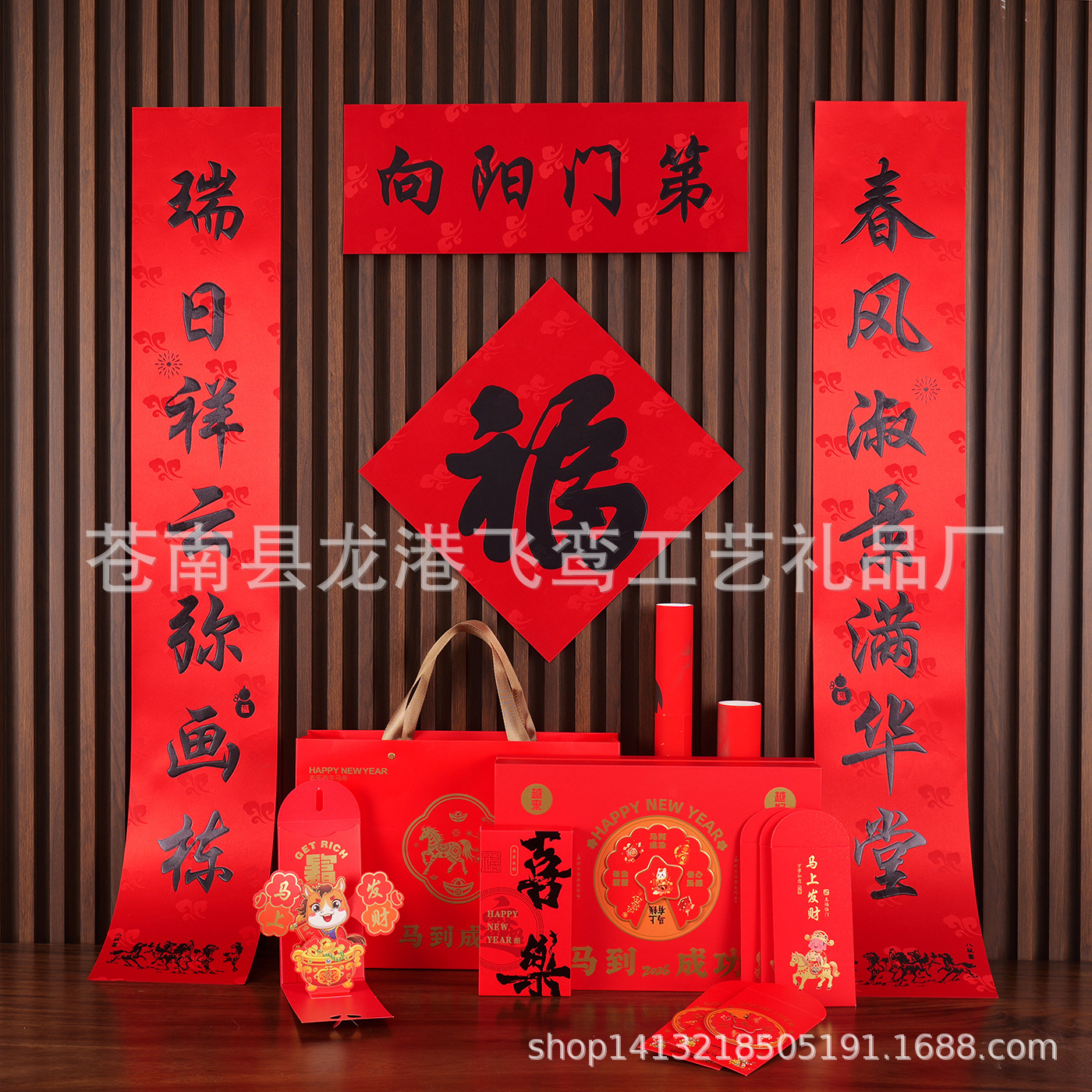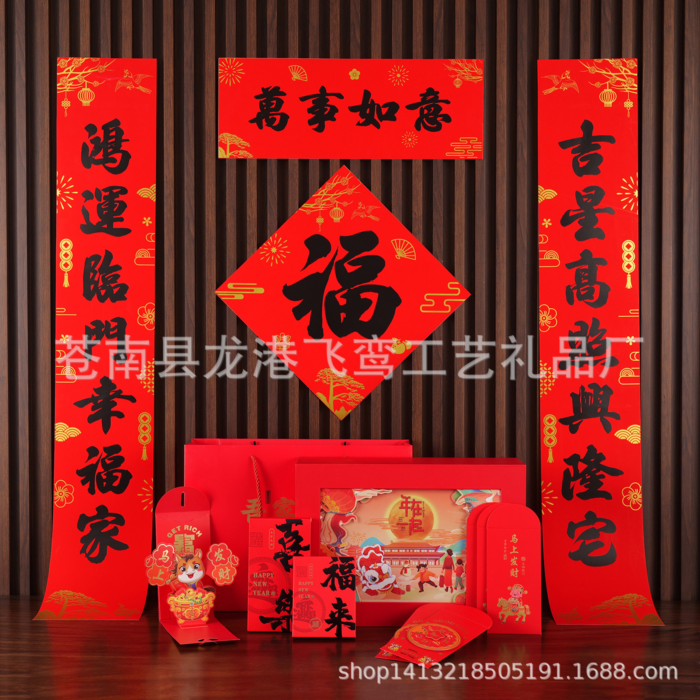 现货2026马年烫金对联银行广告加印礼品书法红春联福字对联大礼盒