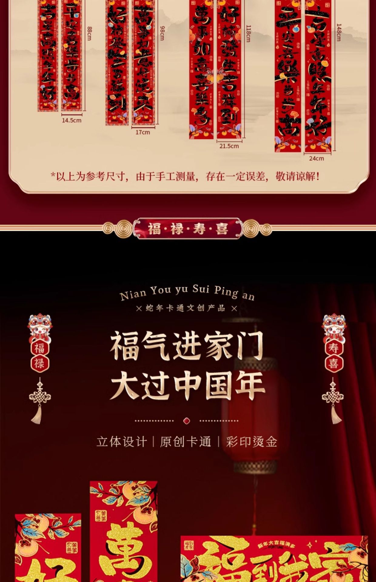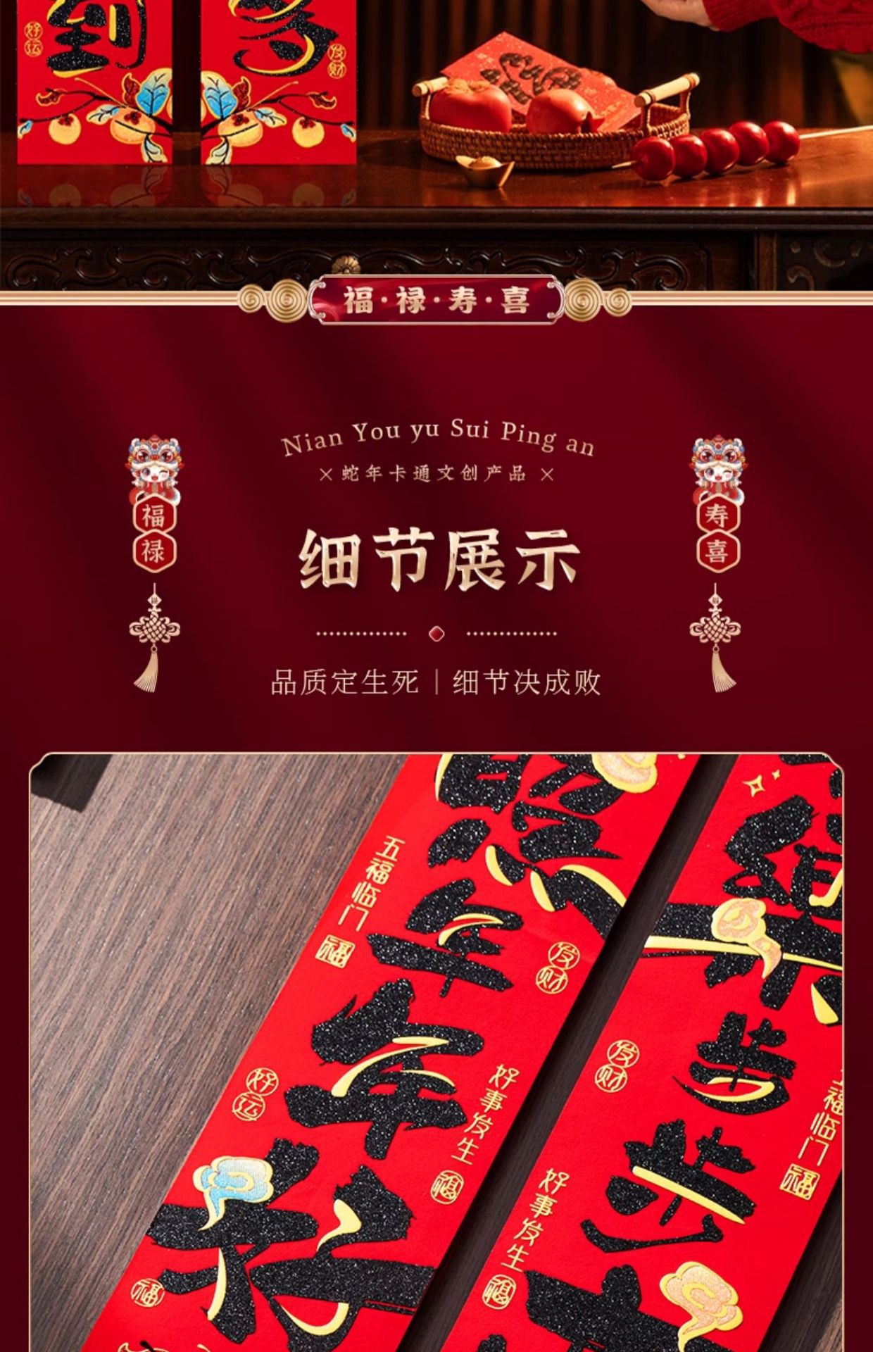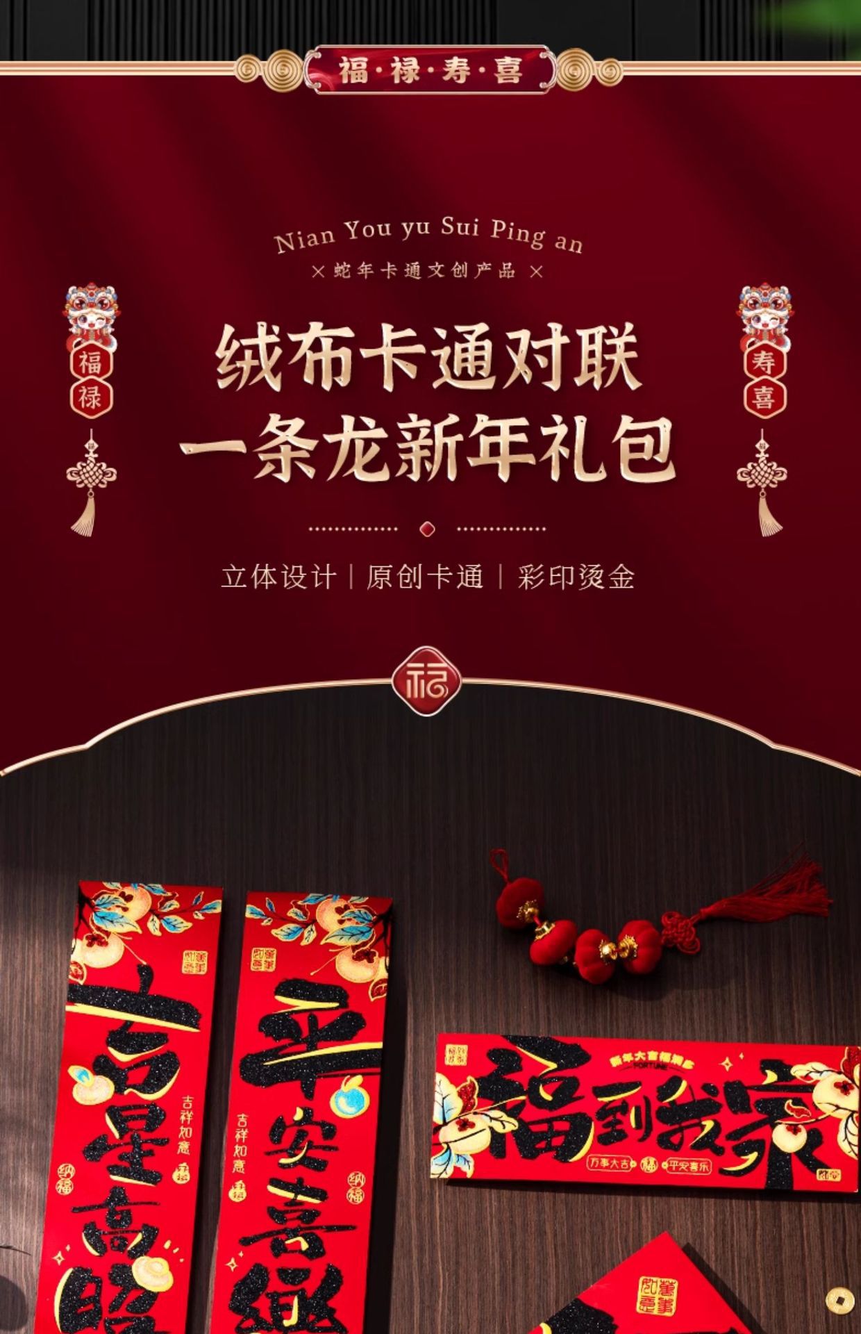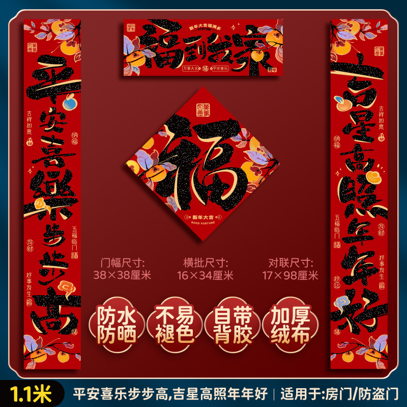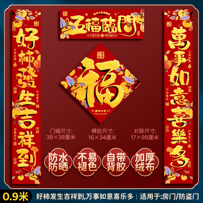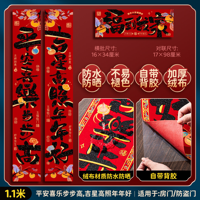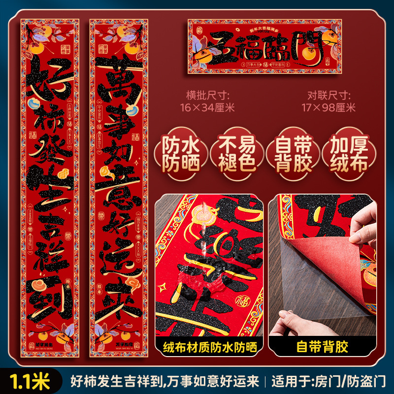 绒布对联新年春联2025新款福字过年黑字高档家用春节大门门贴装饰