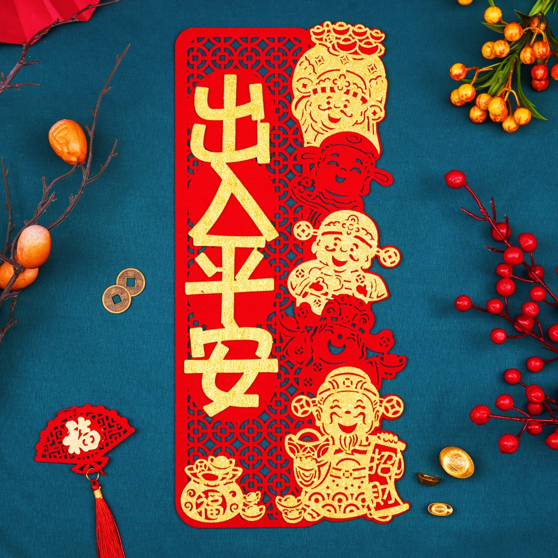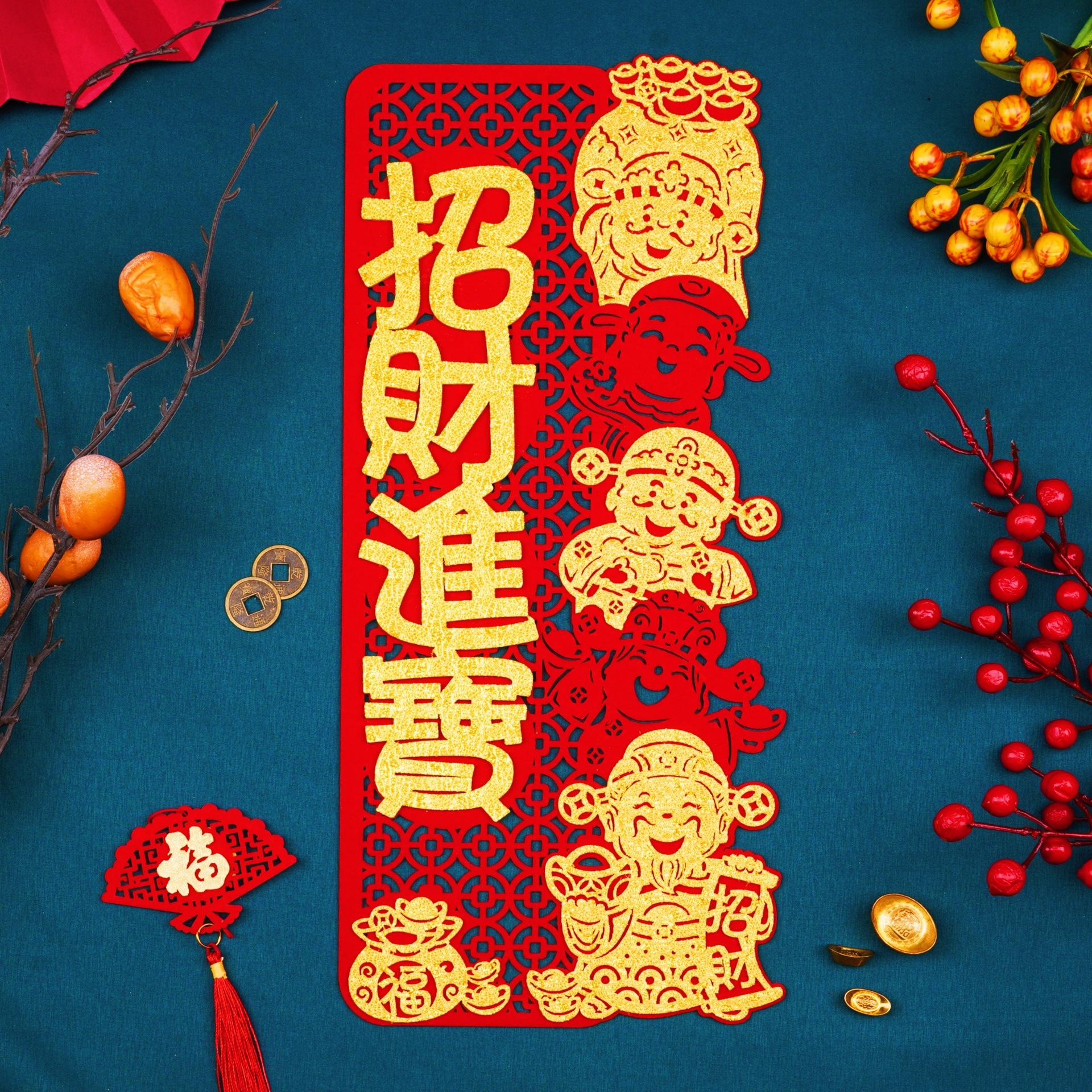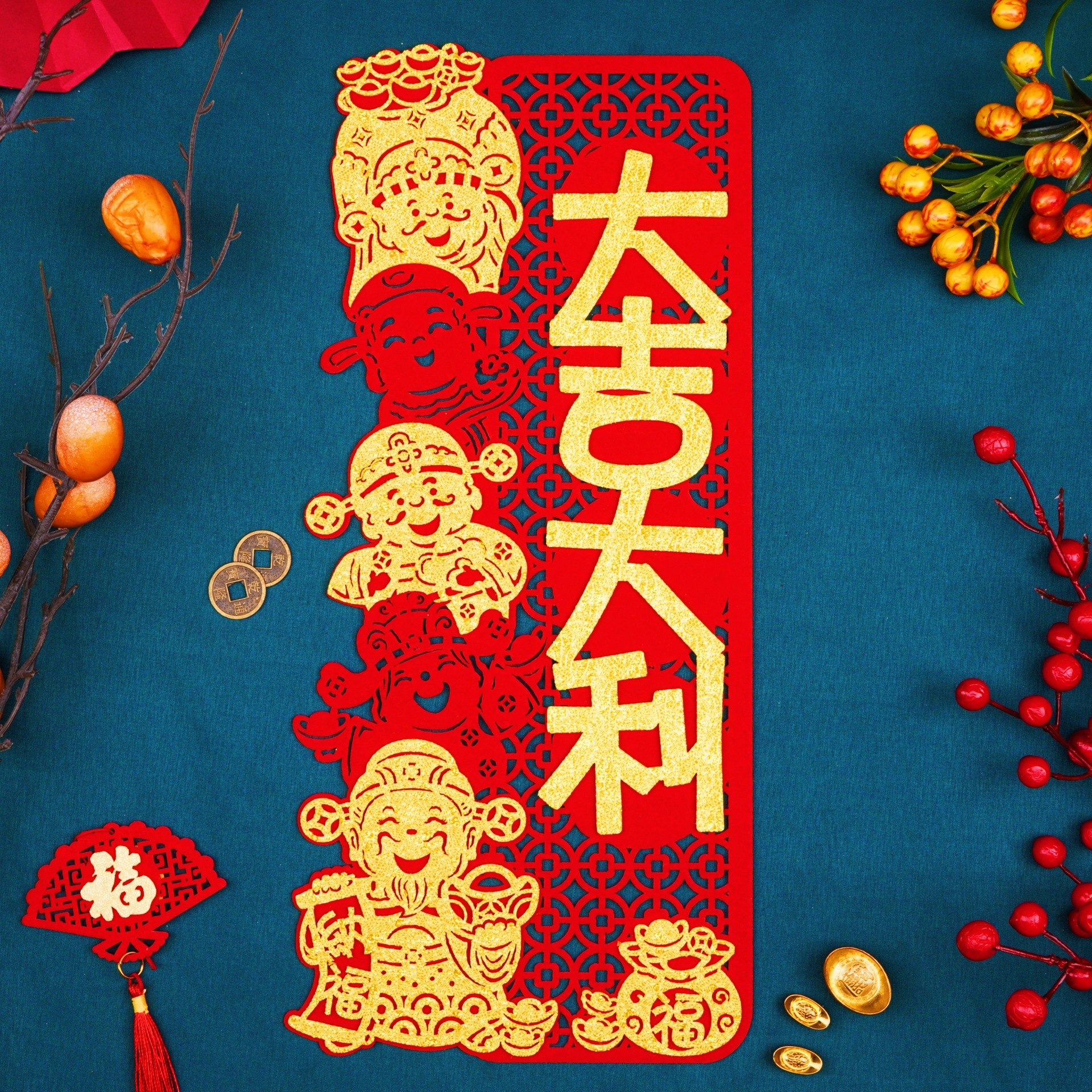 2025挥春门贴繁体字镂空蛇年财神春联贴绒布四字小对联贴烫金工艺
