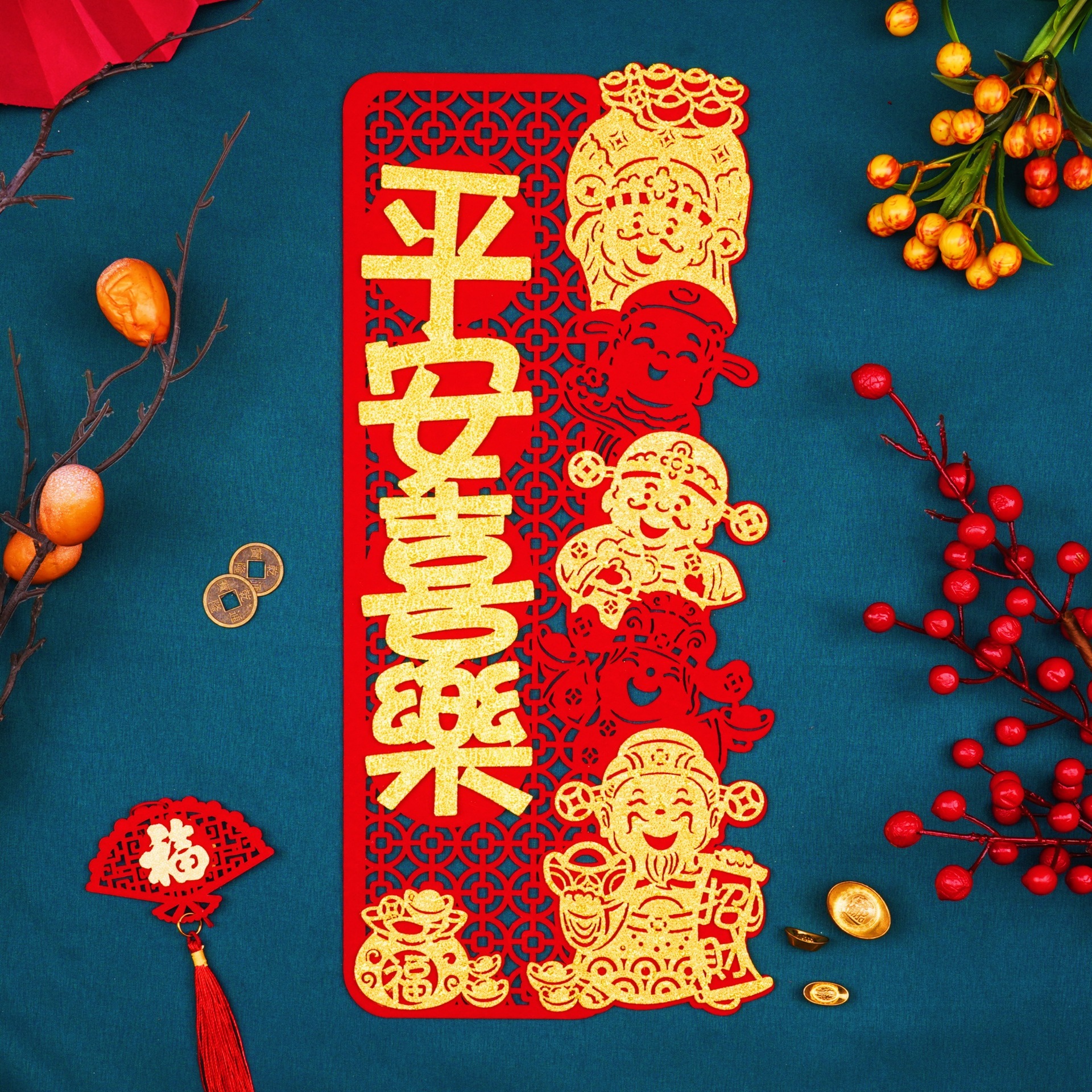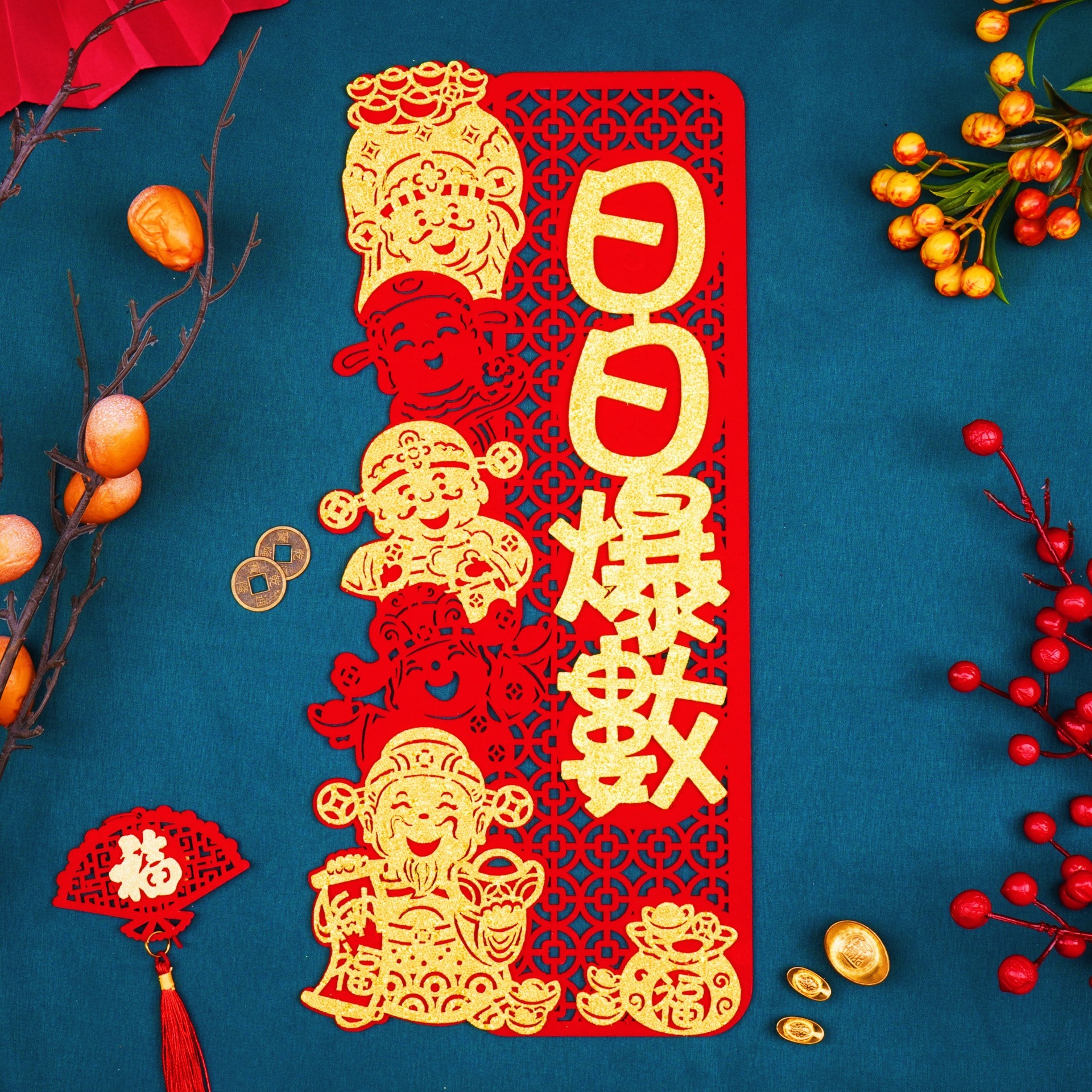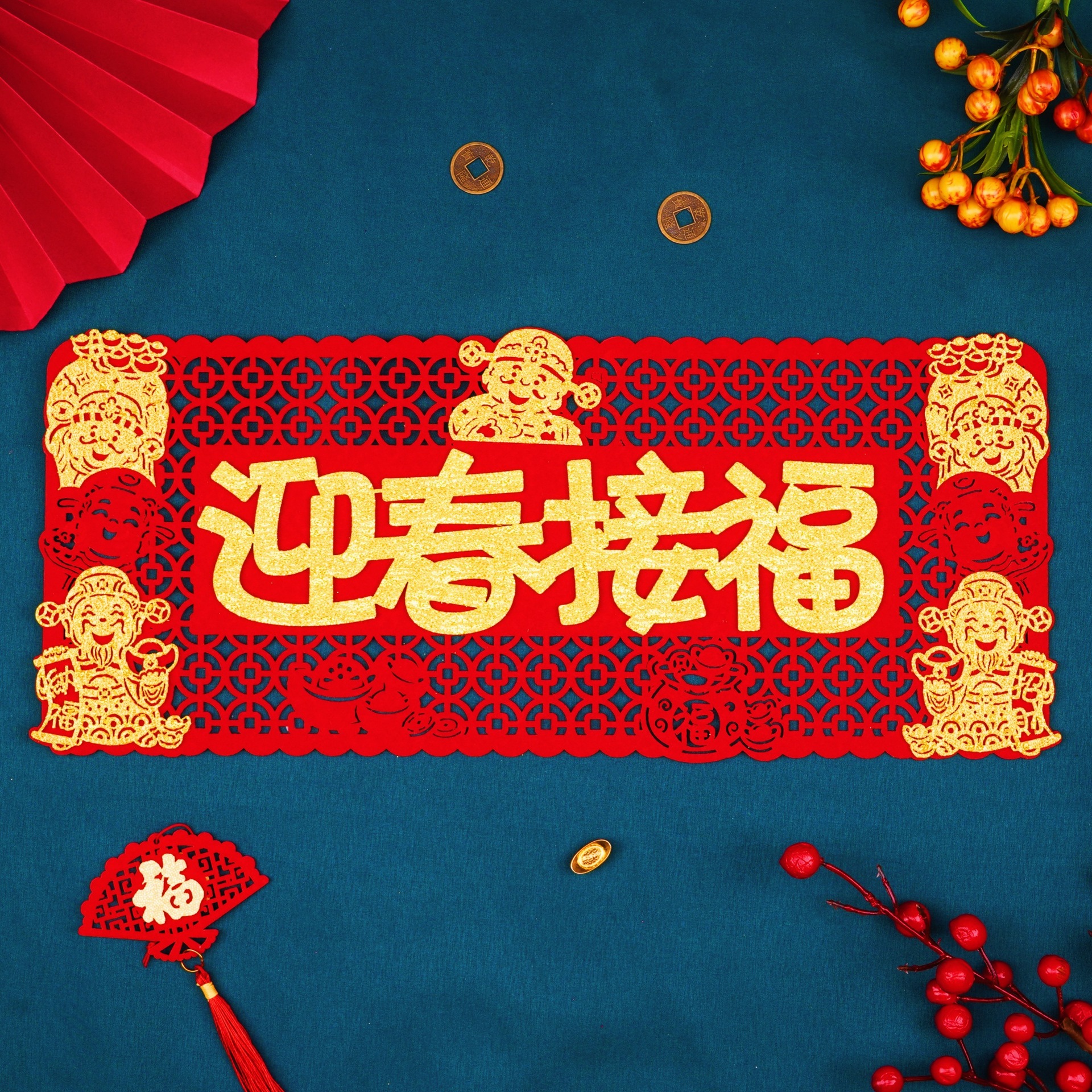 2025挥春门贴繁体字镂空蛇年财神春联贴绒布四字小对联贴烫金工艺
