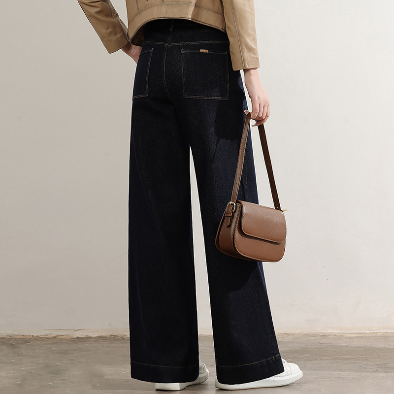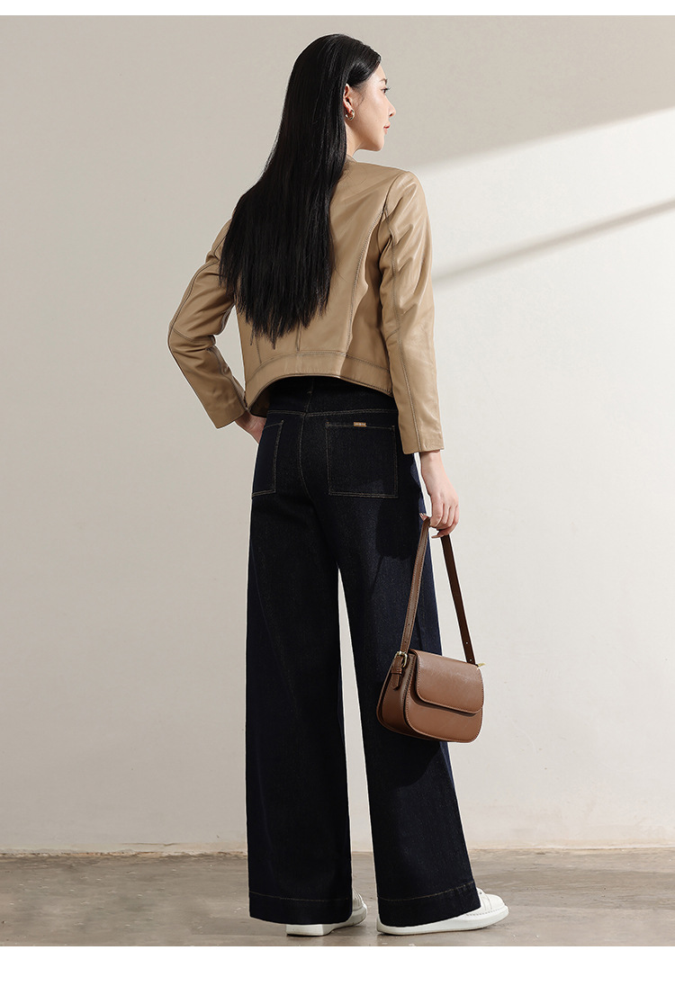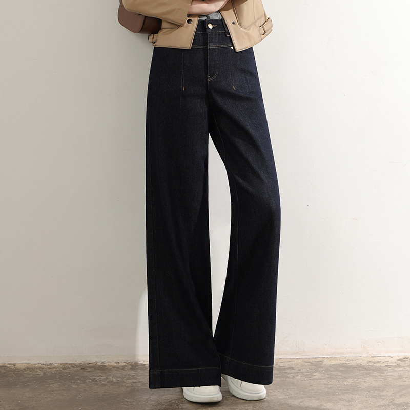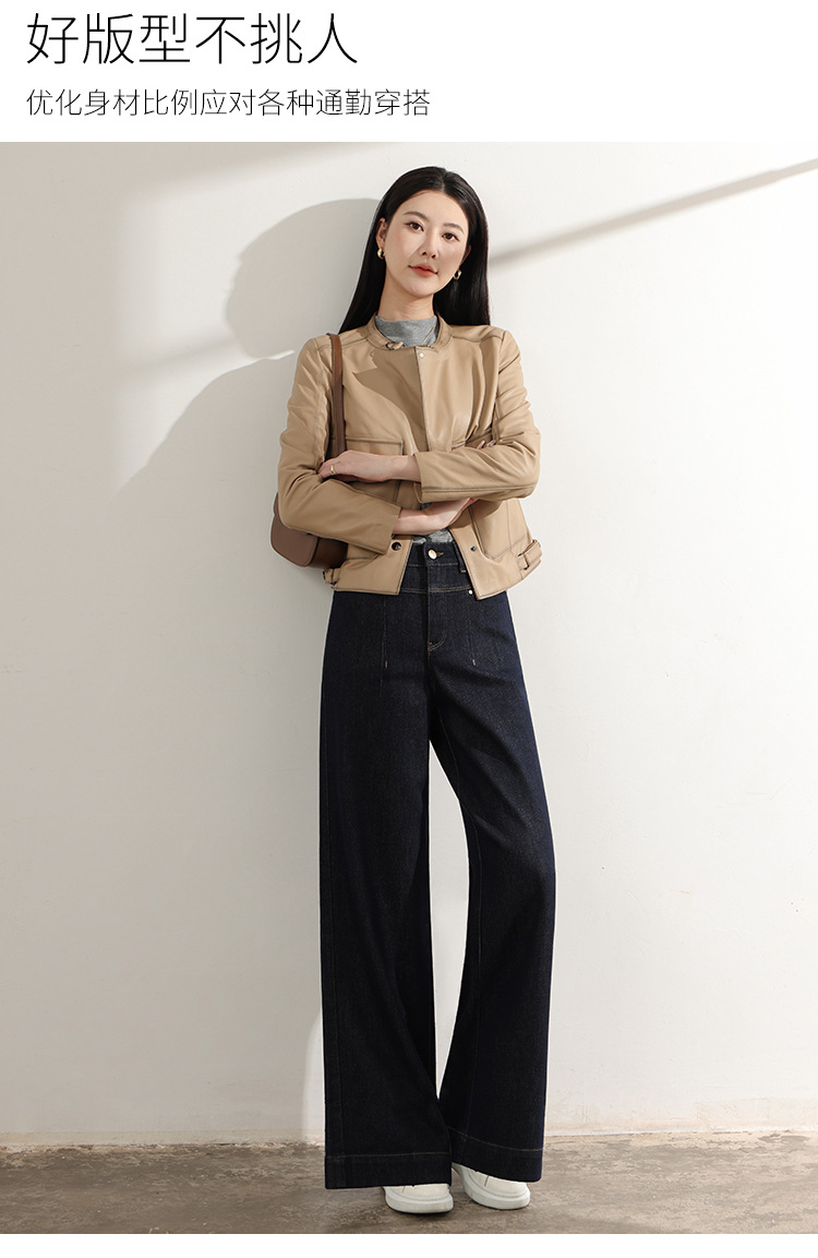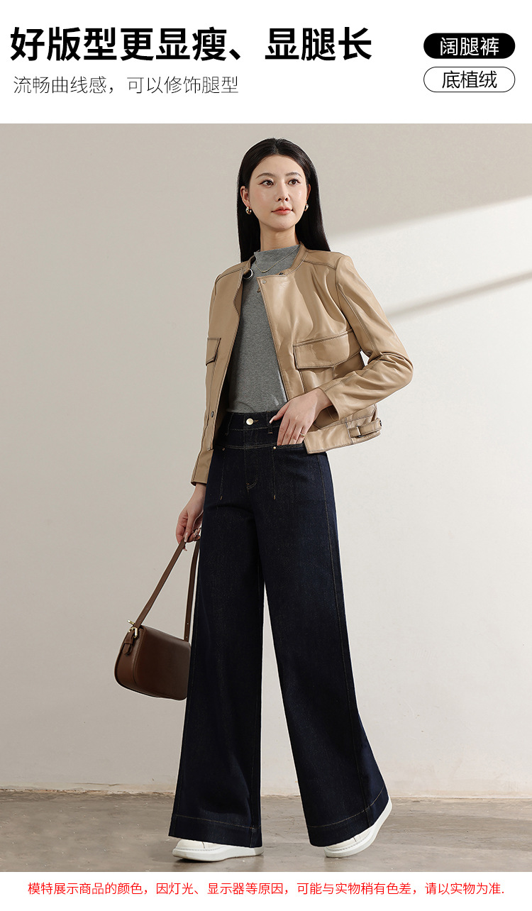 素度新款冬季植绒牛仔裤女时尚宽松A版阔腿裤设计感莱赛尔棉长裤