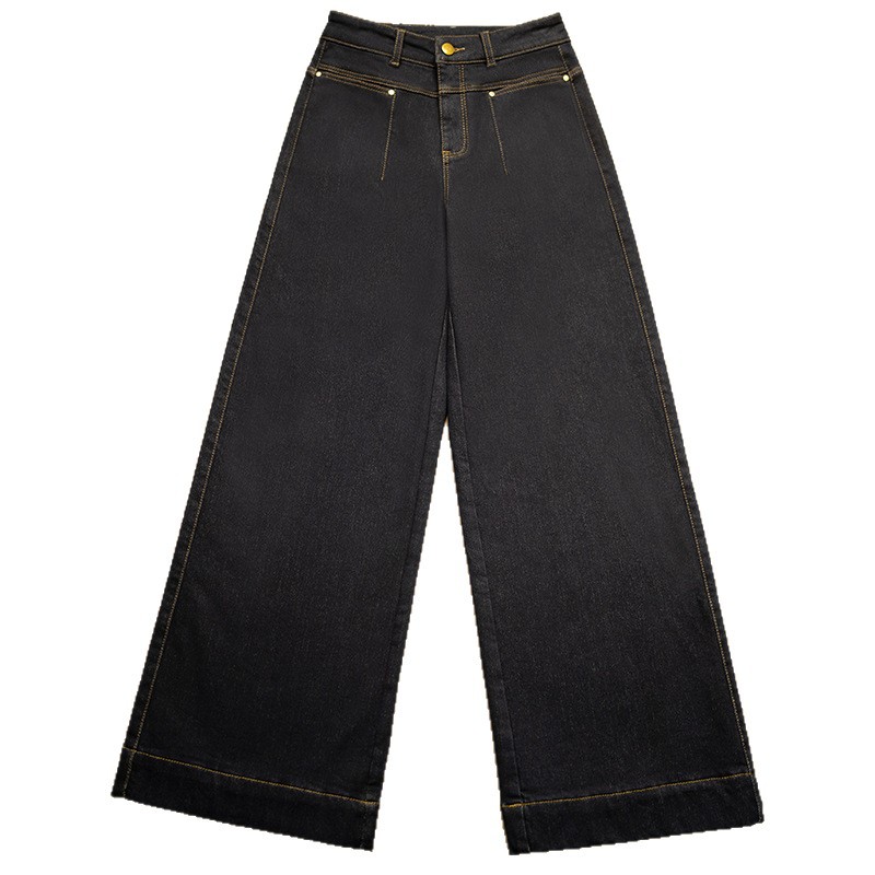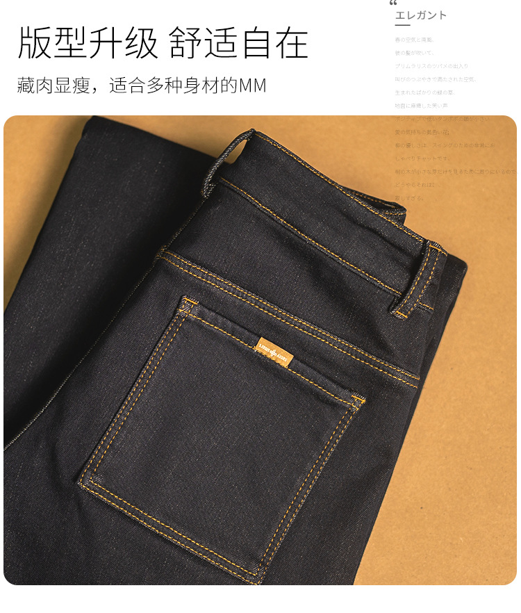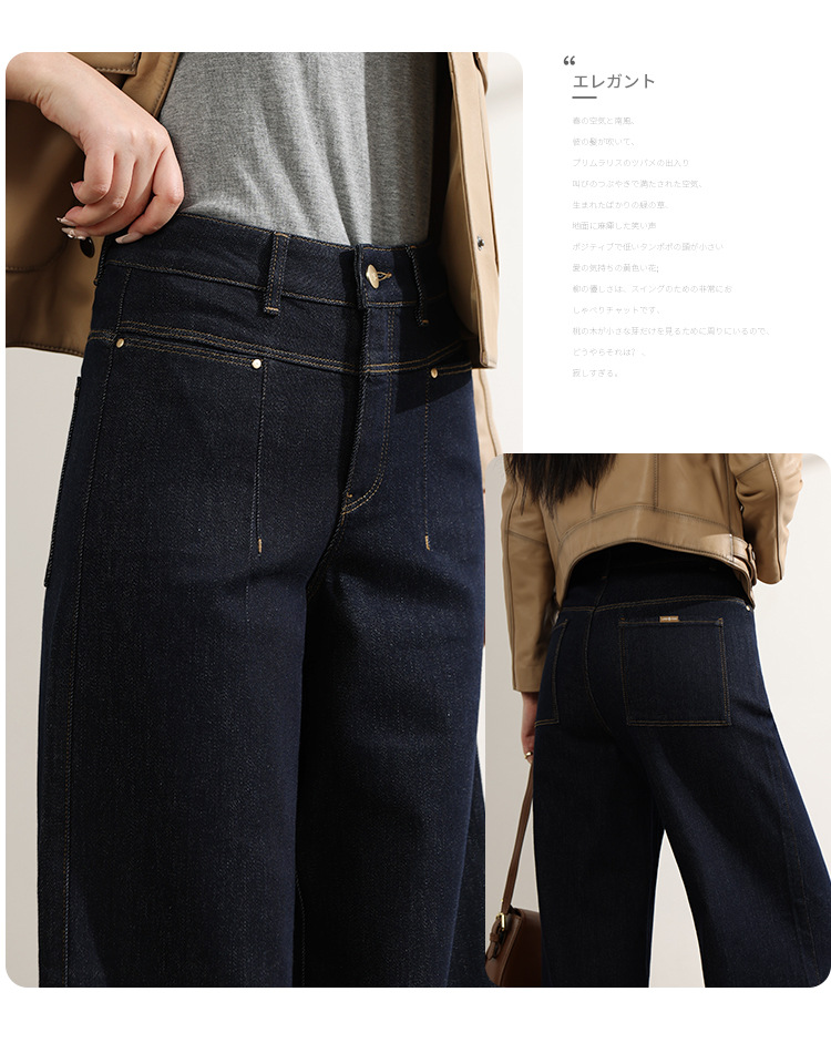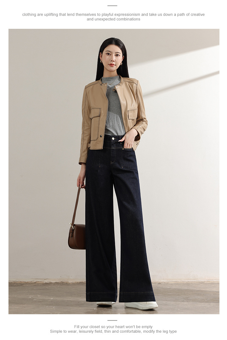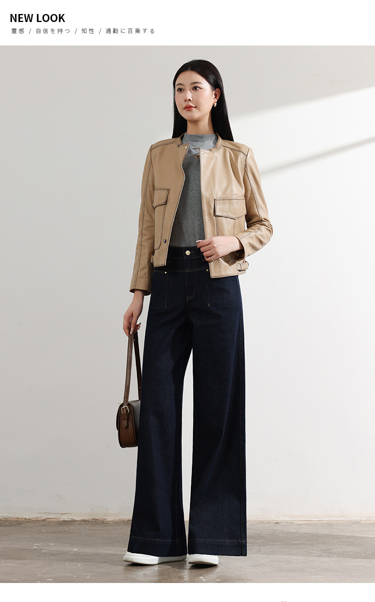 素度新款冬季植绒牛仔裤女时尚宽松A版阔腿裤设计感莱赛尔棉长裤