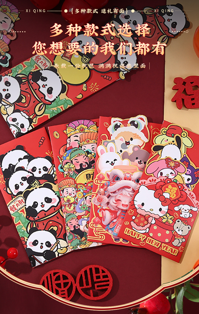 马年抽拉红包个性创意2026春节利是封卡通新年国潮红包拜年压岁包