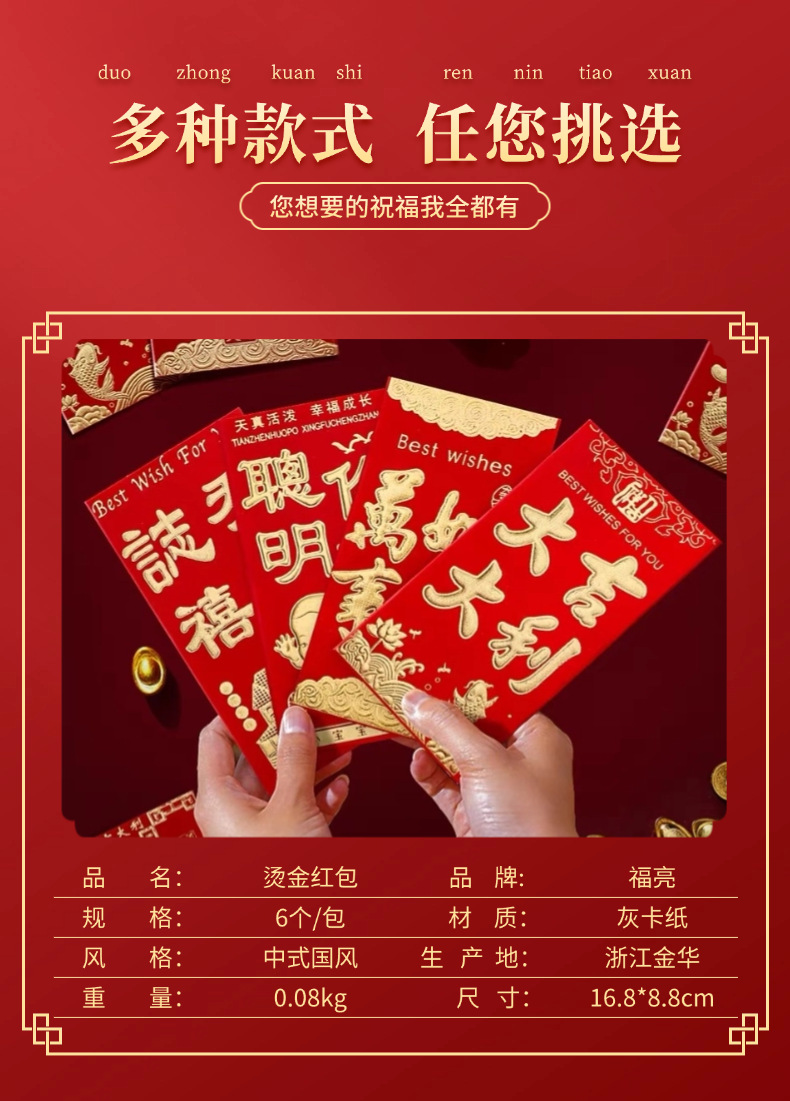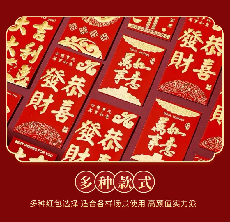 创意新年烫金利是封红包个性婚庆用品喜庆百元千元压岁红包袋批发