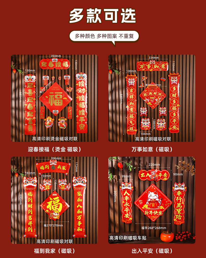 新年磁吸烫金对联吸铁石车贴装饰家居入宅装饰迎春新年门联门贴