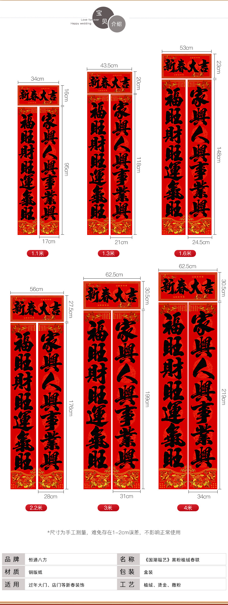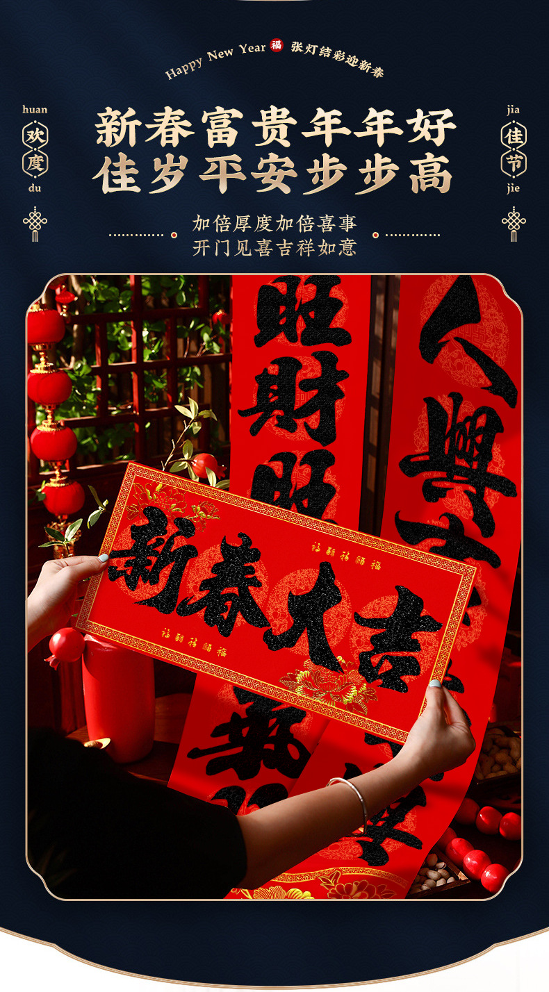 新款对联工厂批发蛇年植绒对联盒装春联年货年画装饰用品黑粉对联