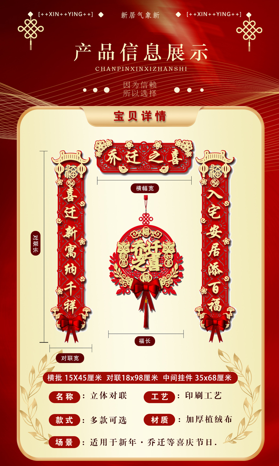 | seven words [auspicious in entering residence] housewarming couplet(七字【进宅大吉】乔迁对联) | USD $2.06 | 8182 piece available |