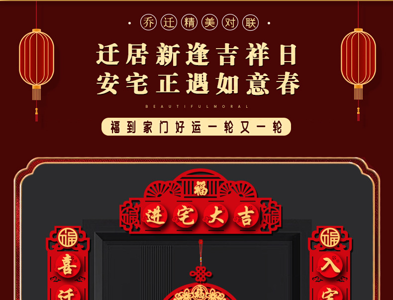 磁吸2026乔迁对联高档植绒搬家入伙新居入宅装饰布置仪式福字挂件