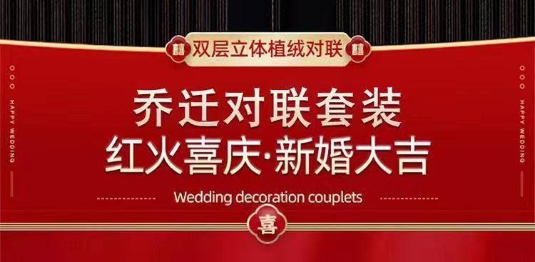 | flocking cloth seven-character housewarming couplet(植绒布七字乔迁对联) | USD $1.83 | 7128 set available |