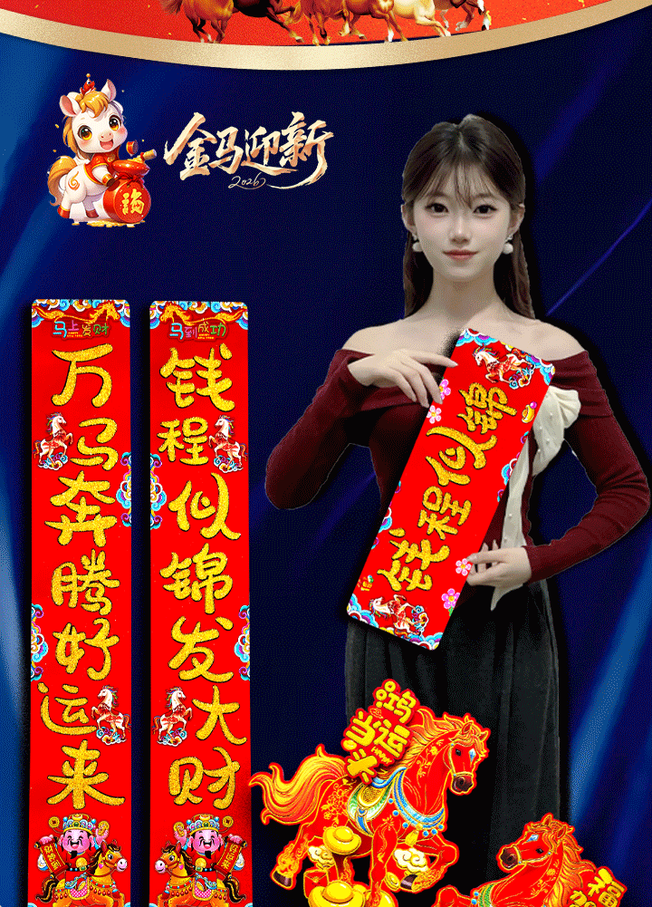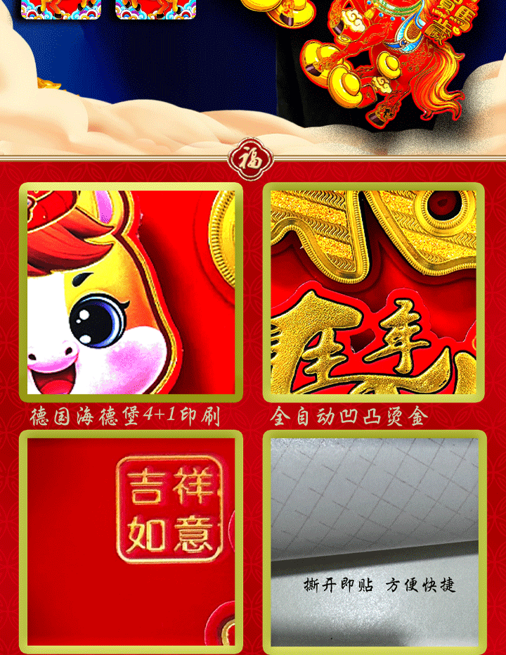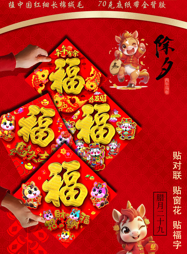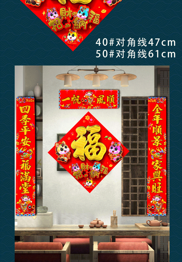 植绒烫金带全背胶对联硬卡纸对联入户门对联房间门对联卡通生肖