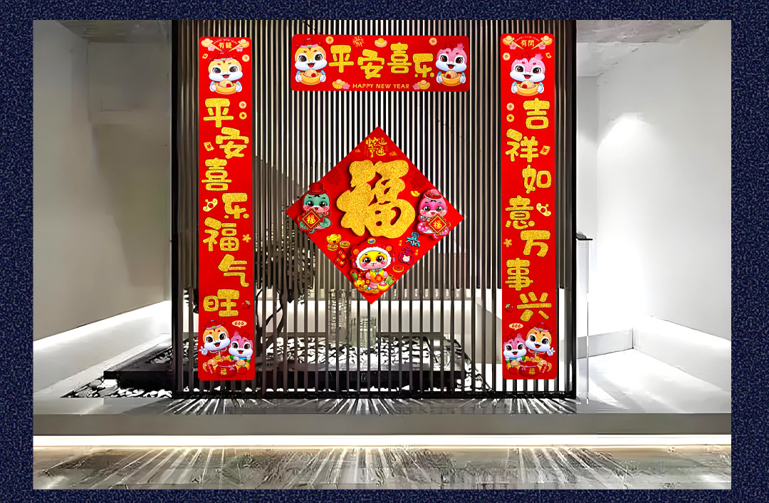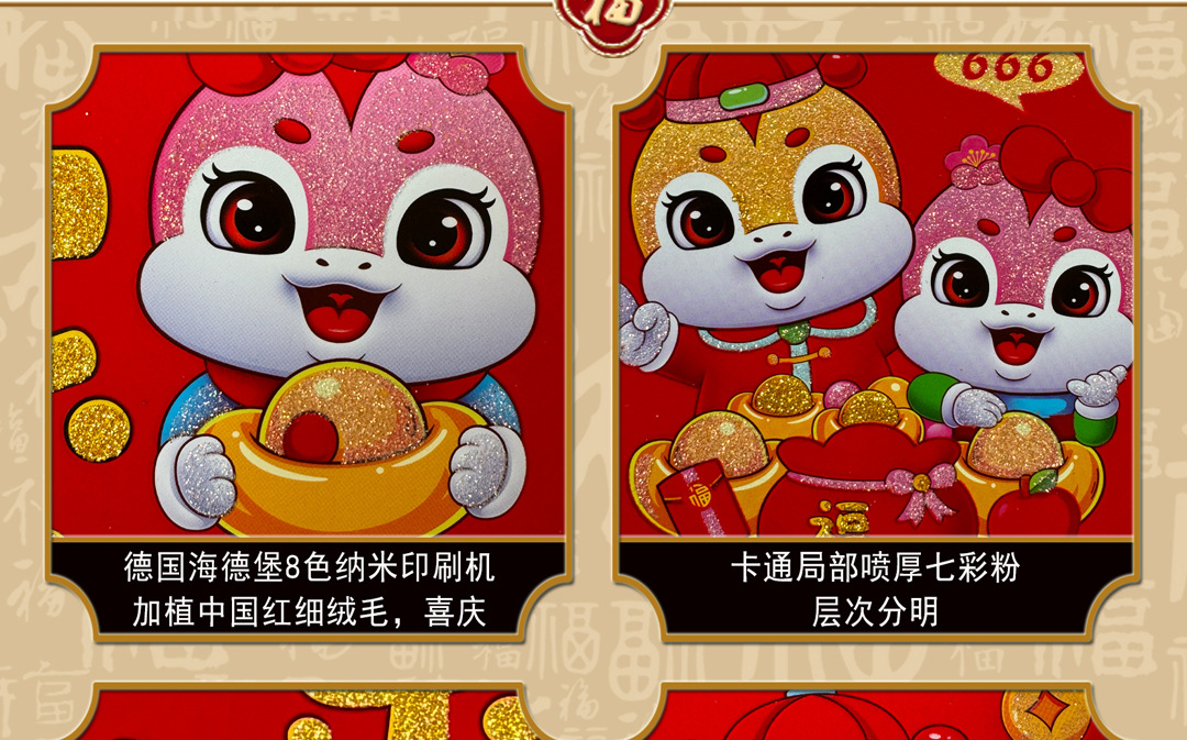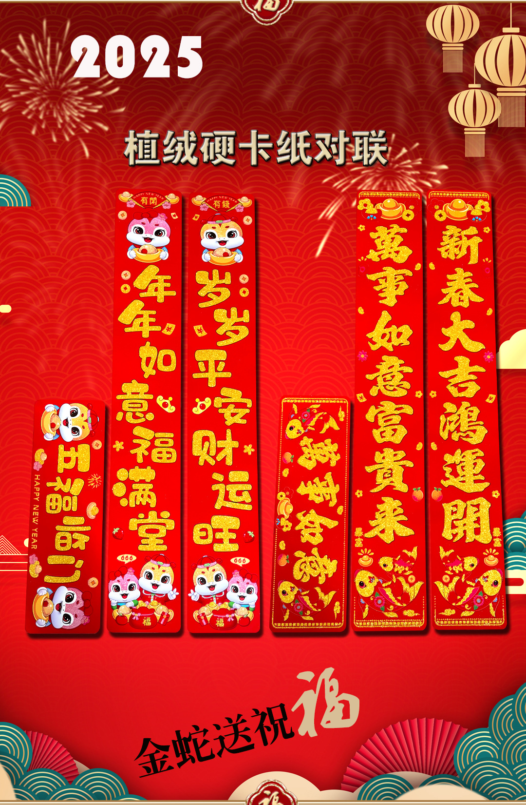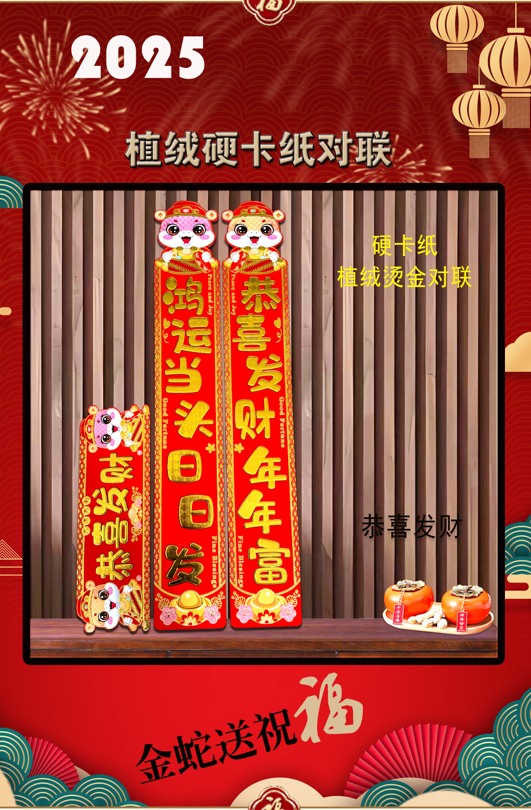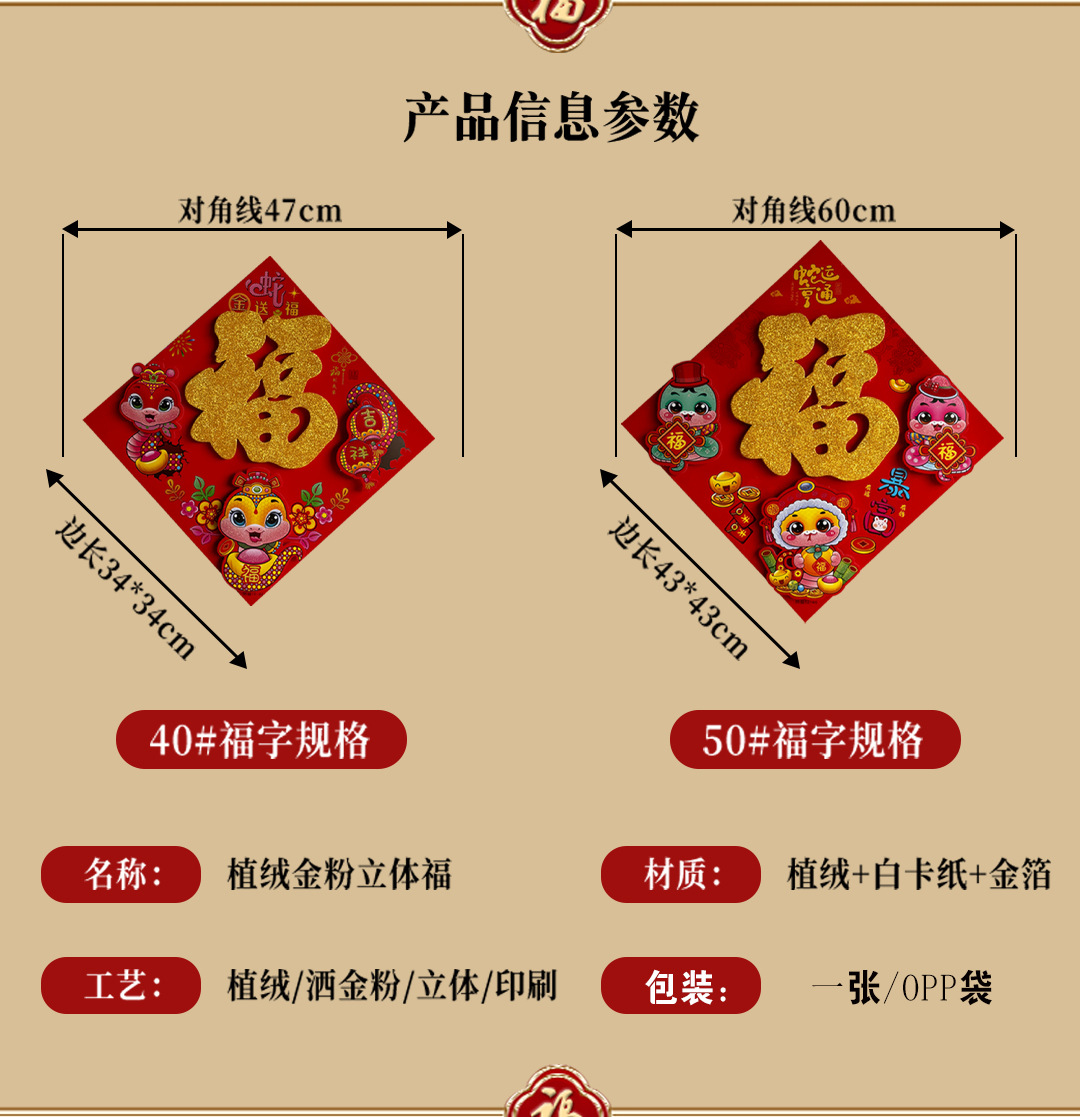 植绒烫金对联硬卡纸对联入户门对联植绒烫金立体福字生肖门贴对贴