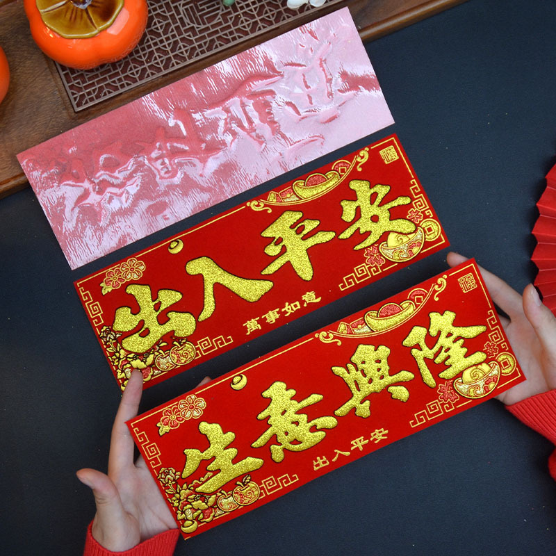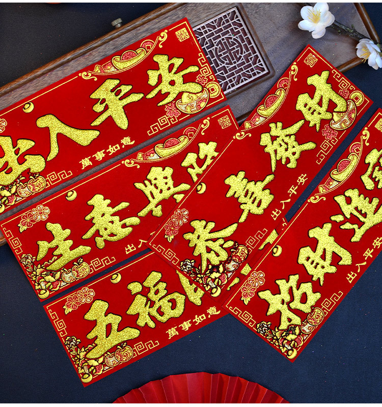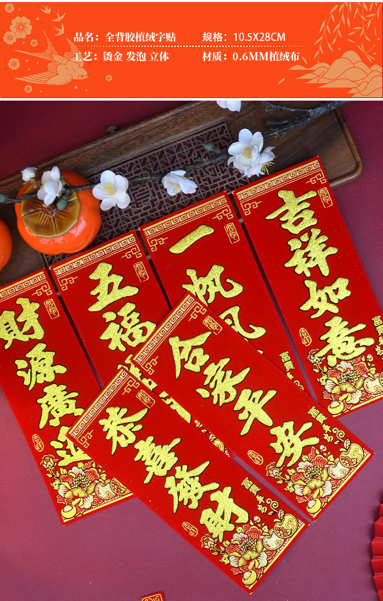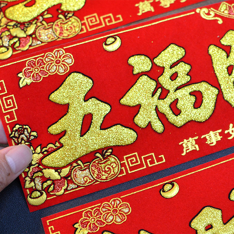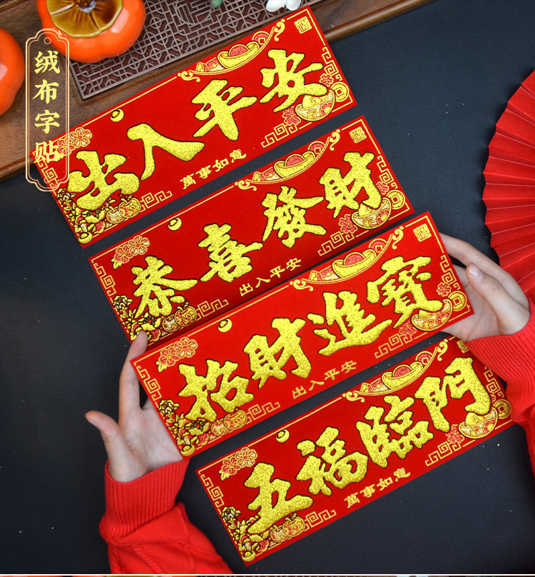 新款马年2026绒布烫金装饰小挥春小对联喜庆新年自带背胶绒布烫金