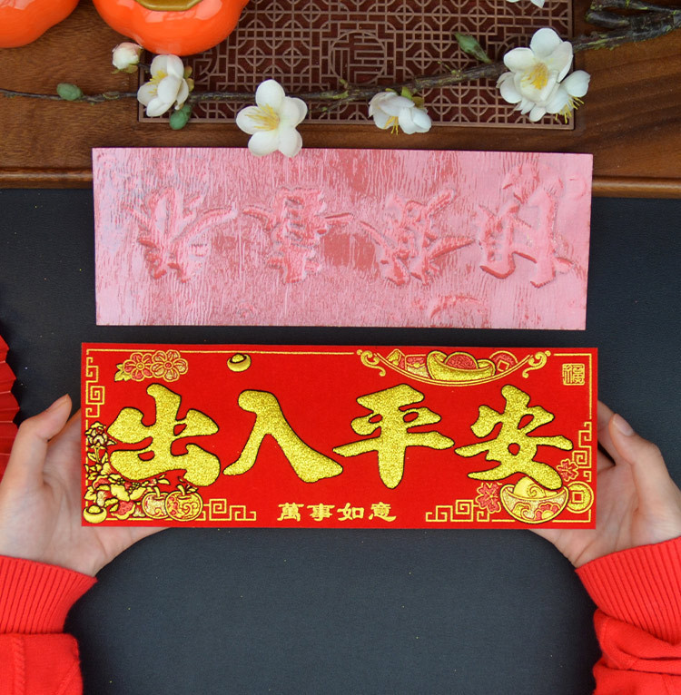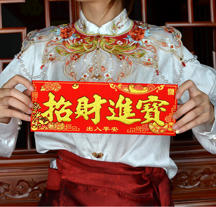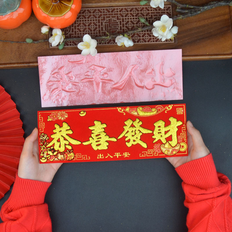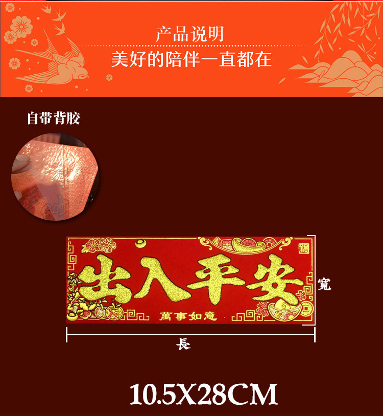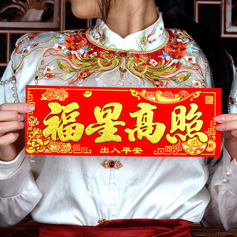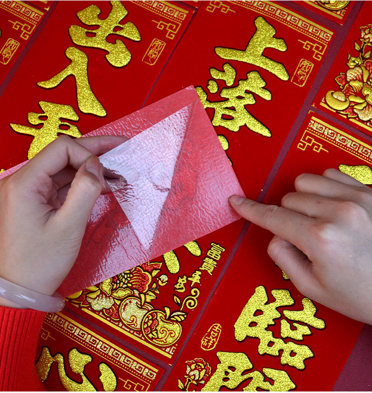 新款马年2026绒布烫金装饰小挥春小对联喜庆新年自带背胶绒布烫金