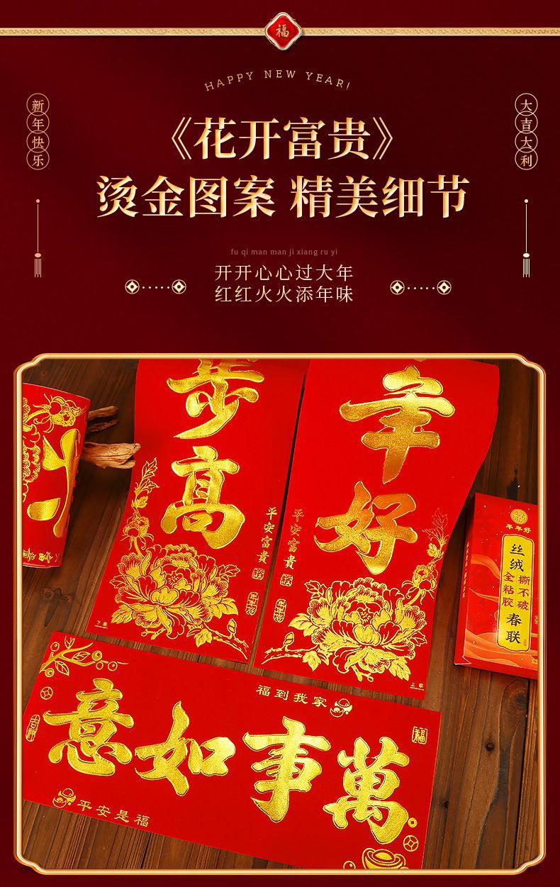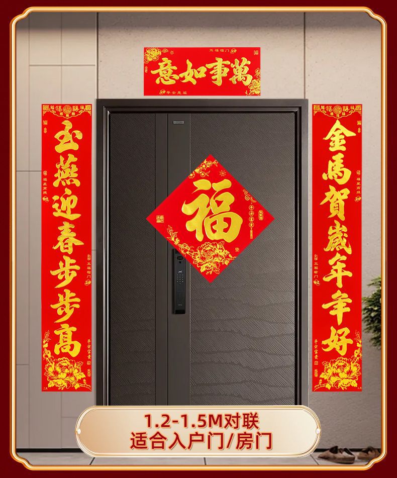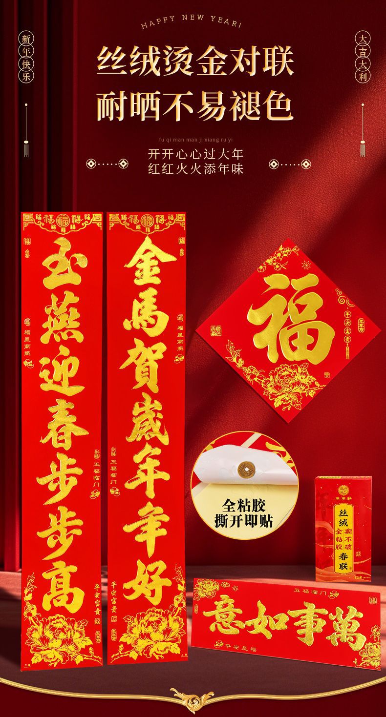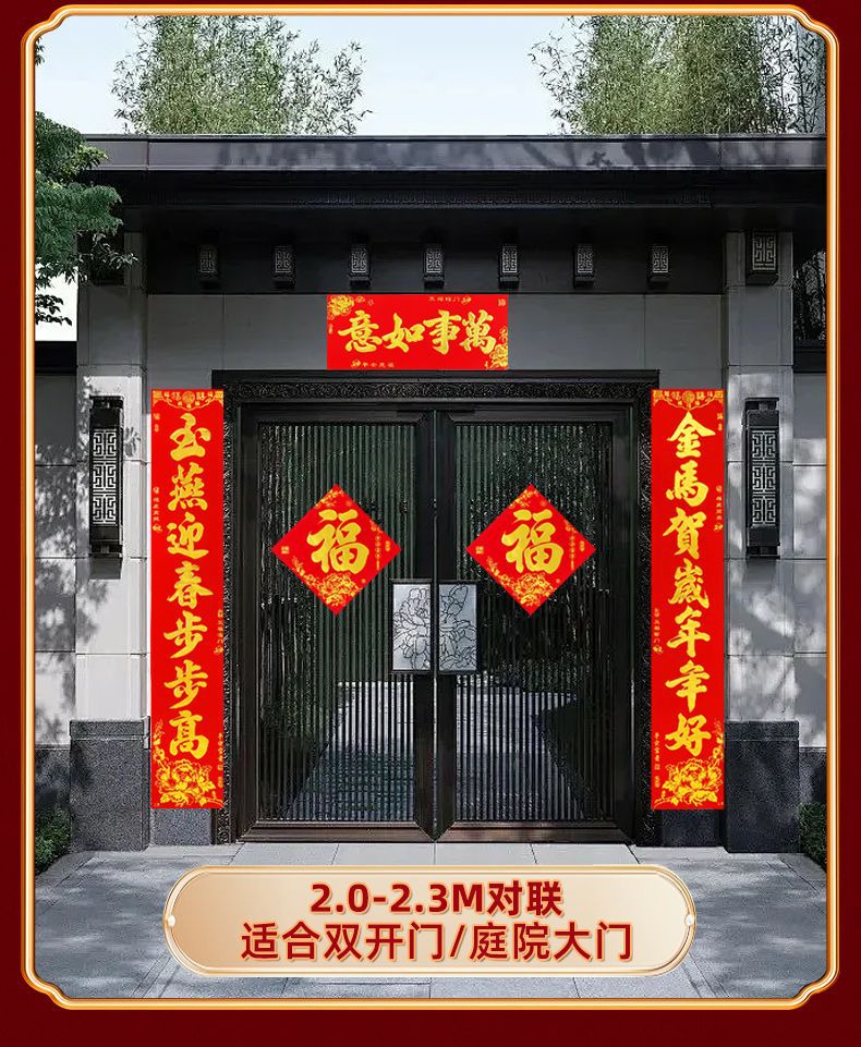 2026年年好丝绒全背胶烫金耐晒对联商品房自建房过年大门马年批发