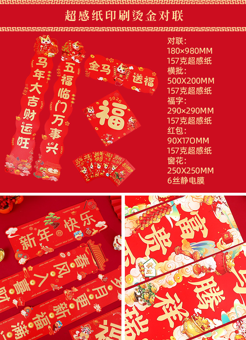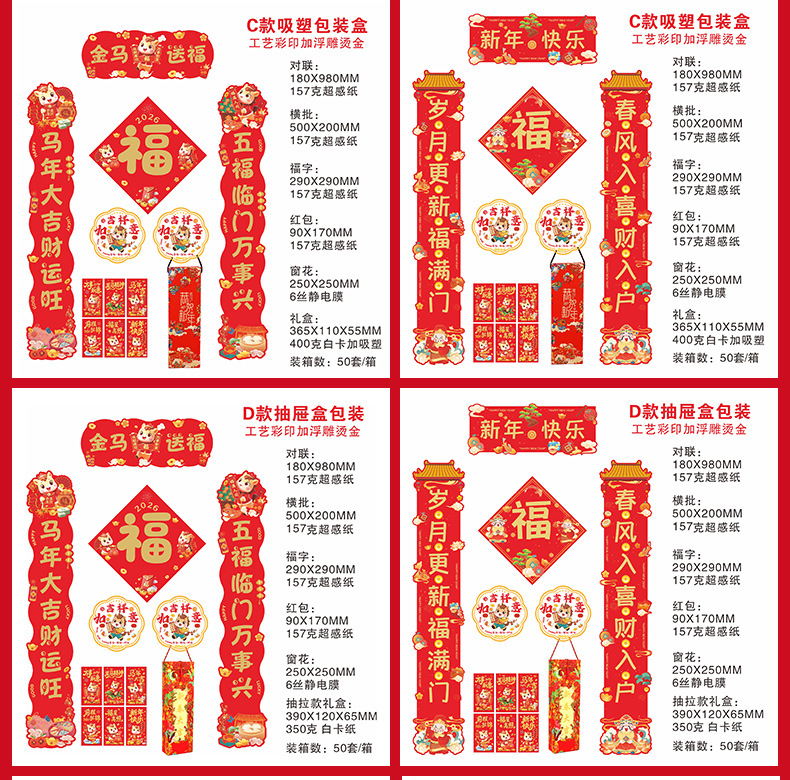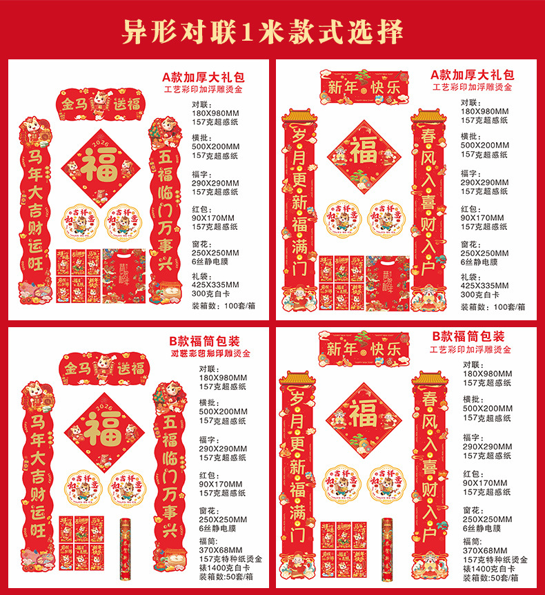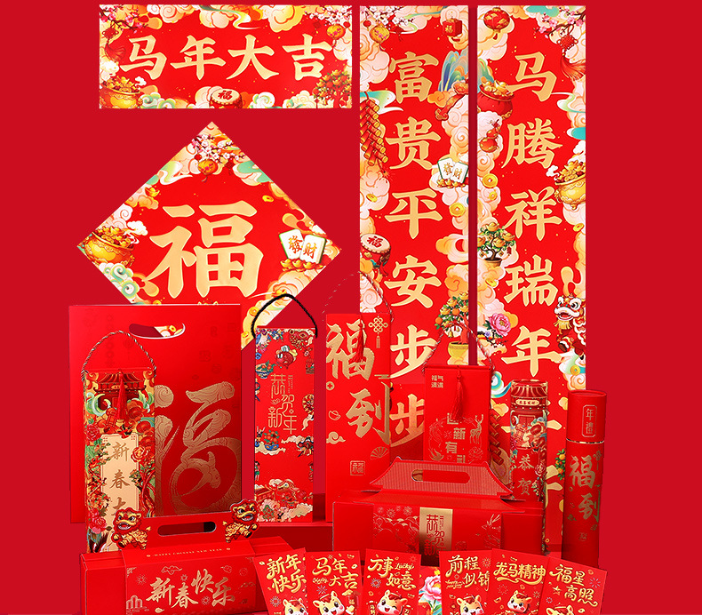 2026马年对联大礼包过新年定制春联礼盒福字红包烫金广告对联批发