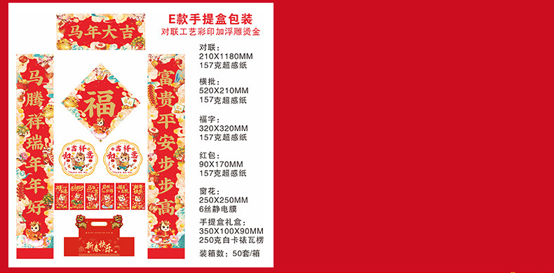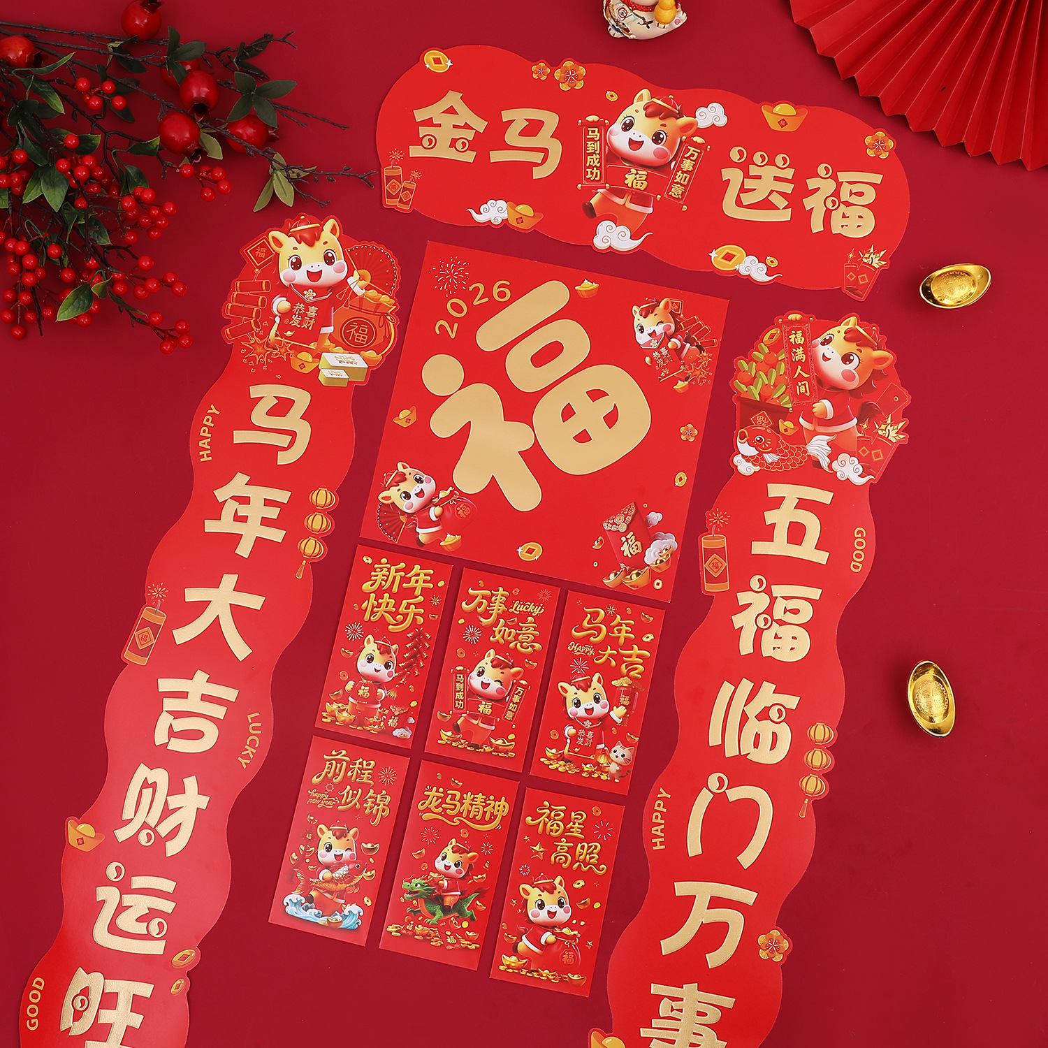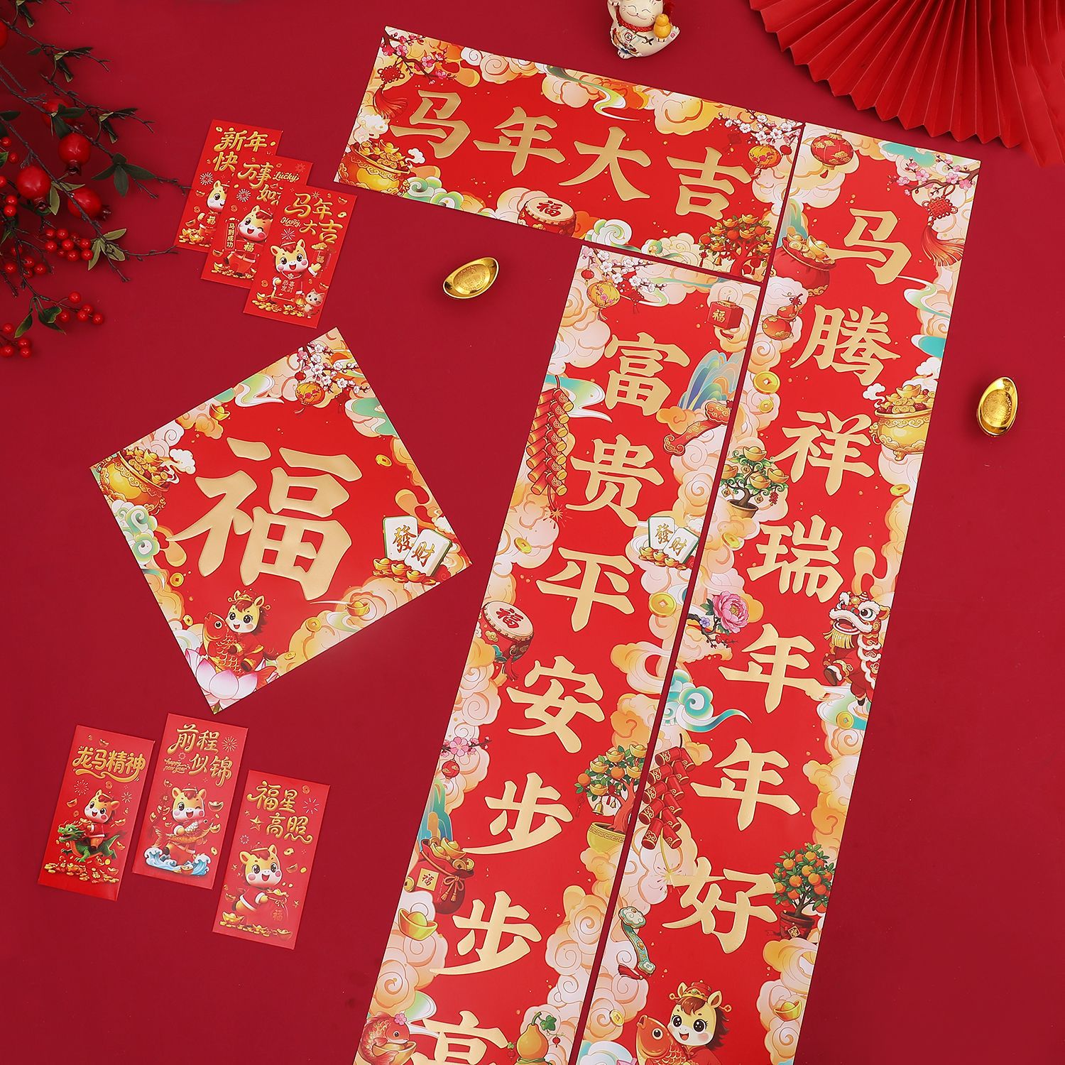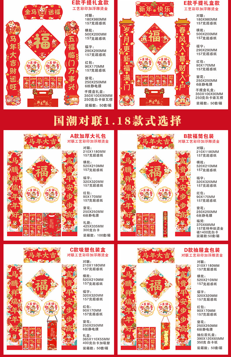 2026马年对联大礼包过新年定制春联礼盒福字红包烫金广告对联批发