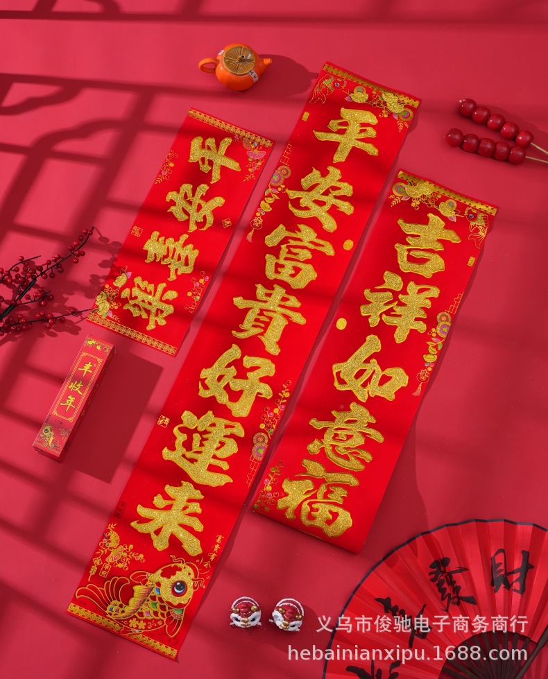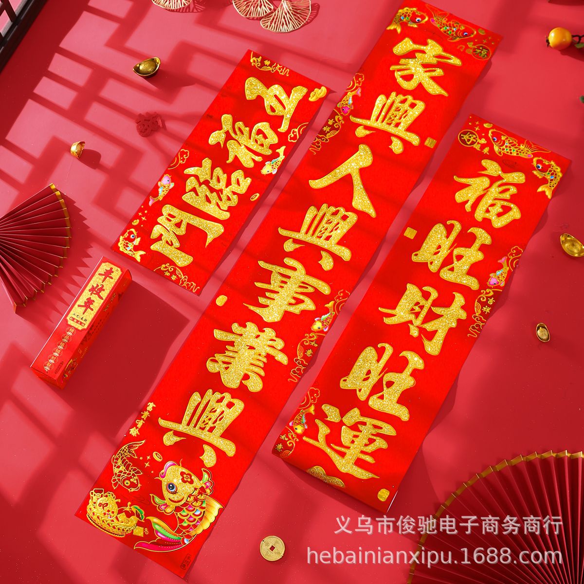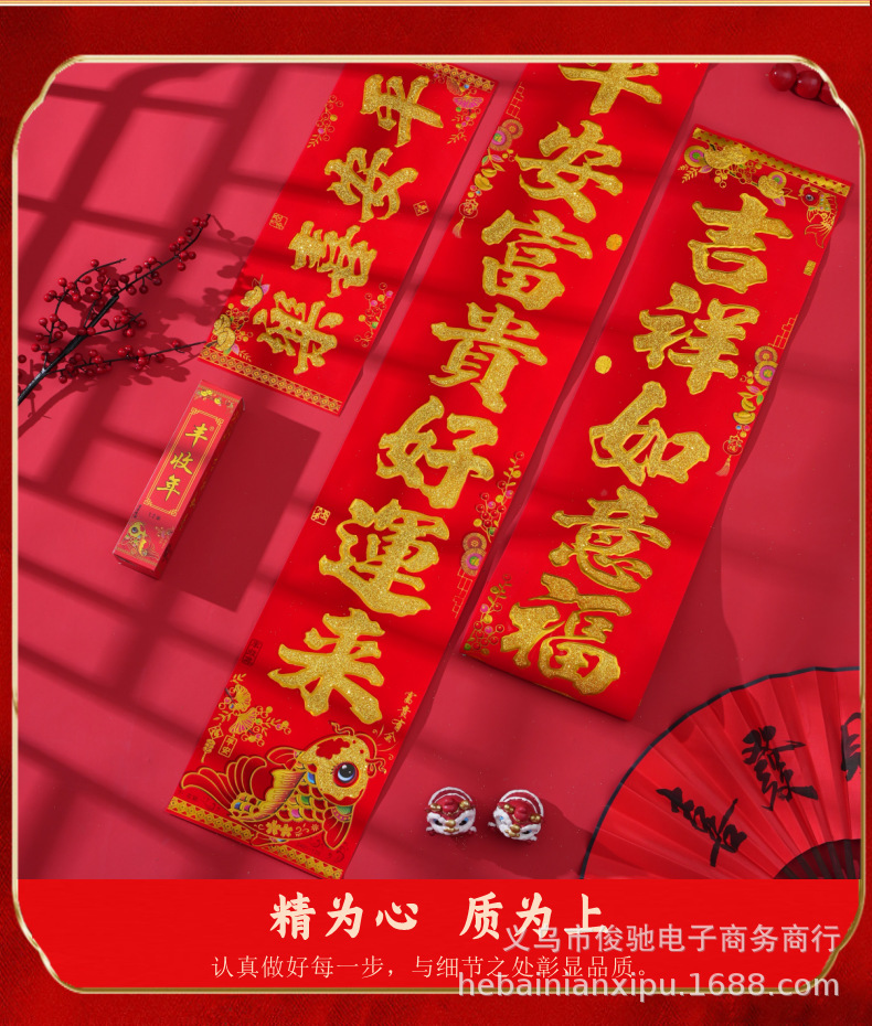 2026马年新款春节植绒烫金粉对联鱼版乔迁生意大门福字春联年货