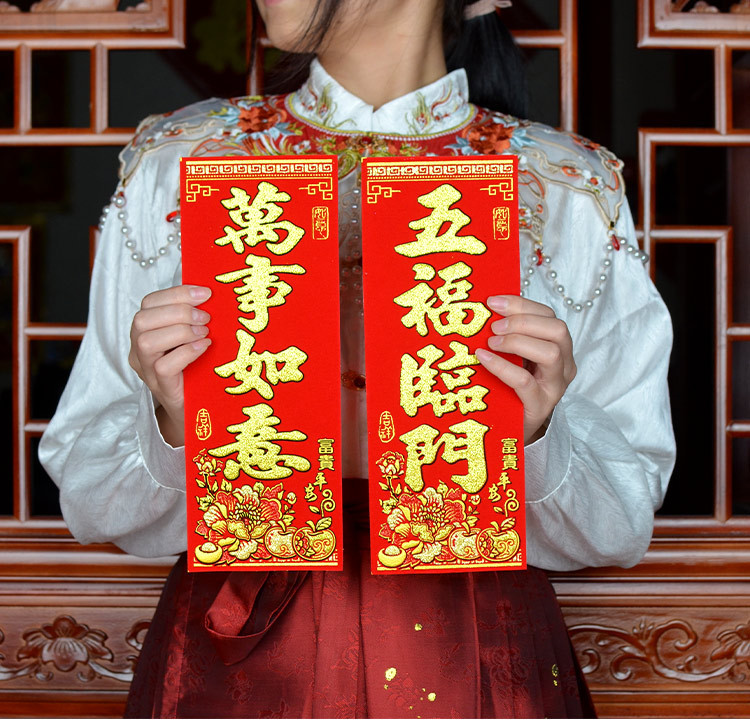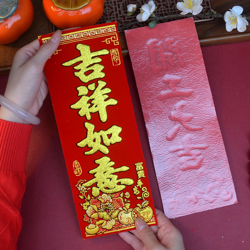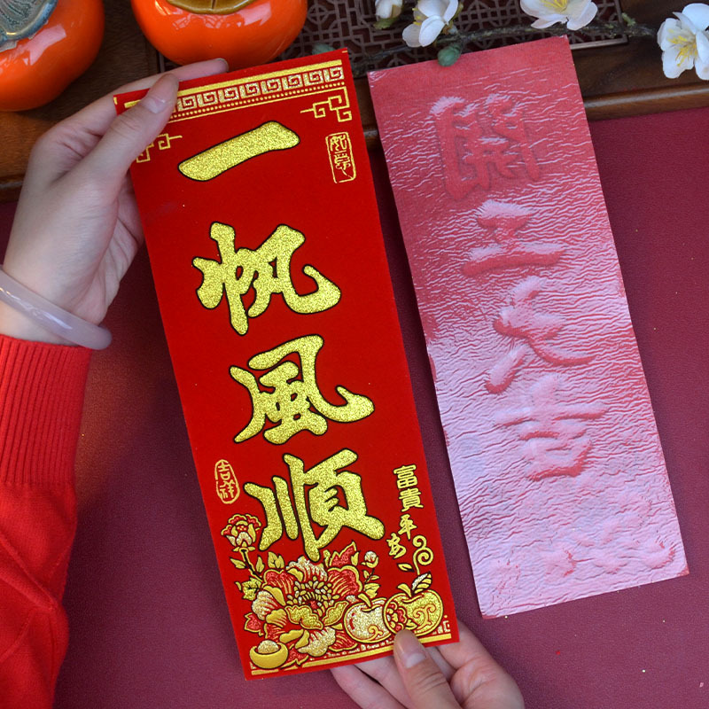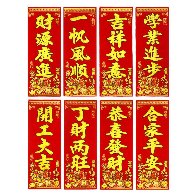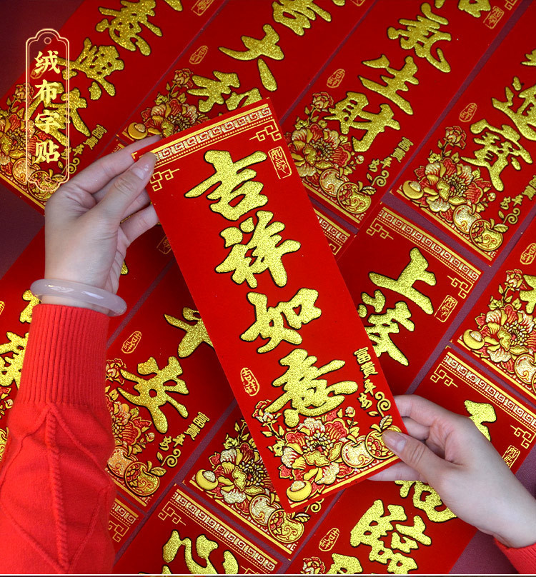 珲春新年春节门头装饰四字挥春出入平安迷你小对联绒布吉星高照