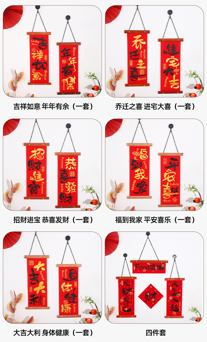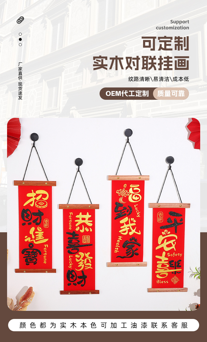 2025实木挂轴对联乔迁之喜家居装饰挂件春节玄关客厅春联挂饰吉祥