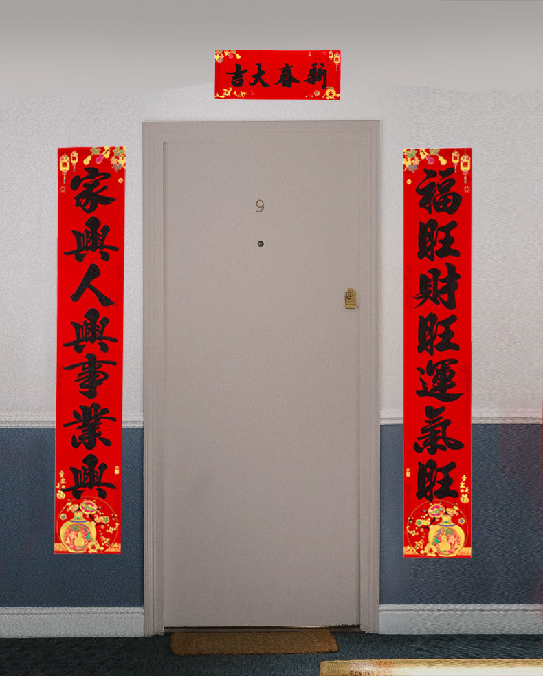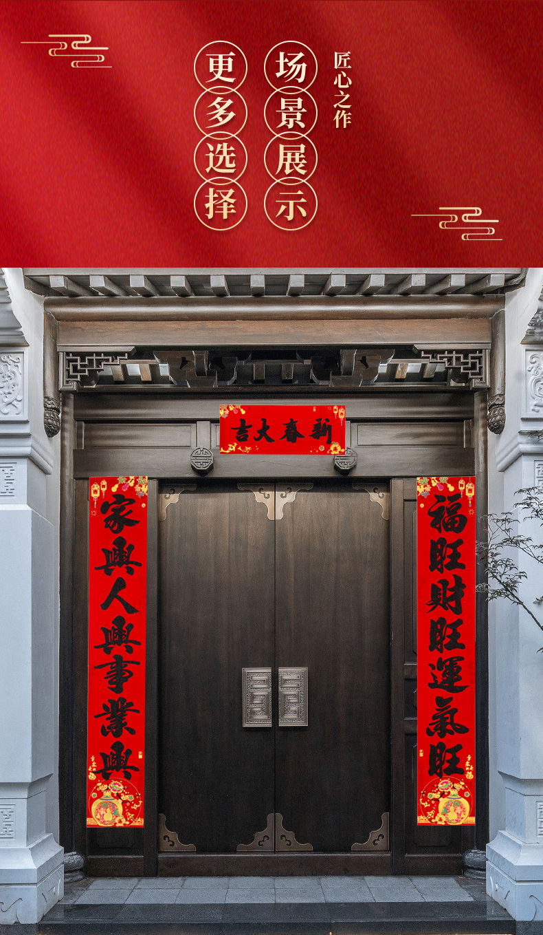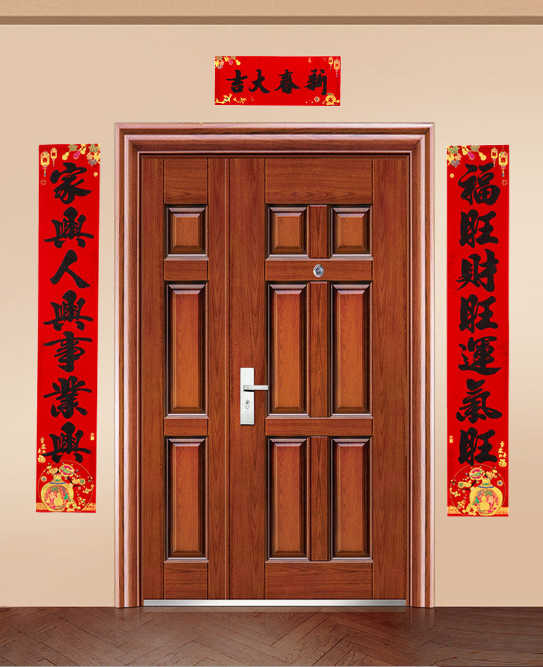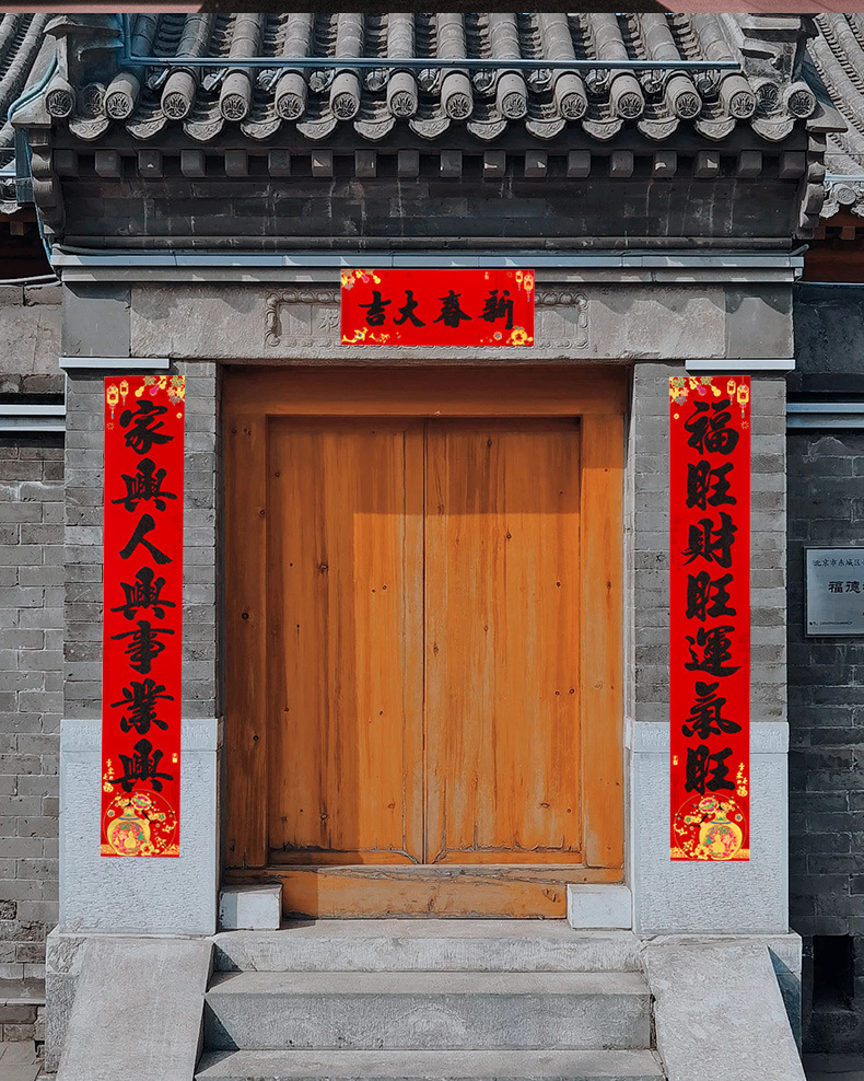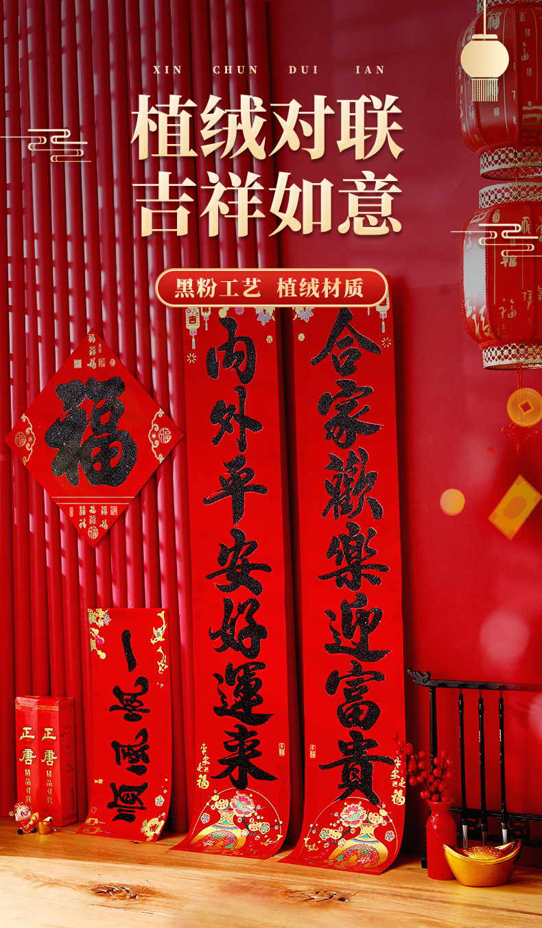 春节对联家用大门装饰2026马年植绒黑粉福字门贴门联新年过年春联