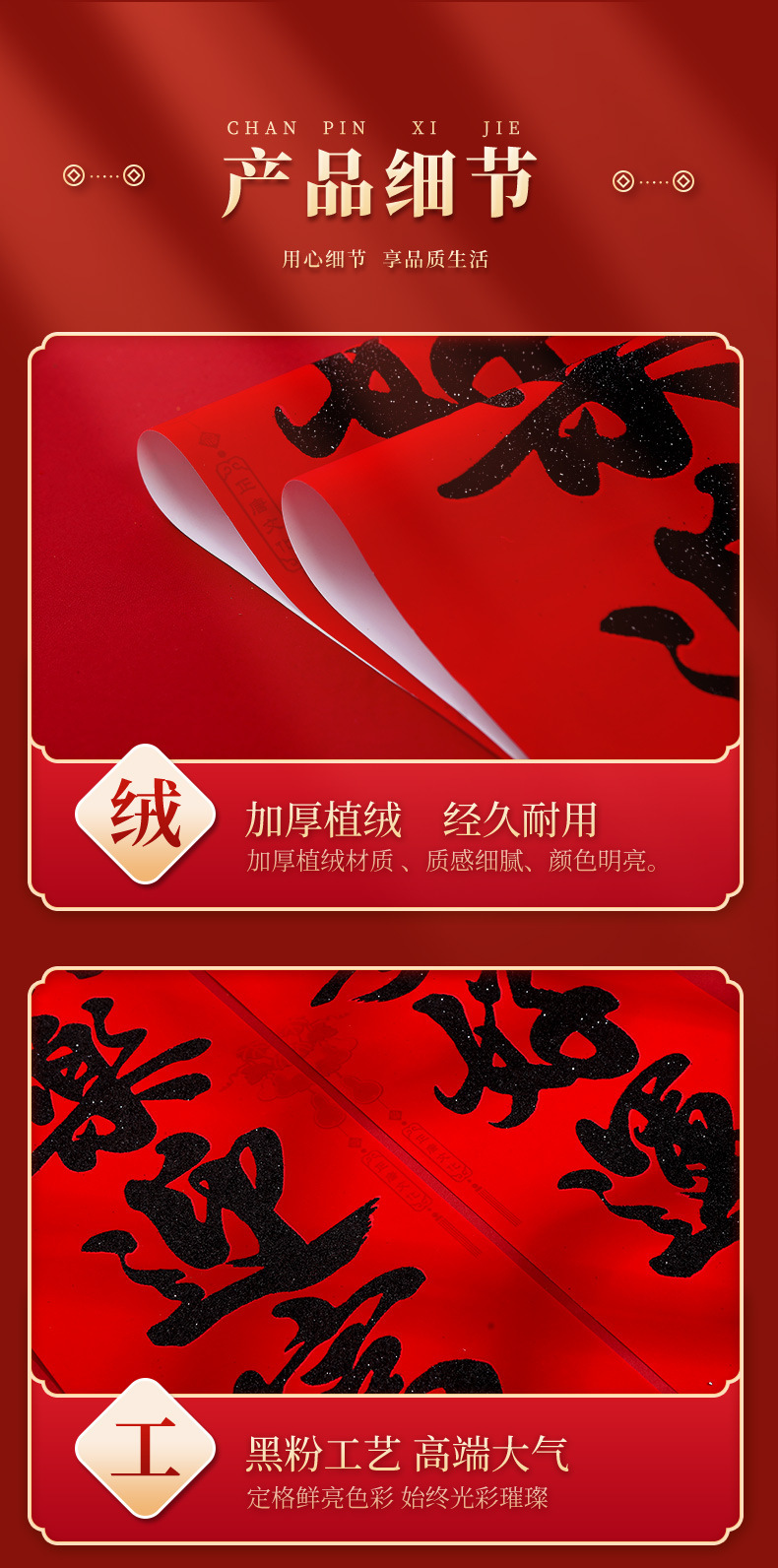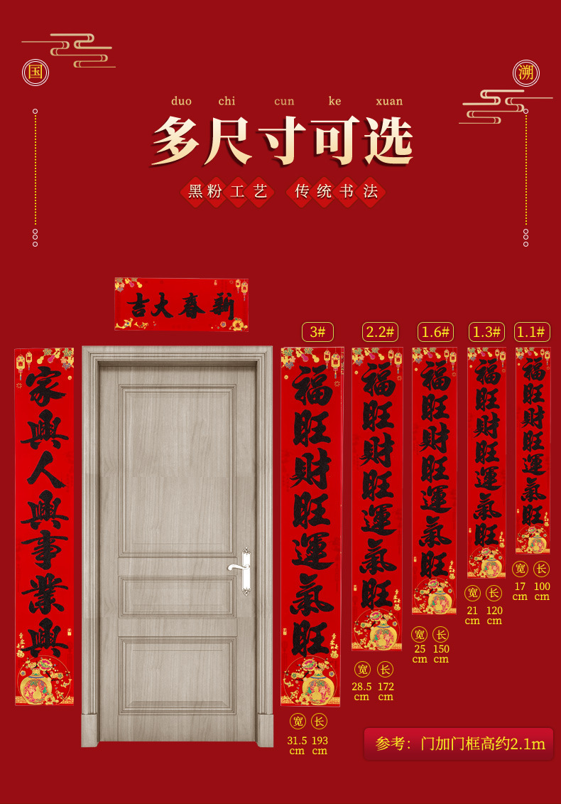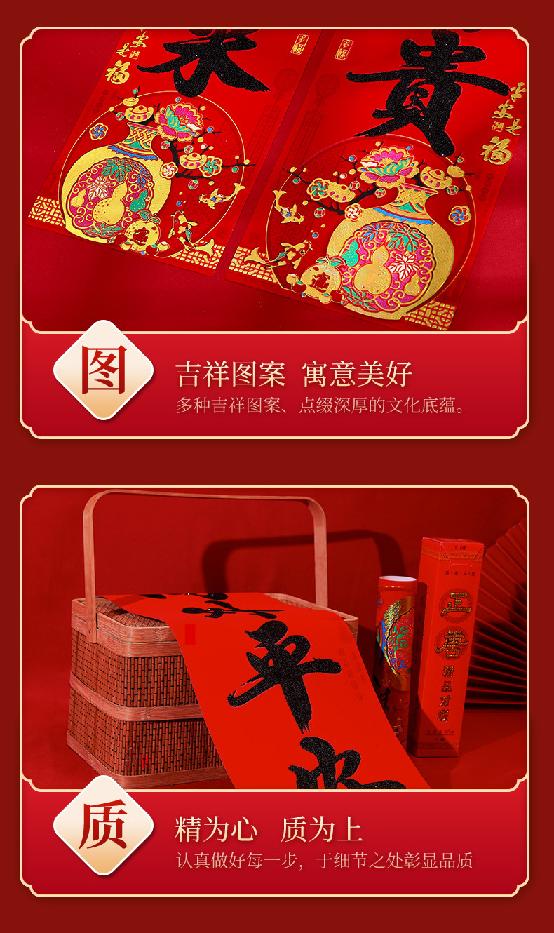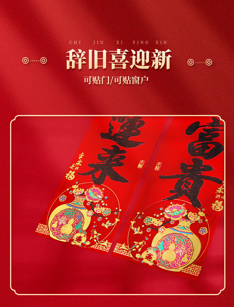 春节对联家用大门装饰2026马年植绒黑粉福字门贴门联新年过年春联