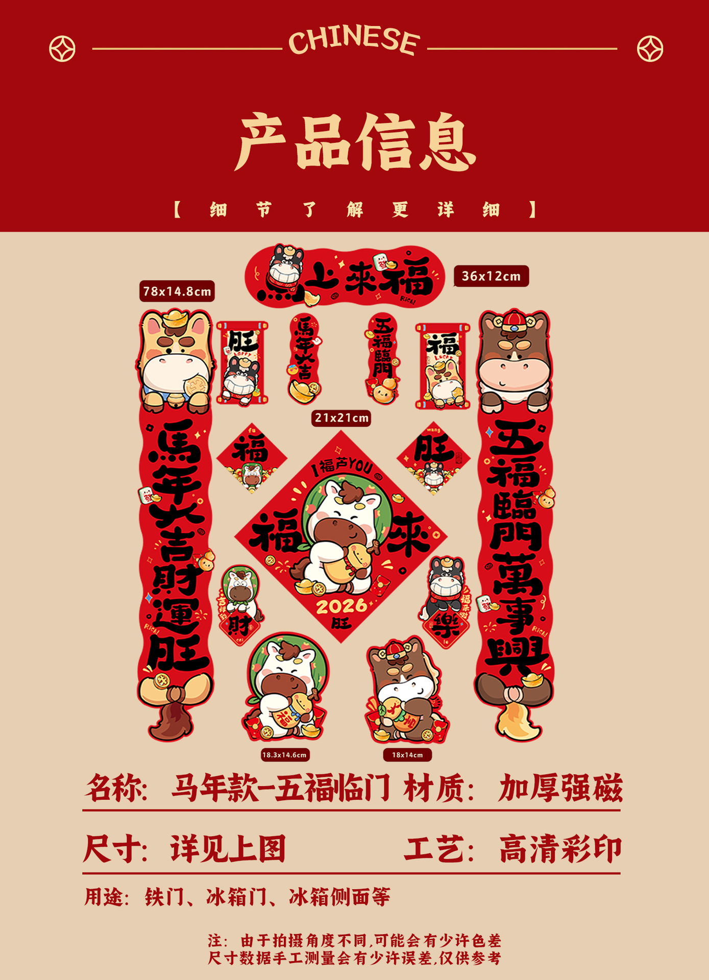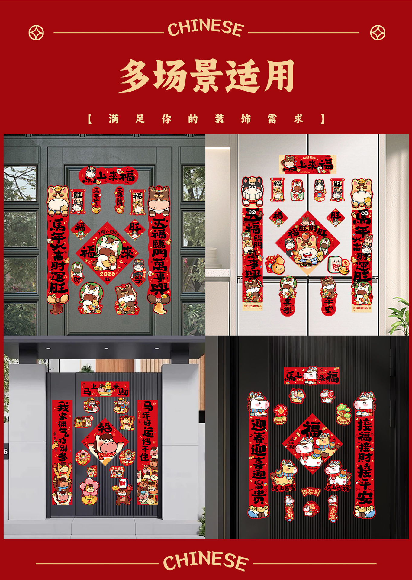 2026马年磁吸对联软磁春联家用福字门贴磁吸冰箱贴春节礼包批发