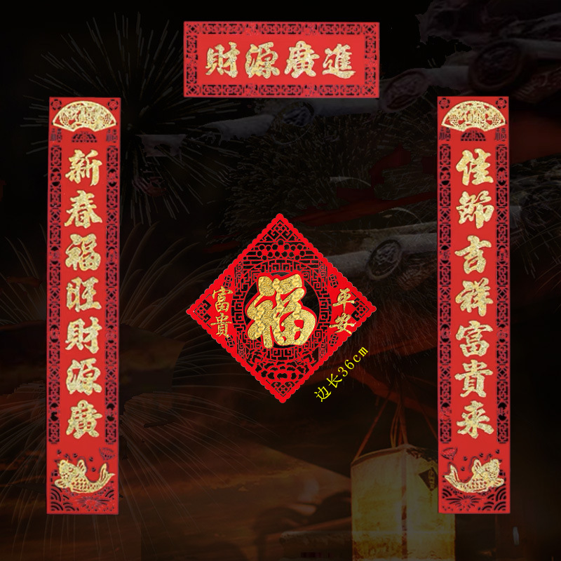 2026马年对联批发新年高档植绒布自带胶大门春联过年乔迁福字门贴
