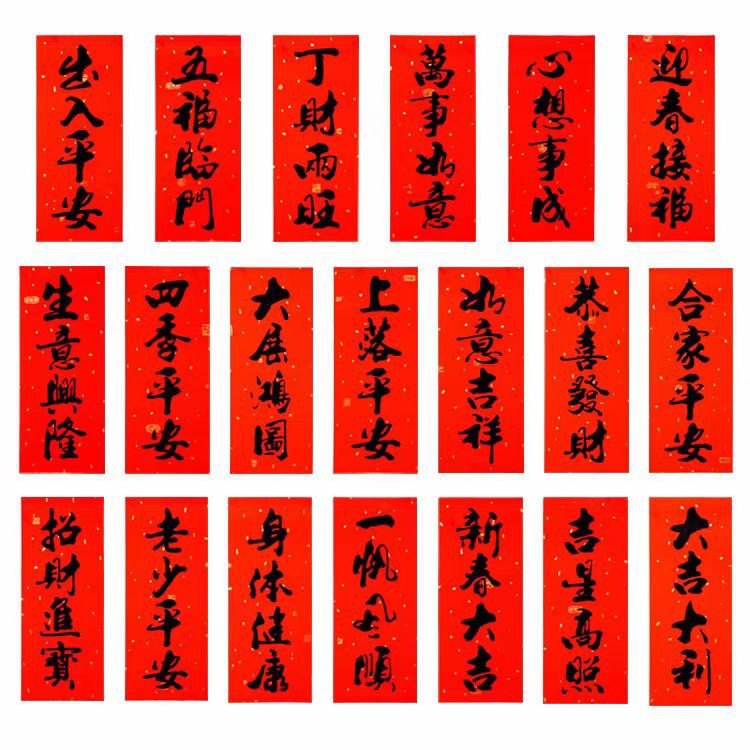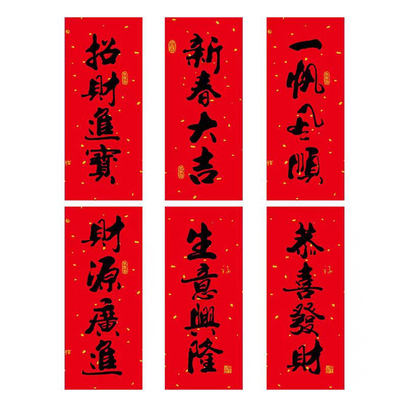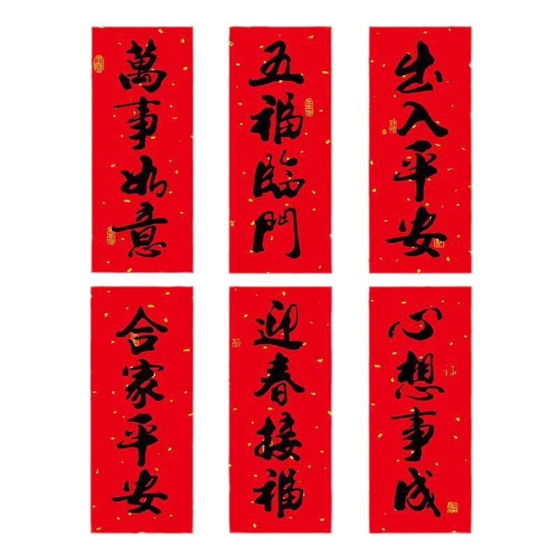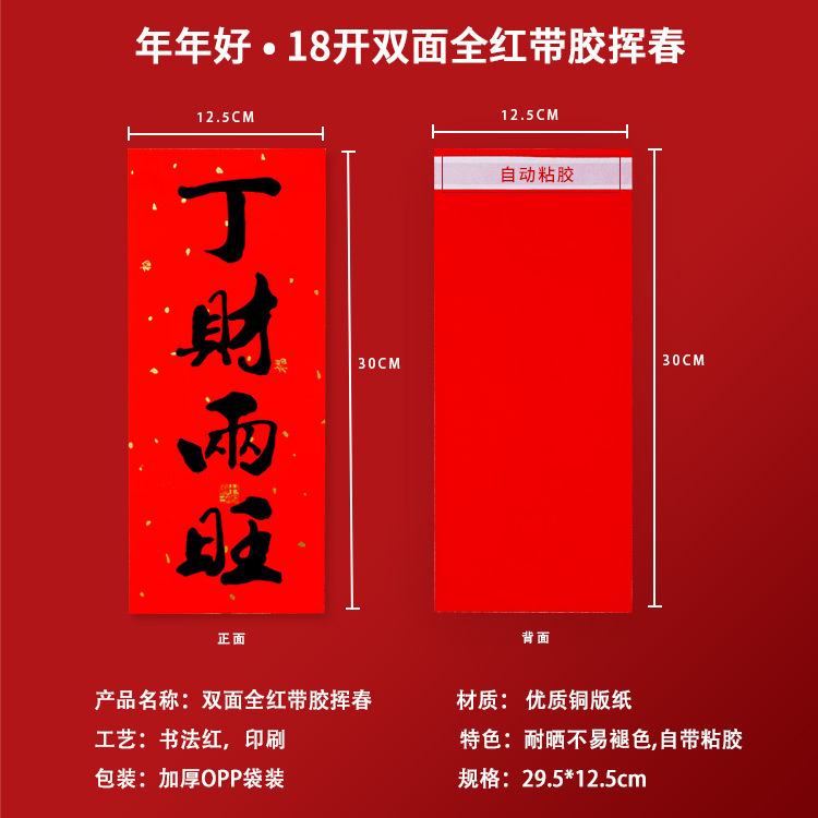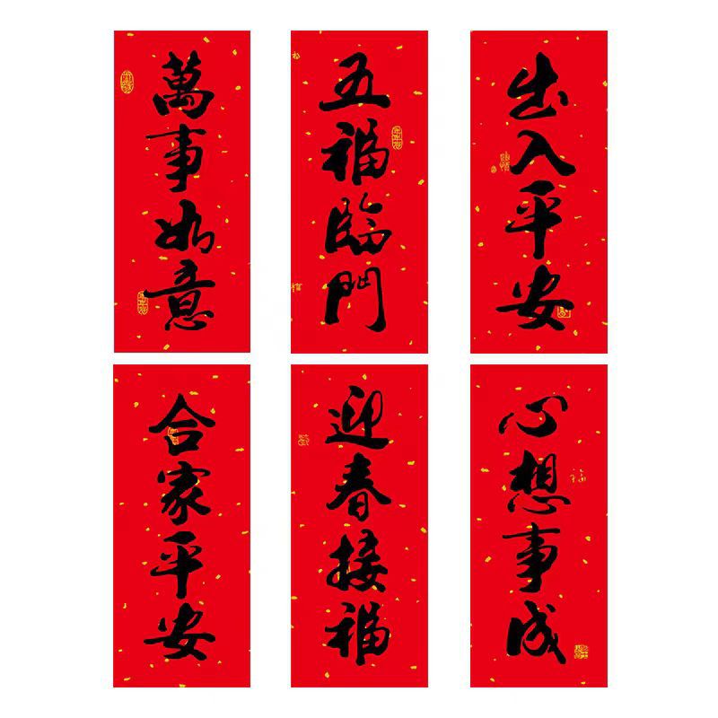 年年好双面红带胶小珲春书法四字小对联贴钱利是纸挥春门贴吉祥