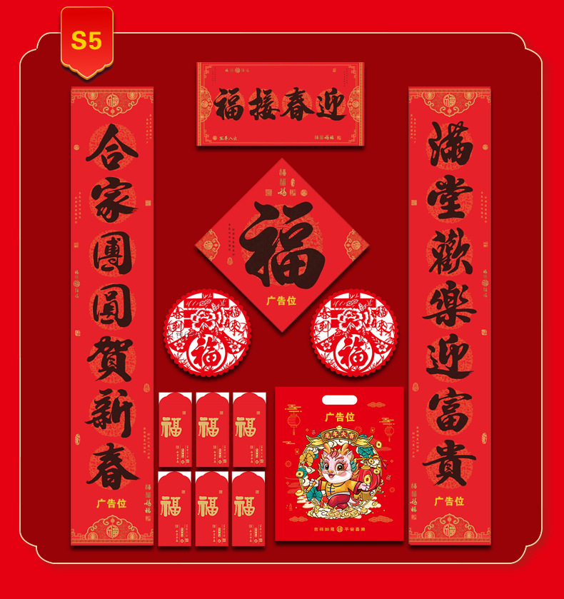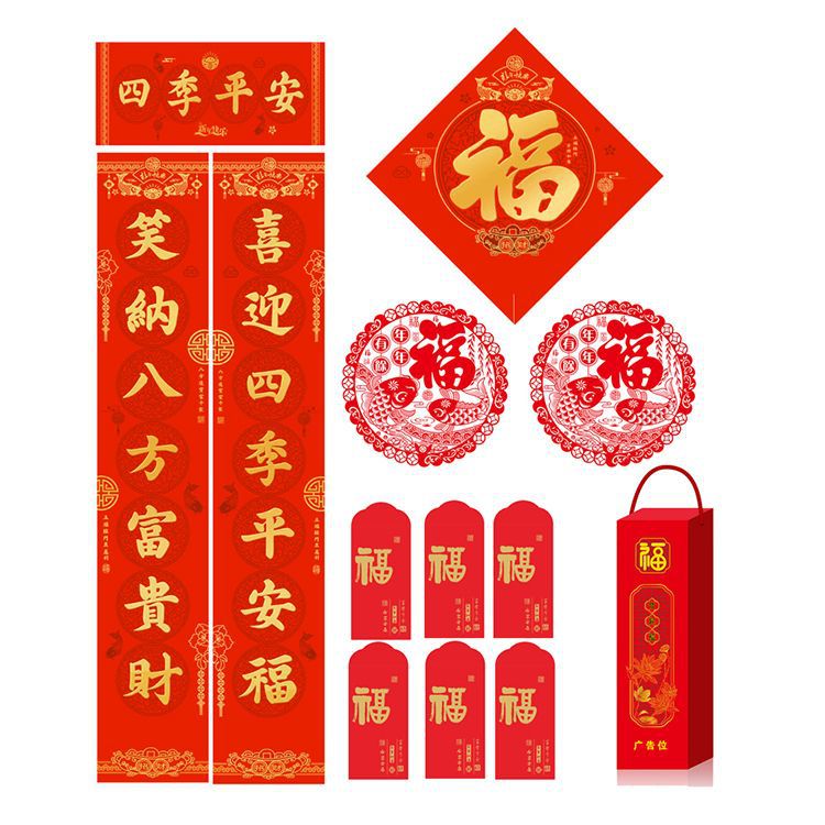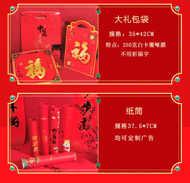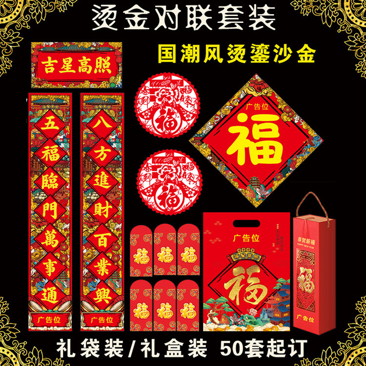 2025年广告对联大礼包定制做烫金植绒春联福字礼盒银行企业印logo