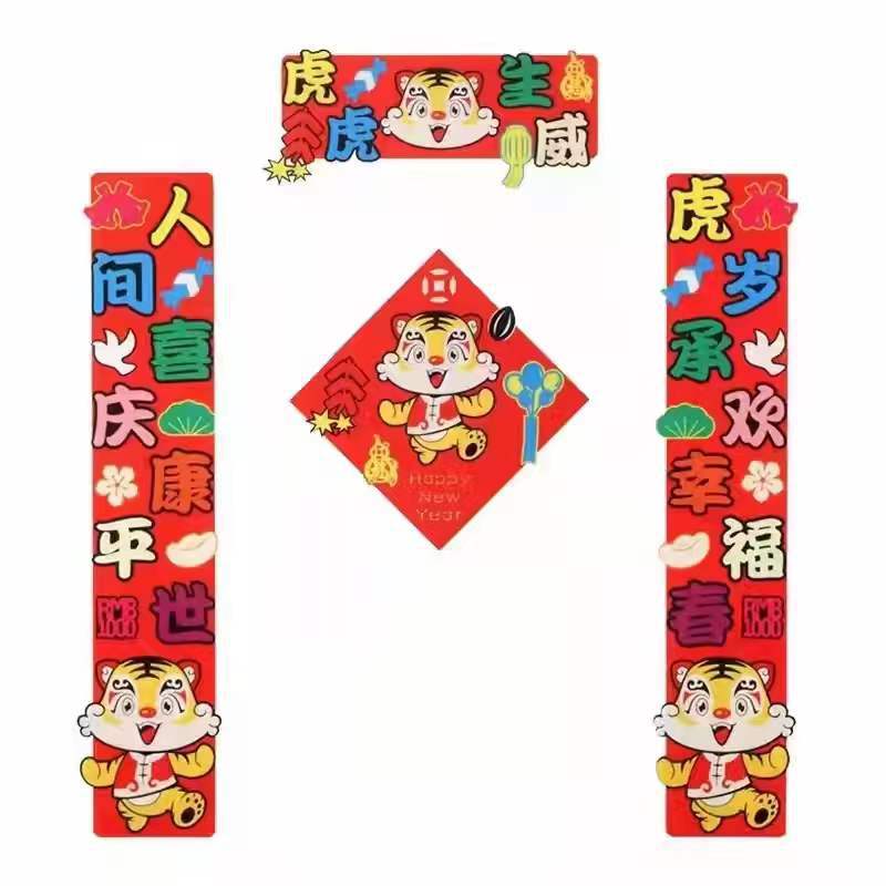 厂家批发新款2022虎年毛毡对联春节装饰品门贴窗花福字春节喜庆