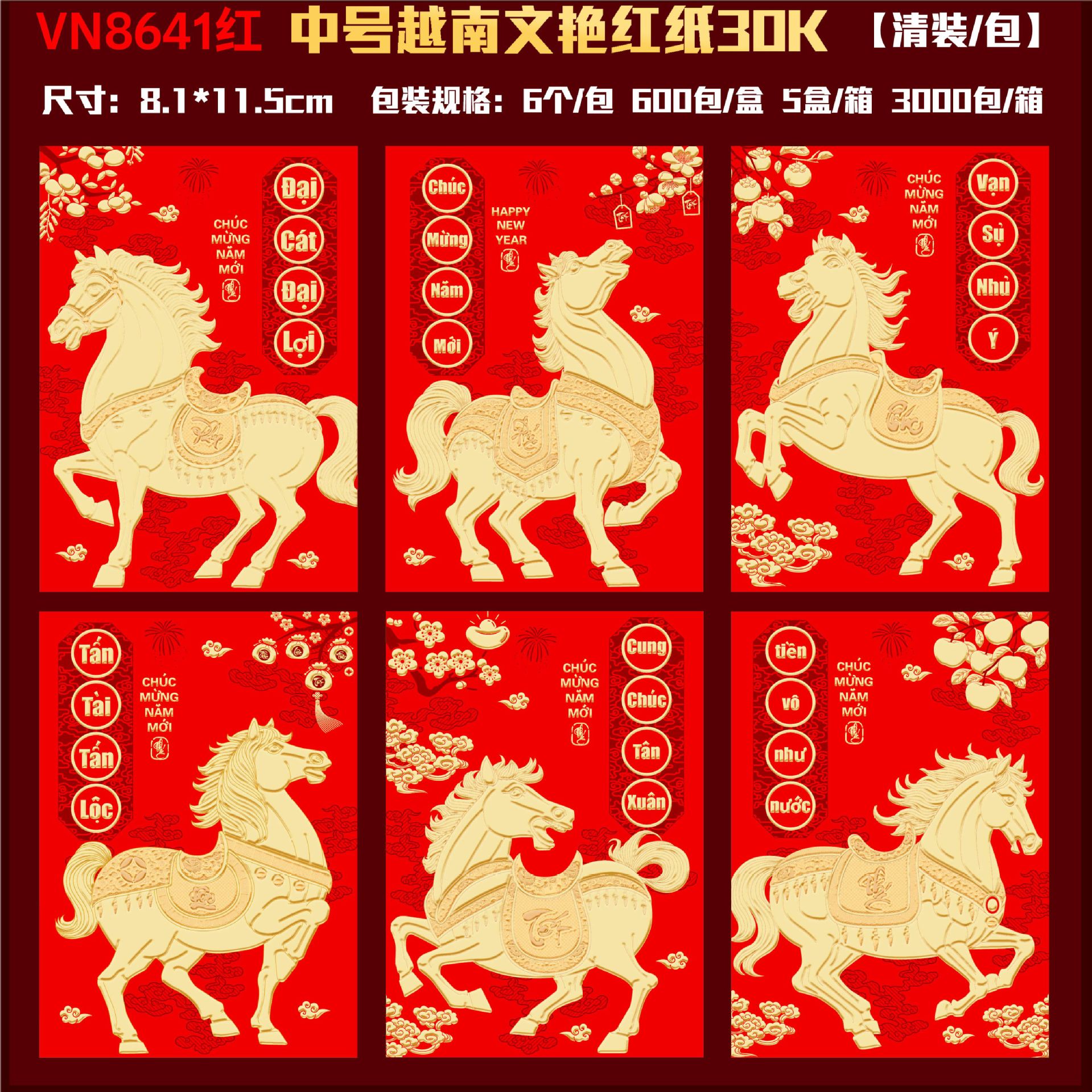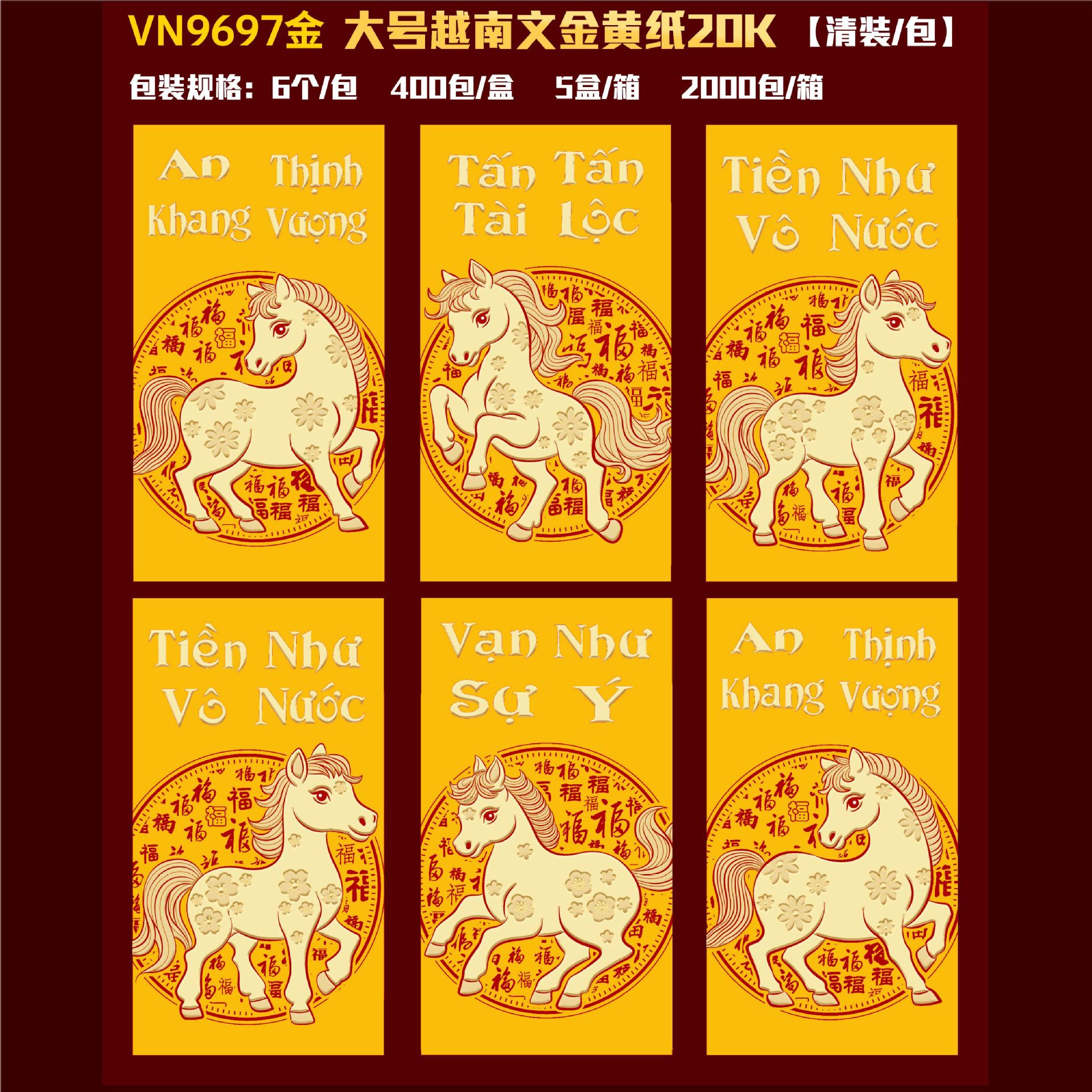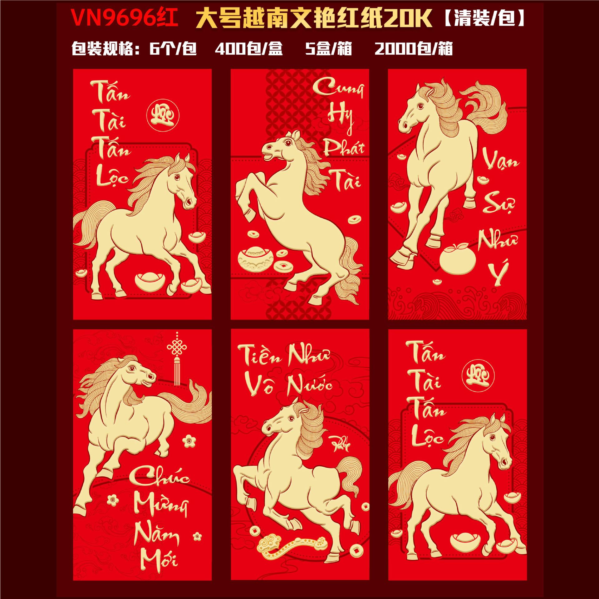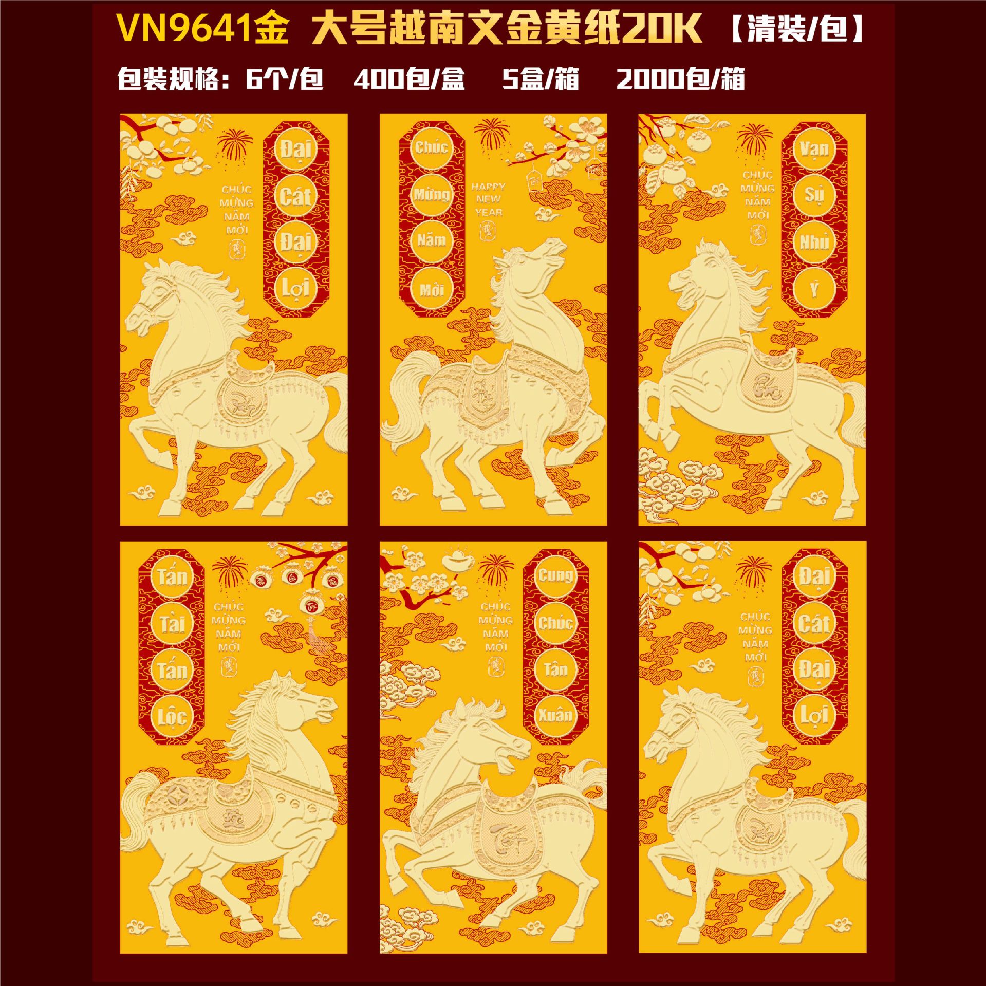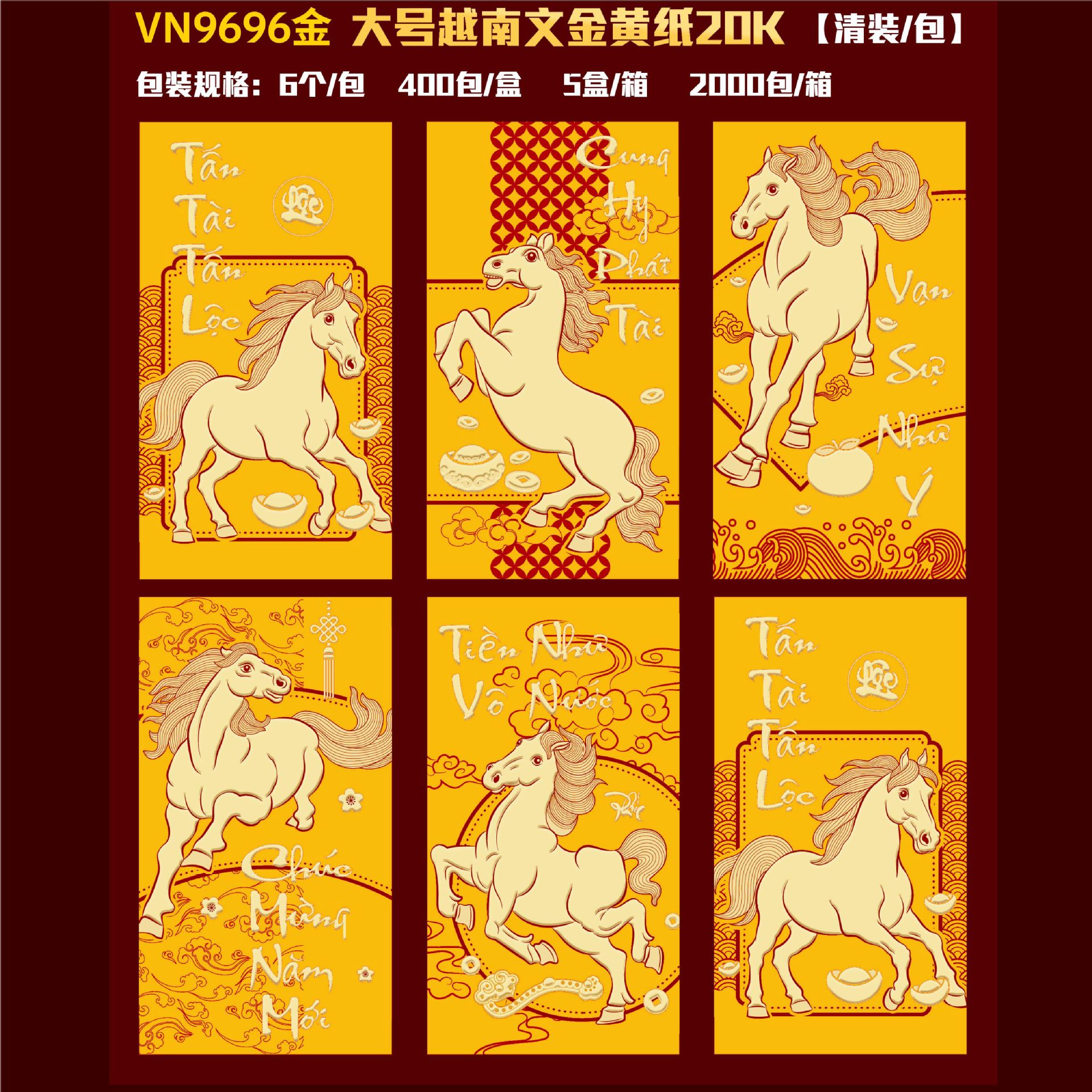 越南文跨境批发2026马年金黄珠光红包新款新年压岁卡通生肖利是封