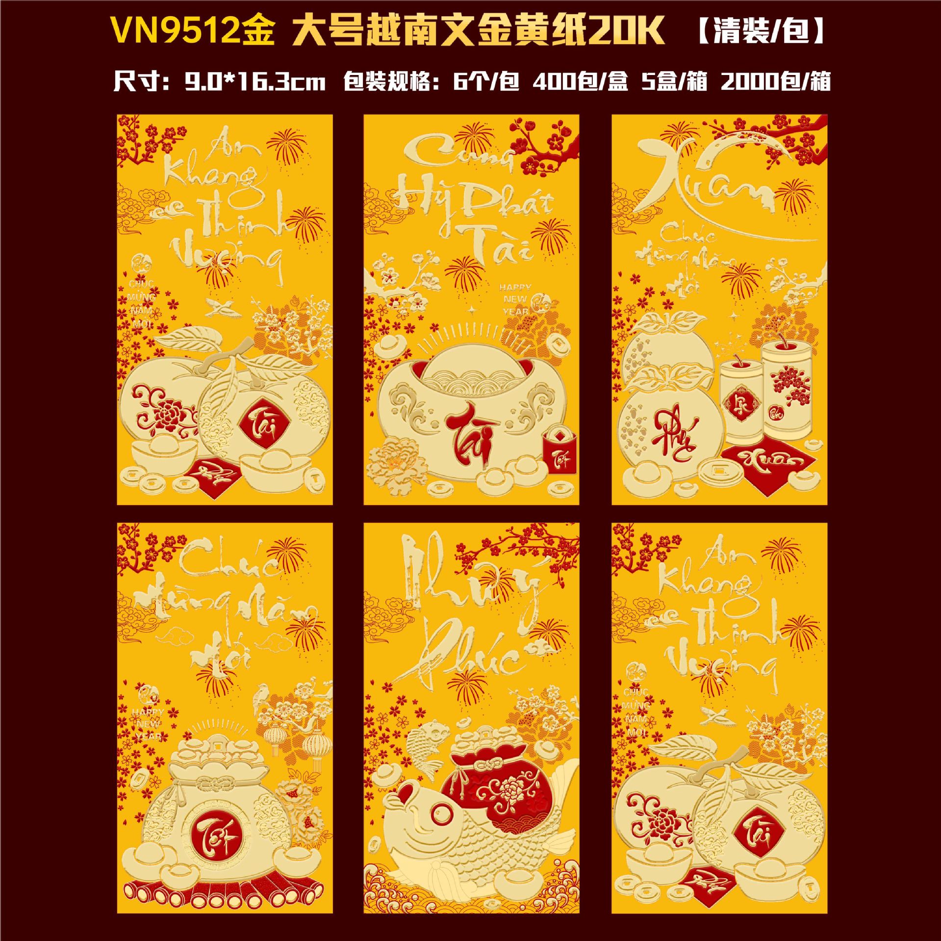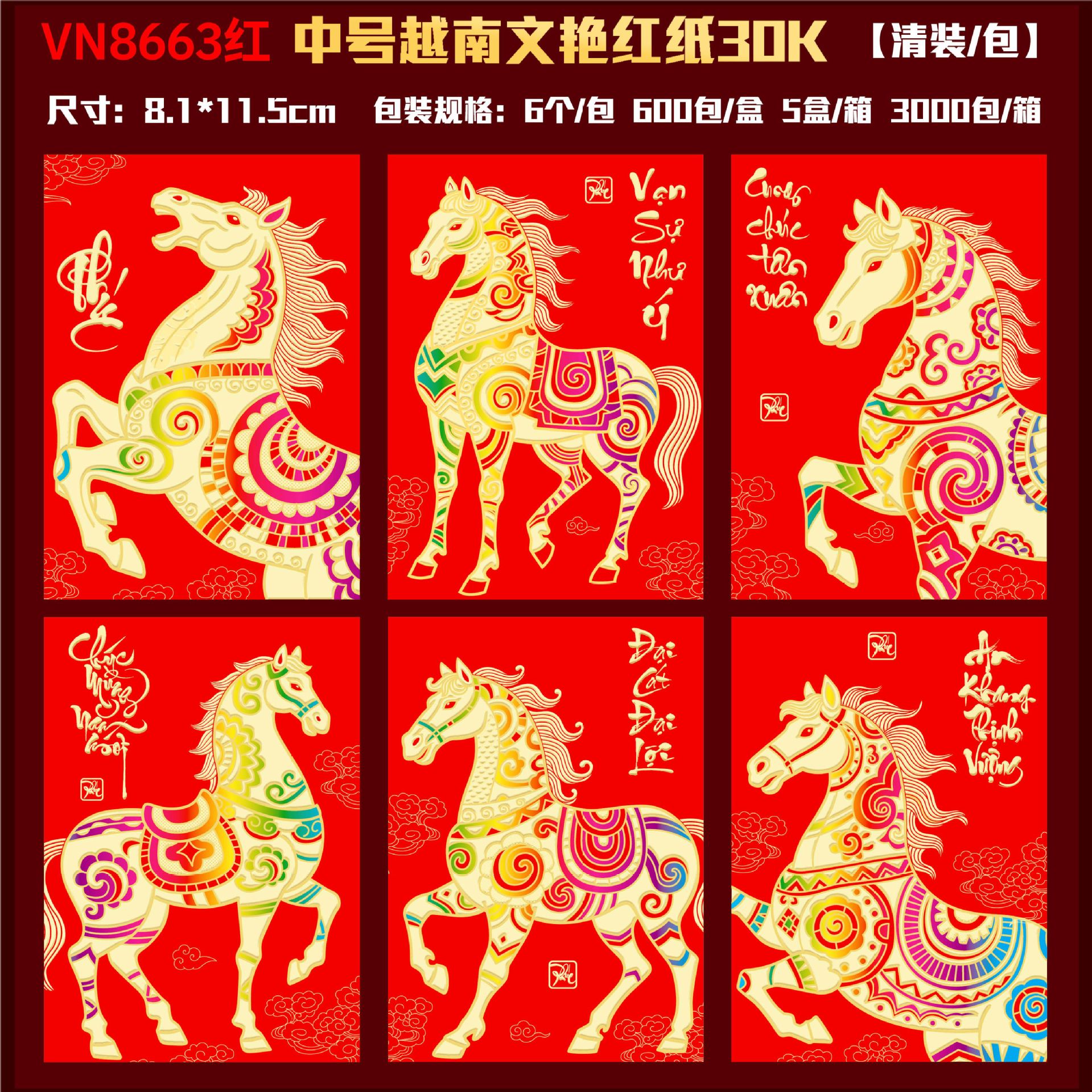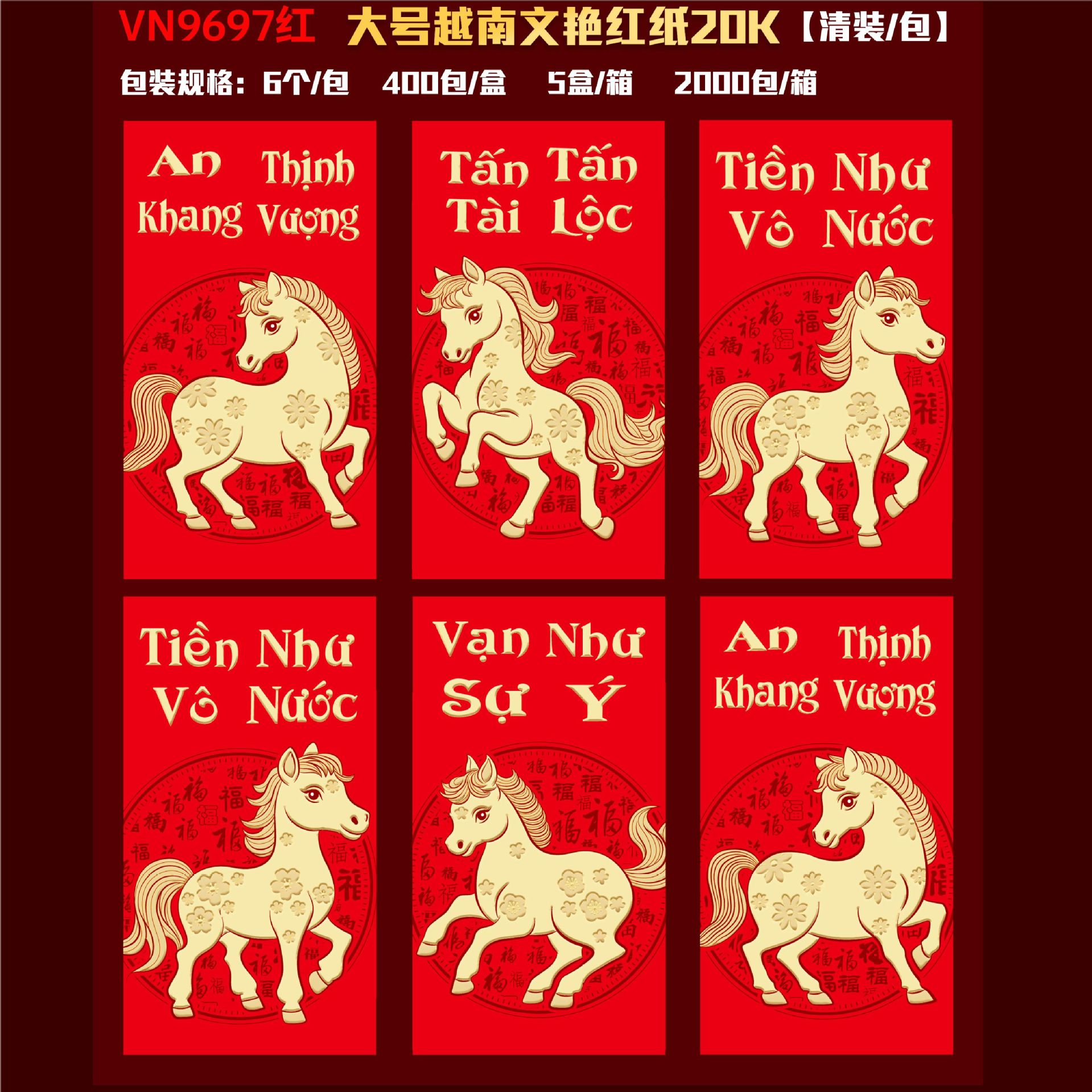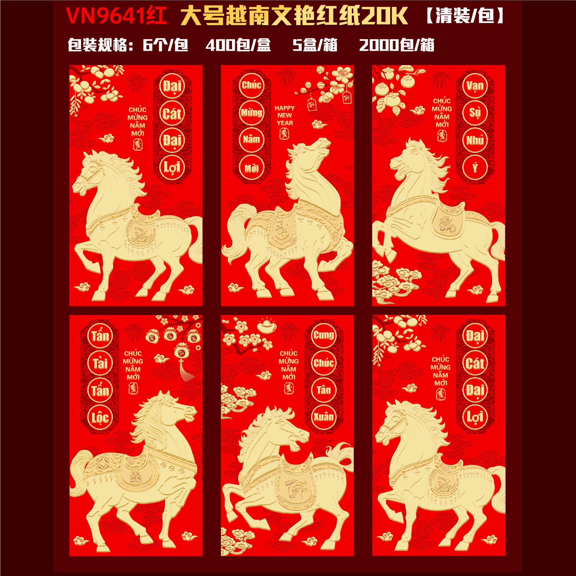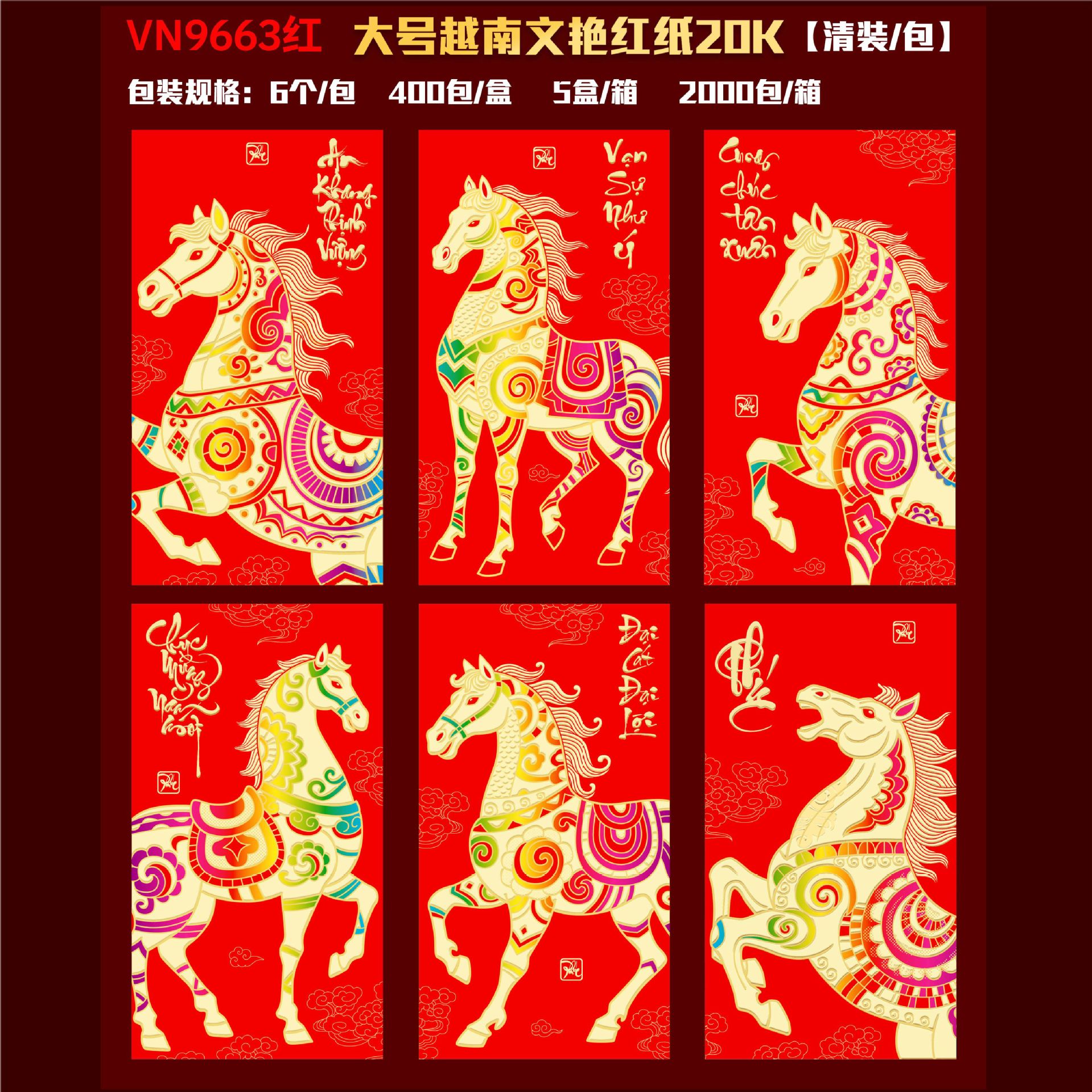 越南文跨境批发2026马年金黄珠光红包新款新年压岁卡通生肖利是封