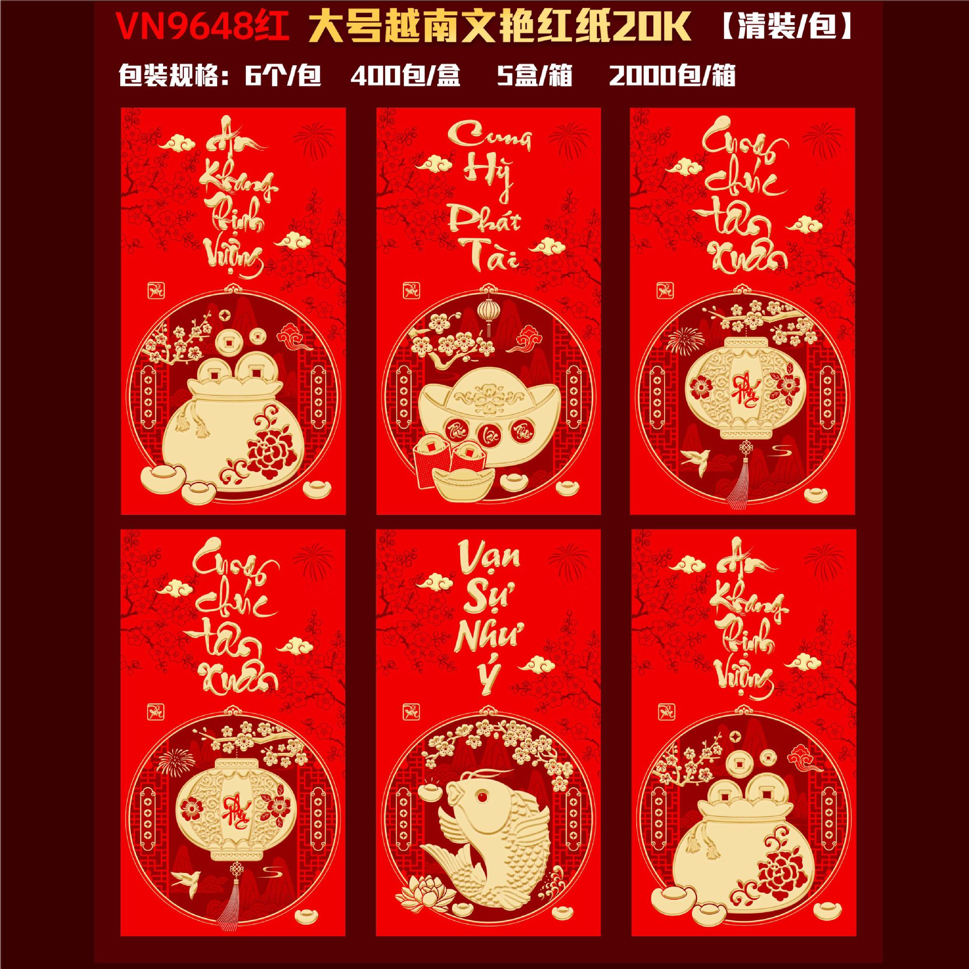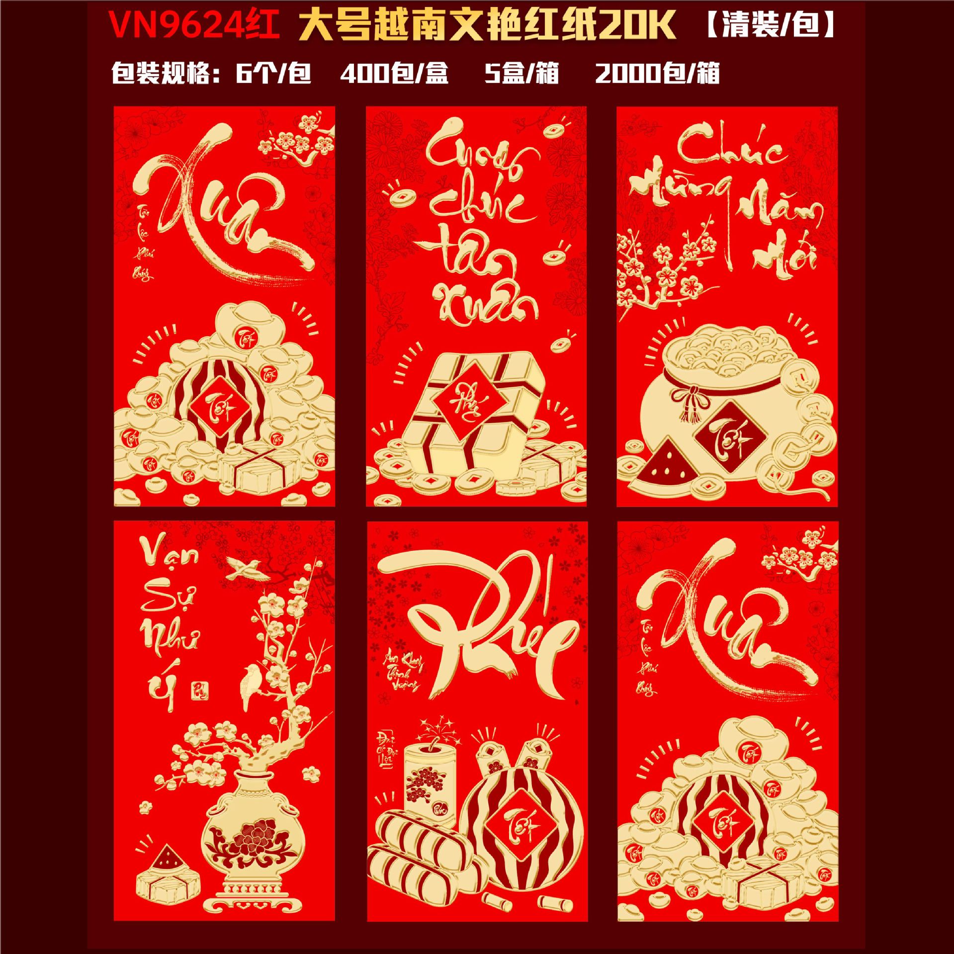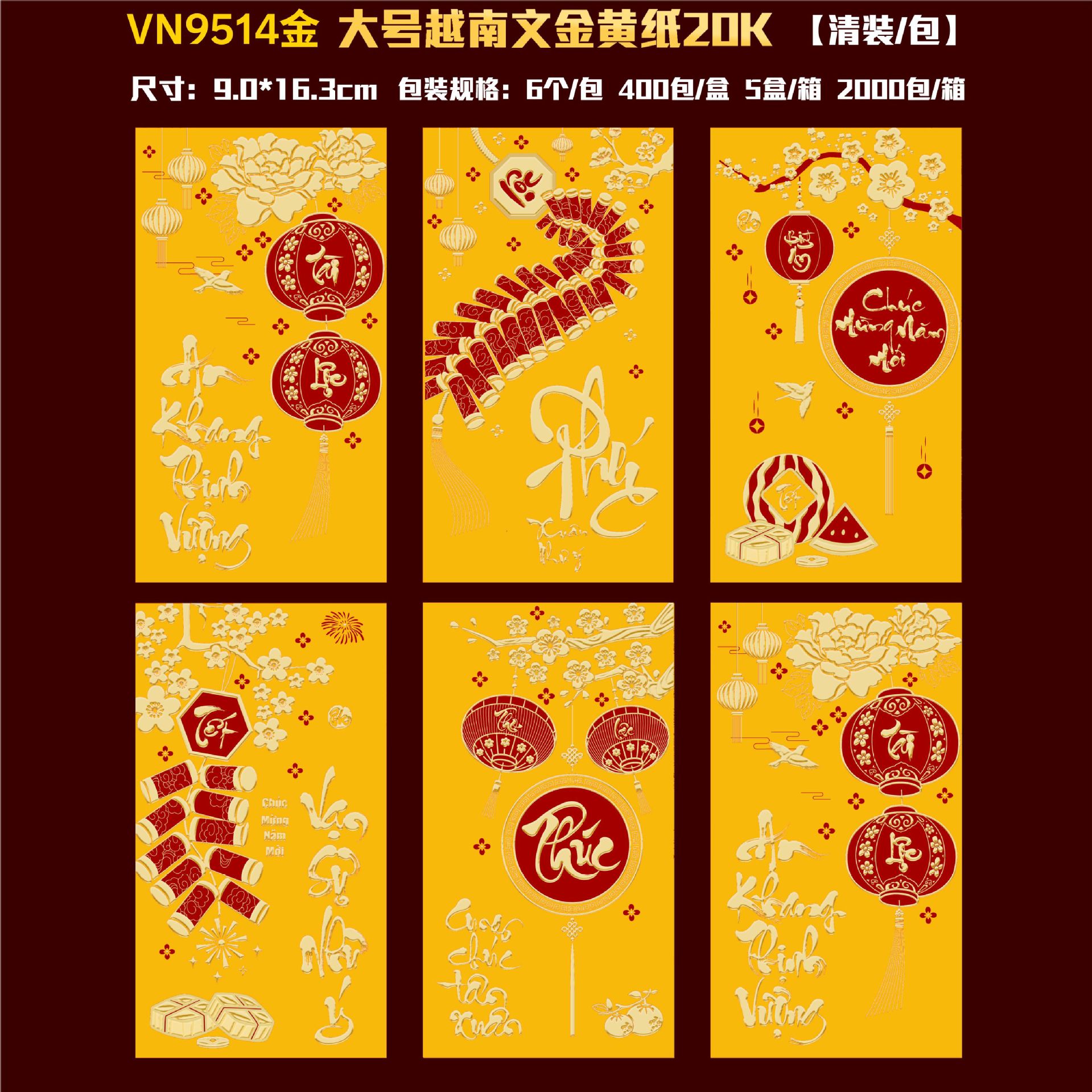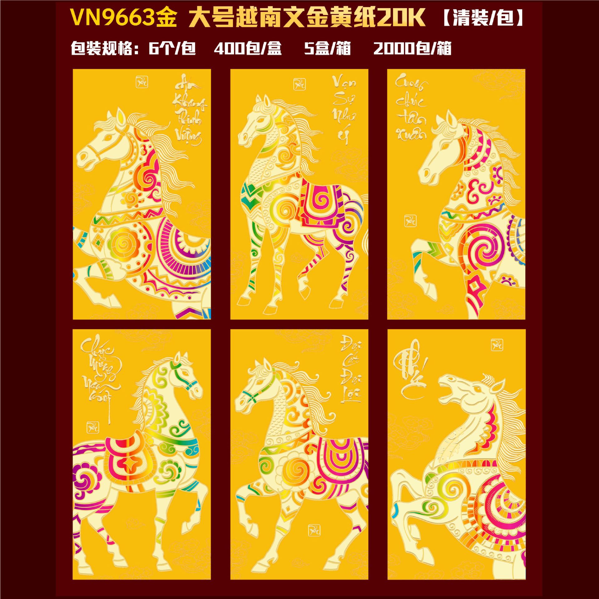 越南文跨境批发2026马年金黄珠光红包新款新年压岁卡通生肖利是封