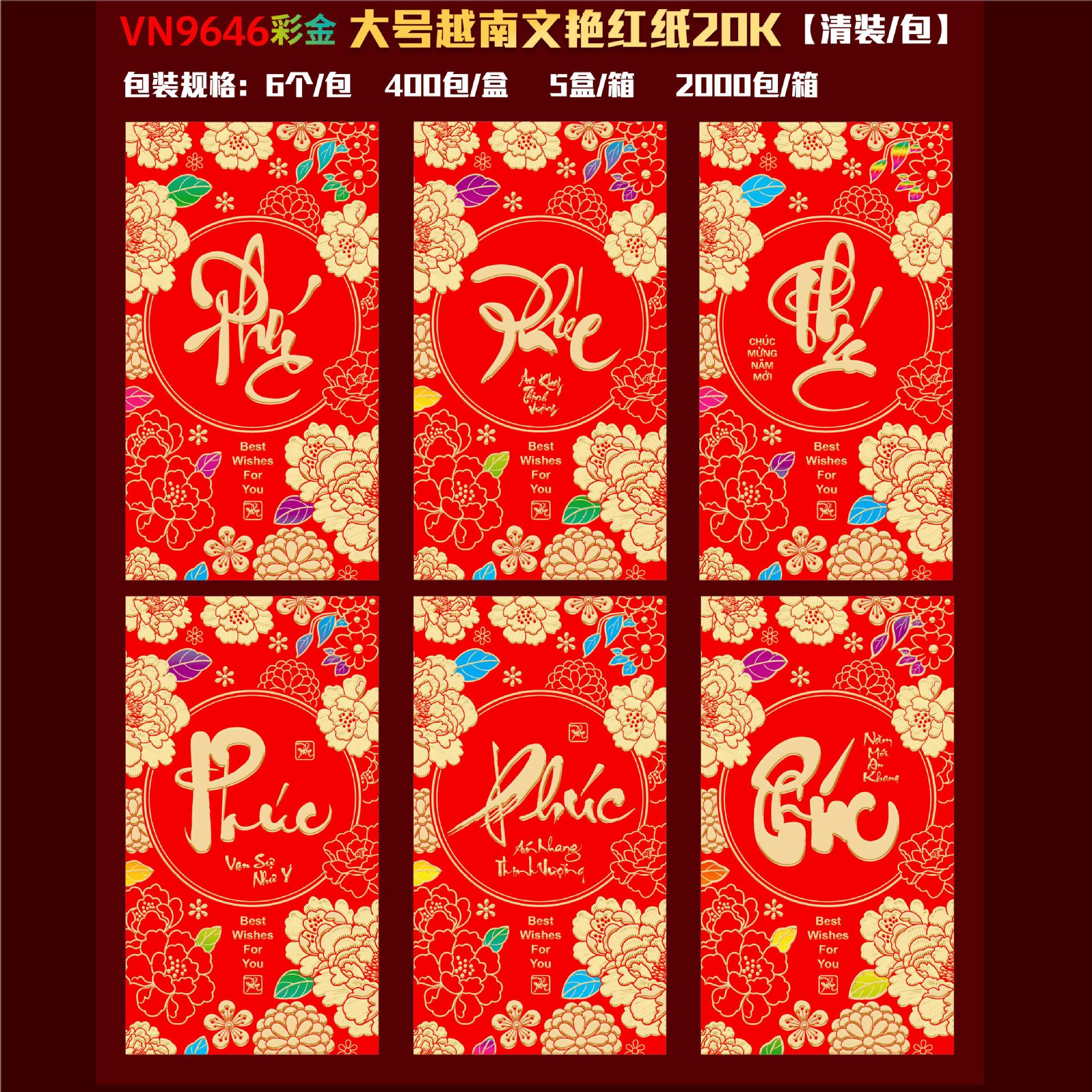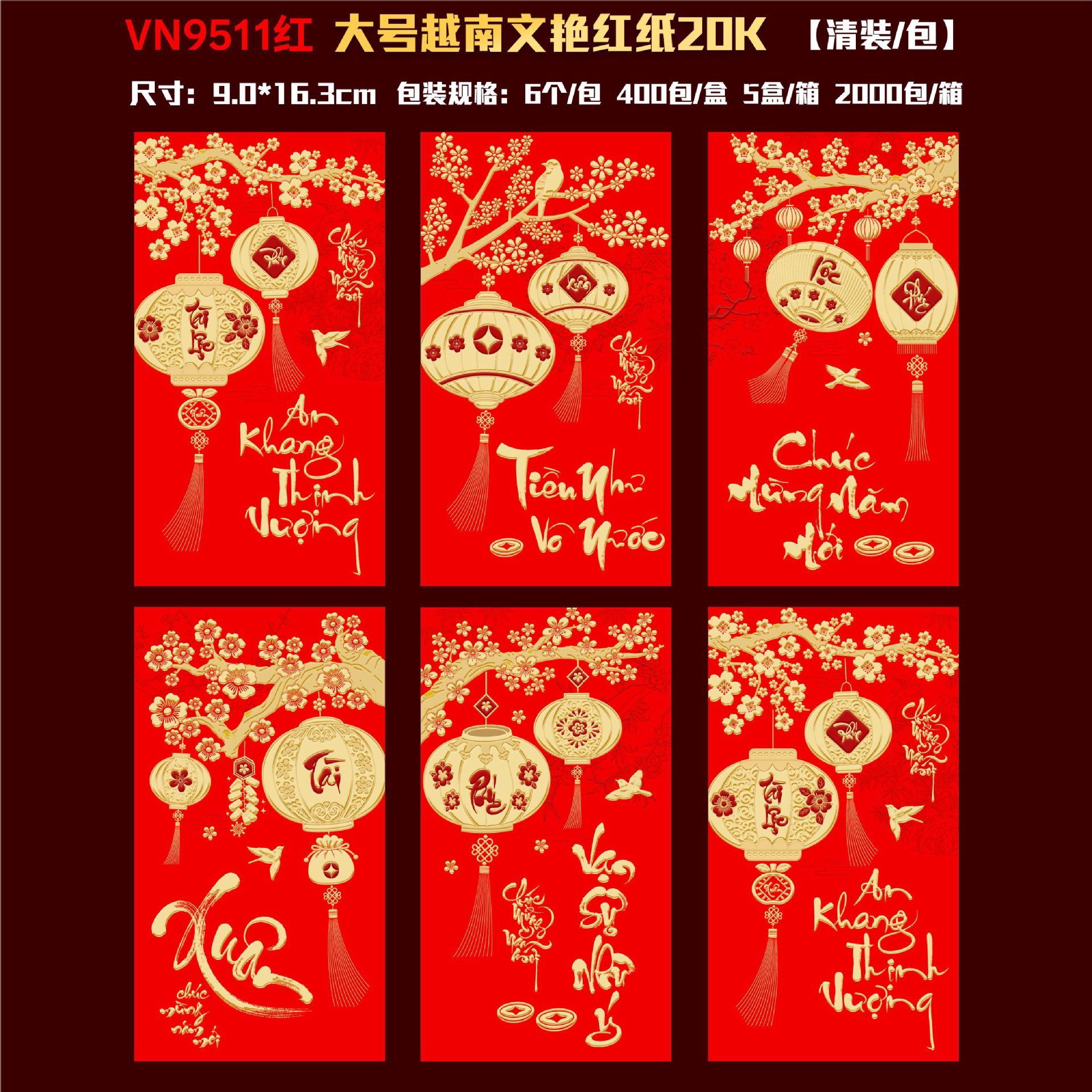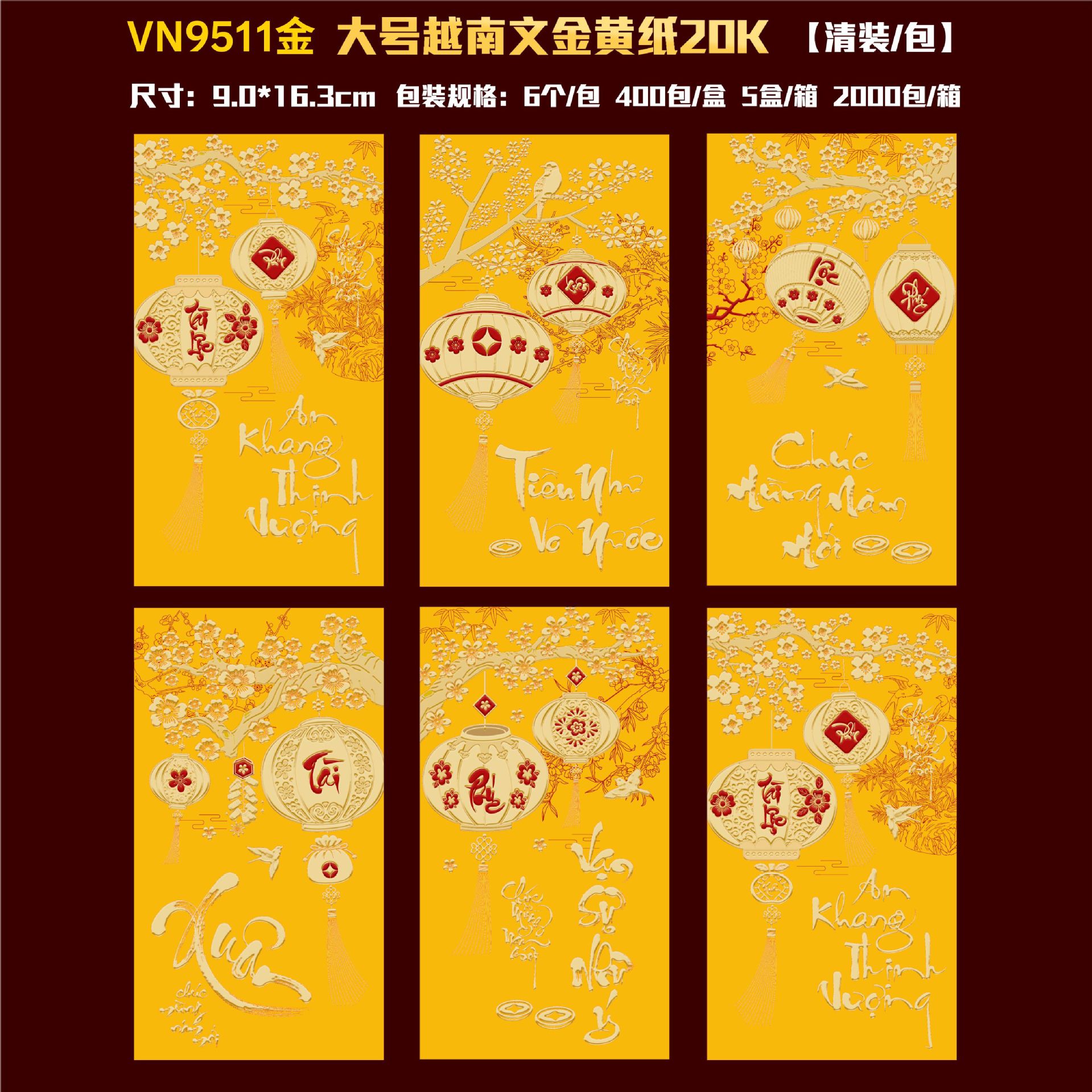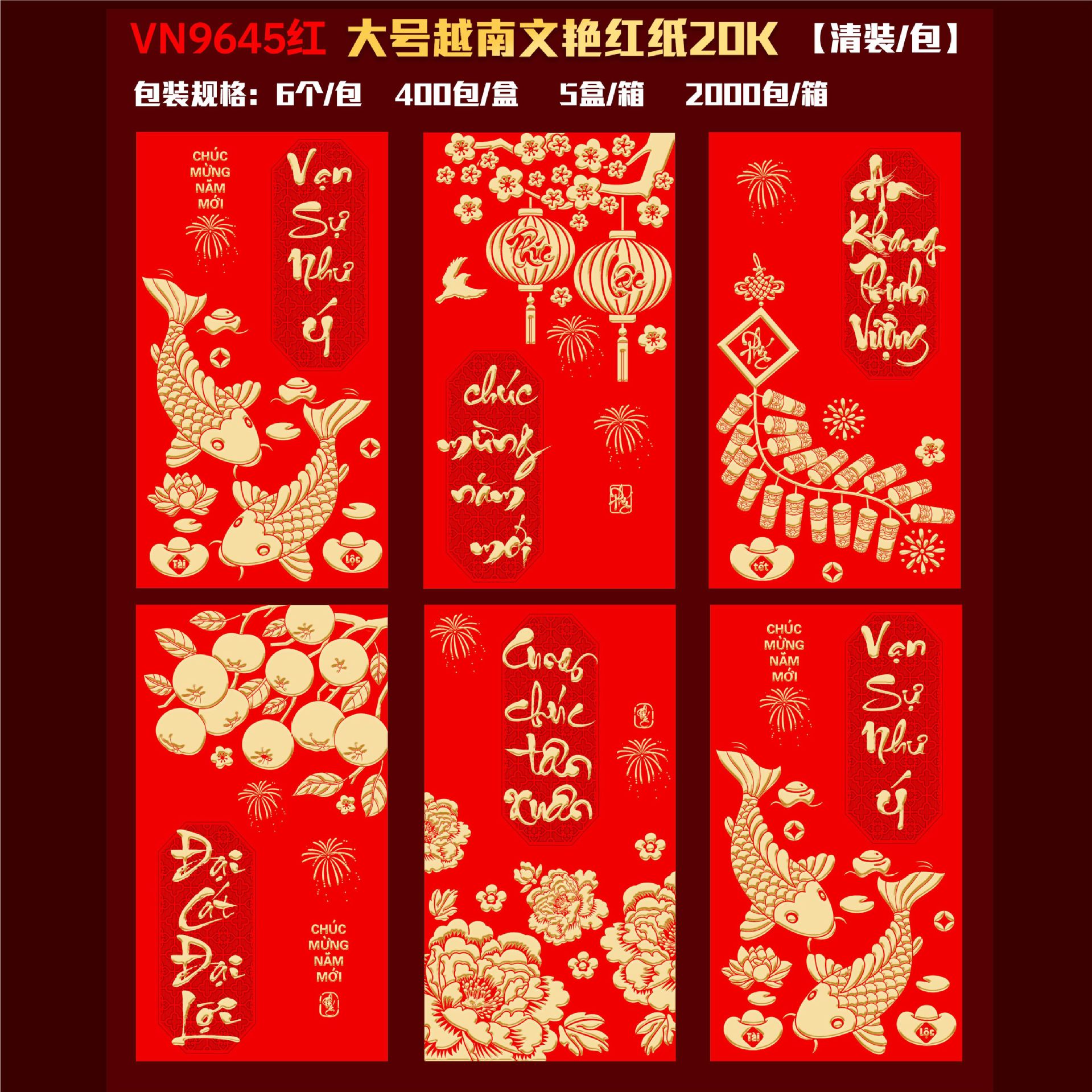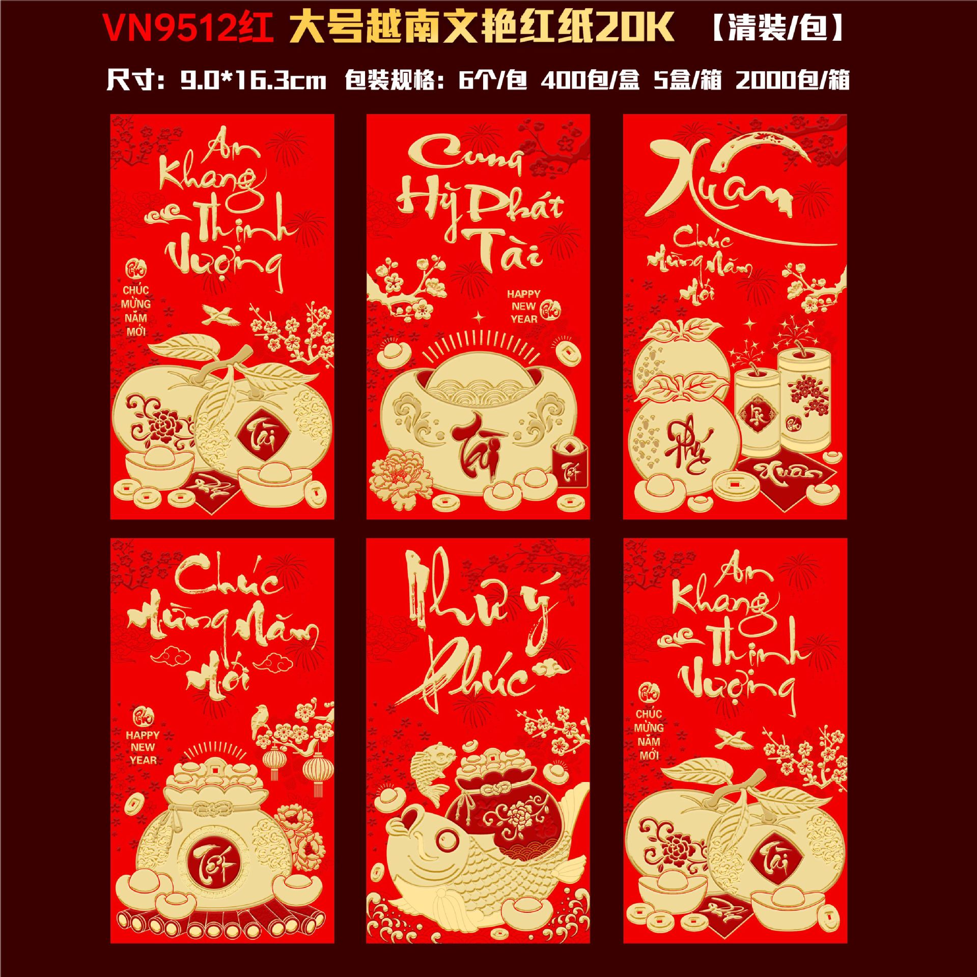 越南文跨境批发2026马年金黄珠光红包新款新年压岁卡通生肖利是封