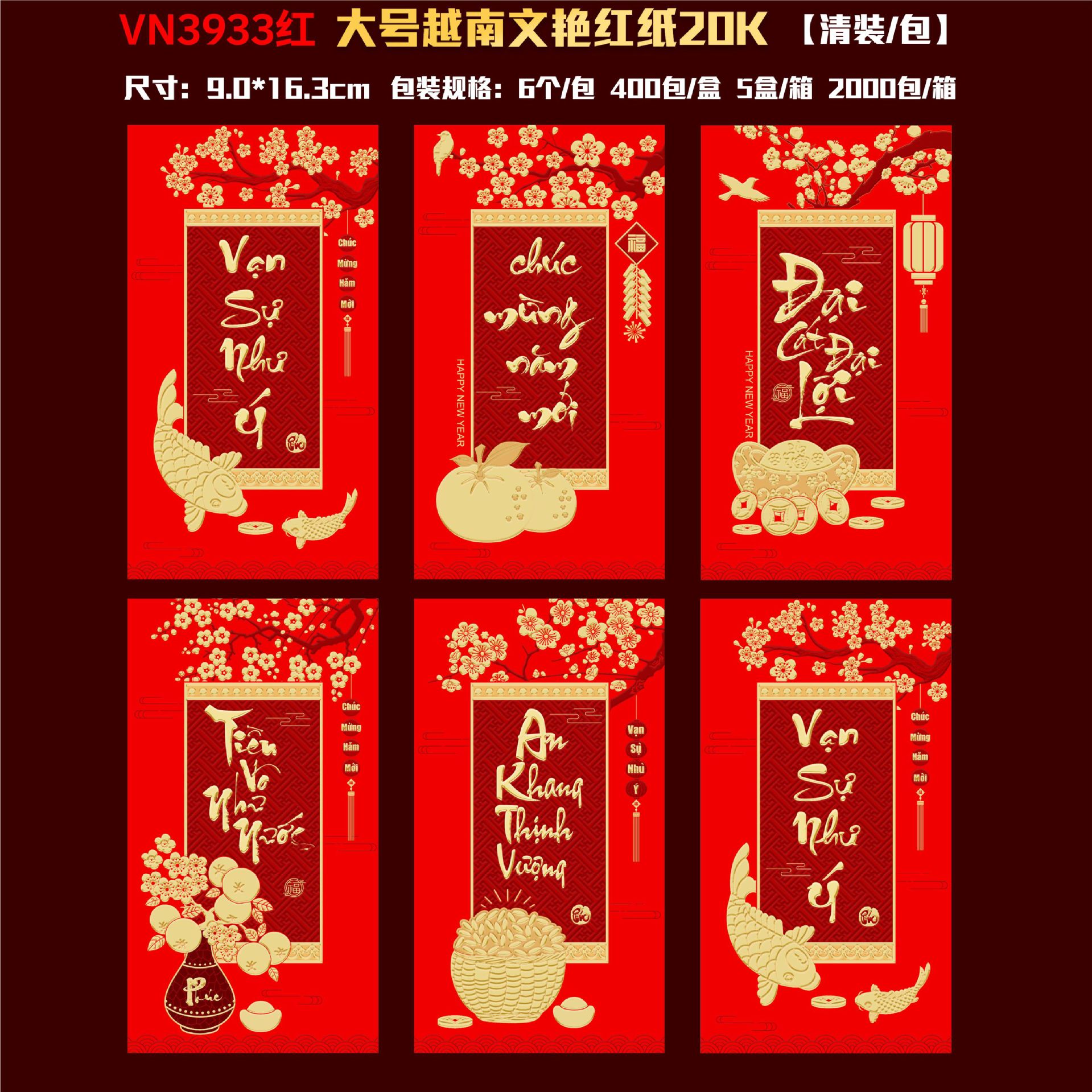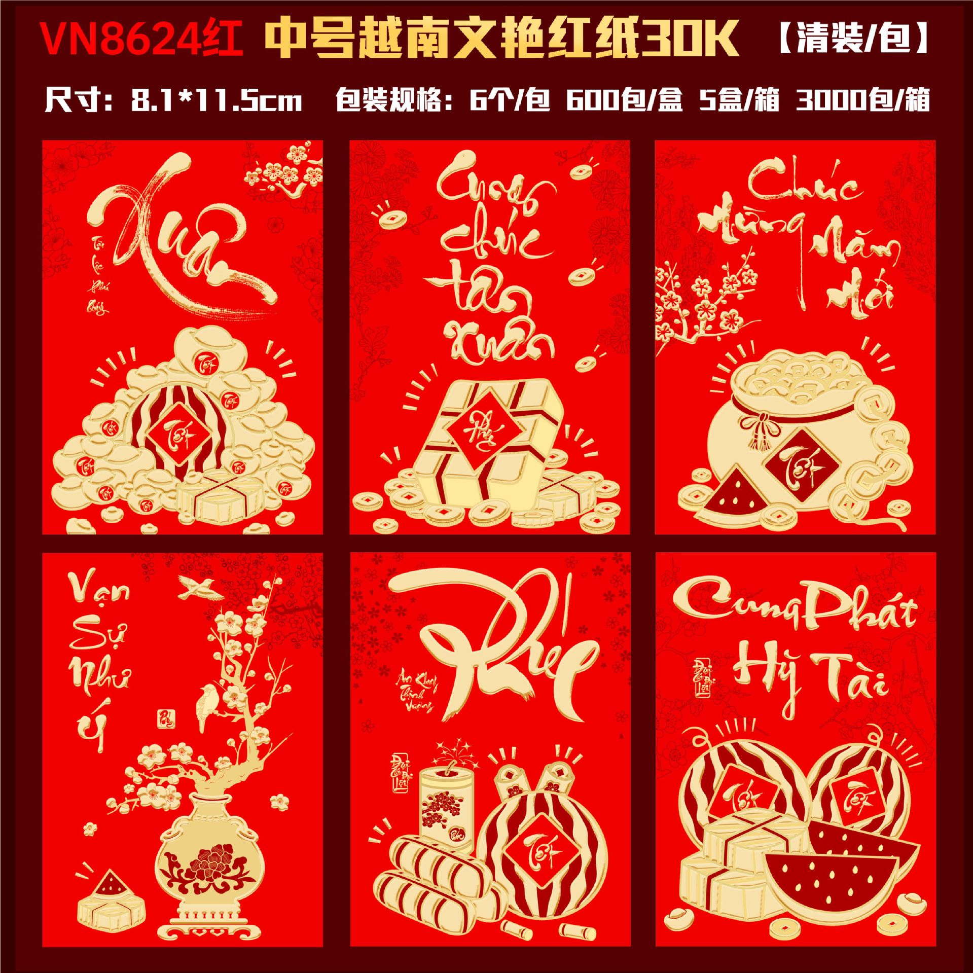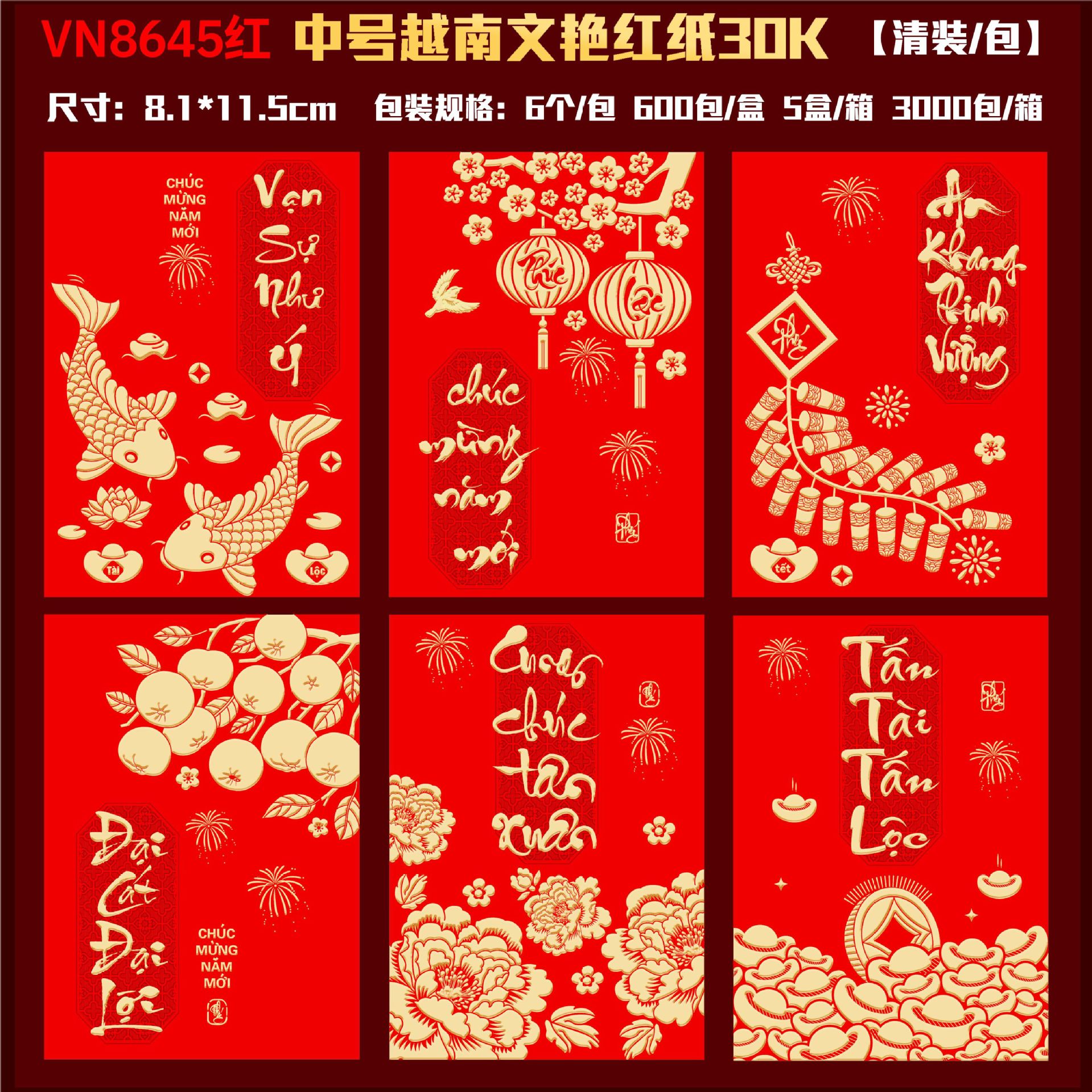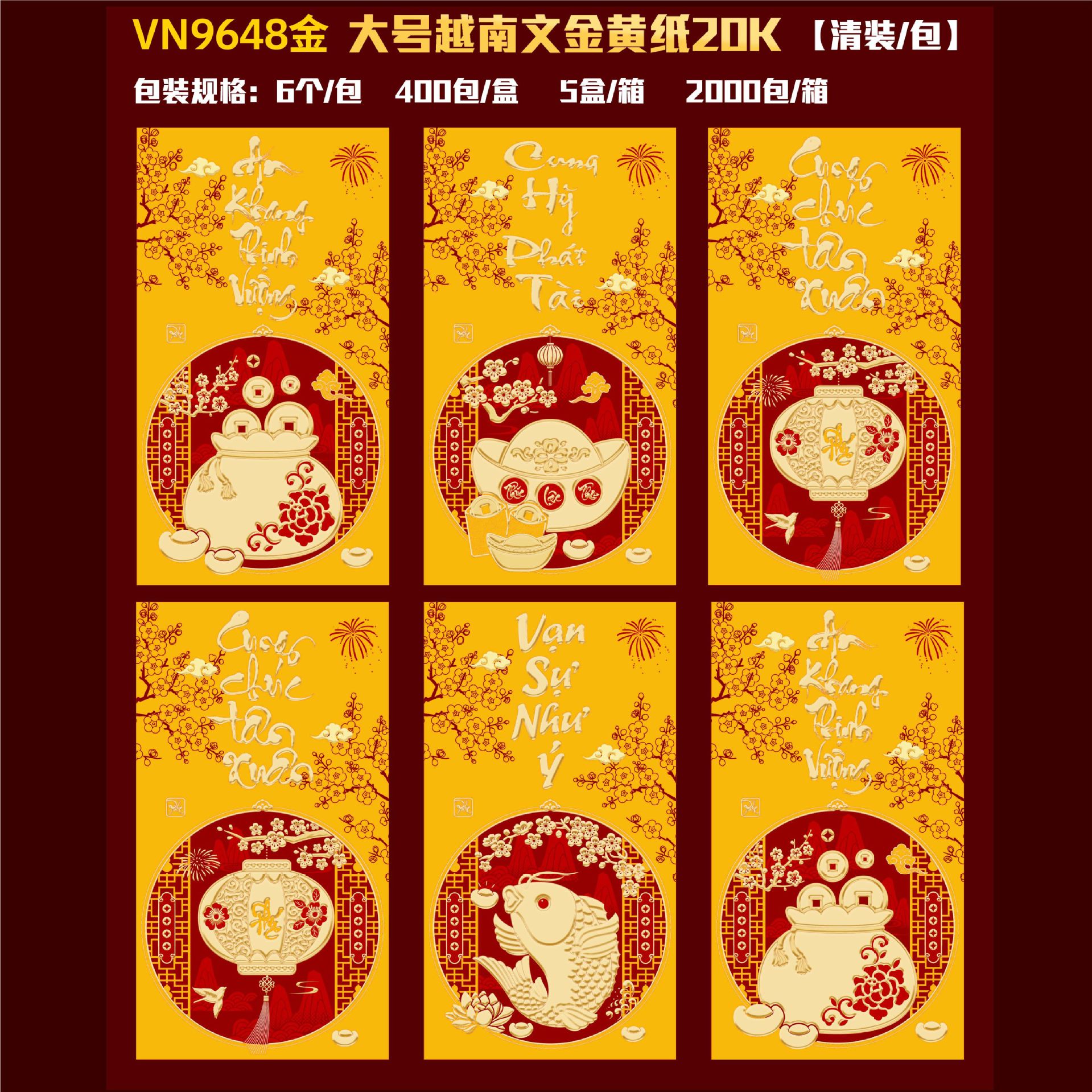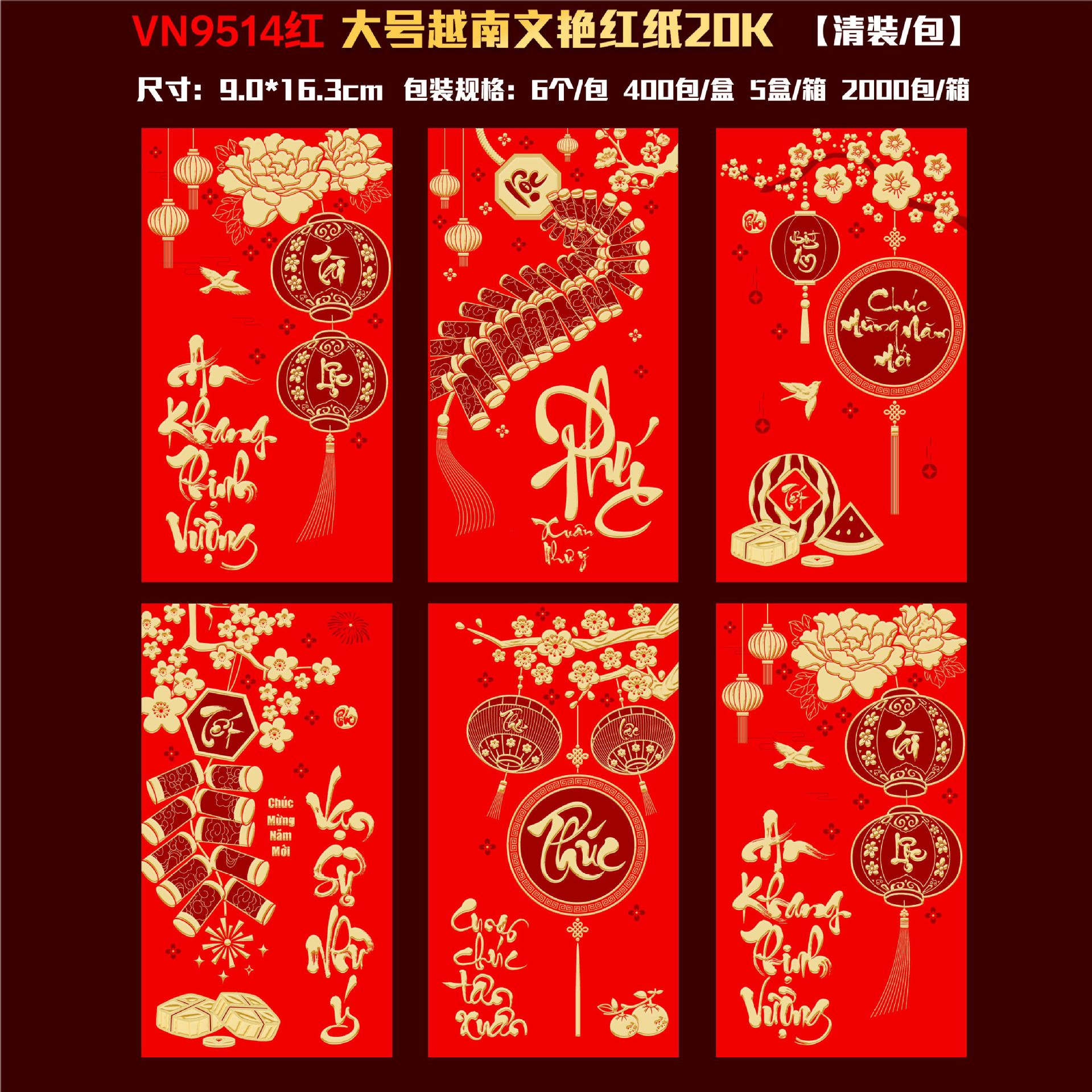 越南文跨境批发2026马年金黄珠光红包新款新年压岁卡通生肖利是封