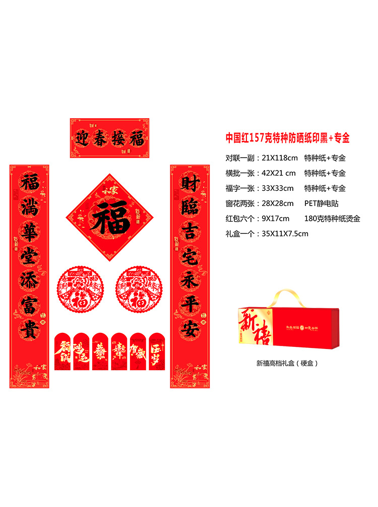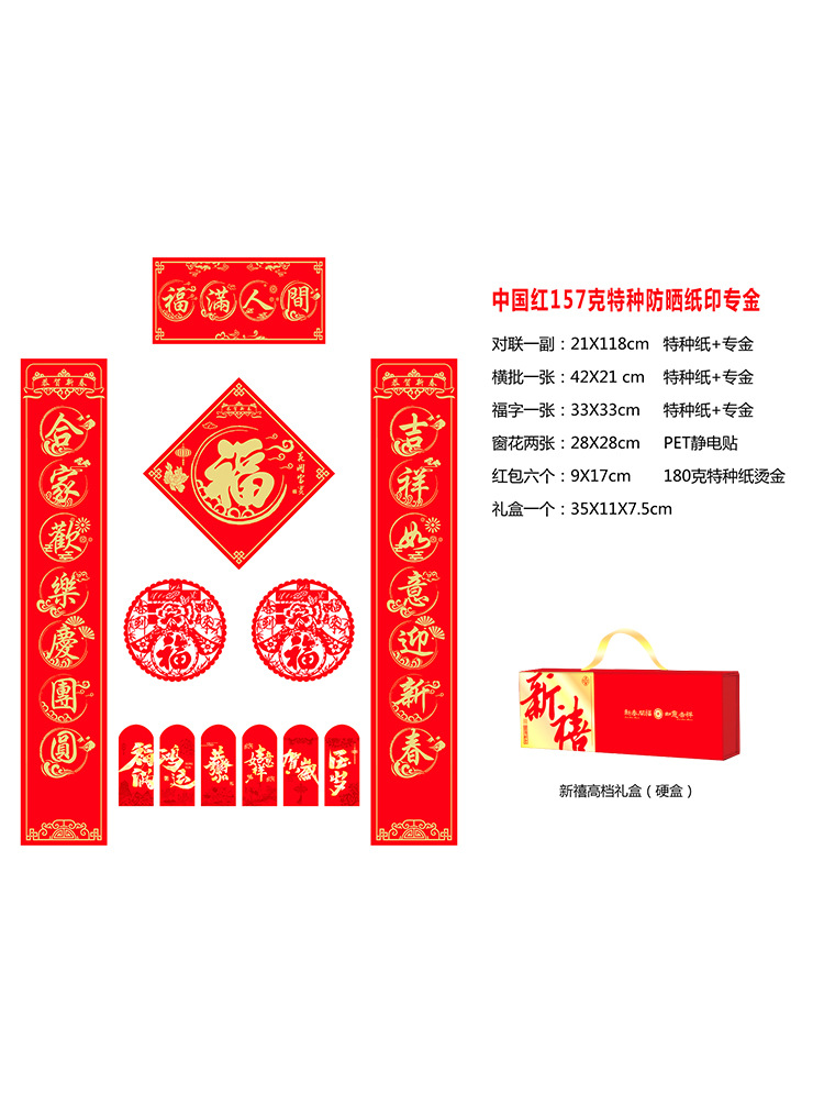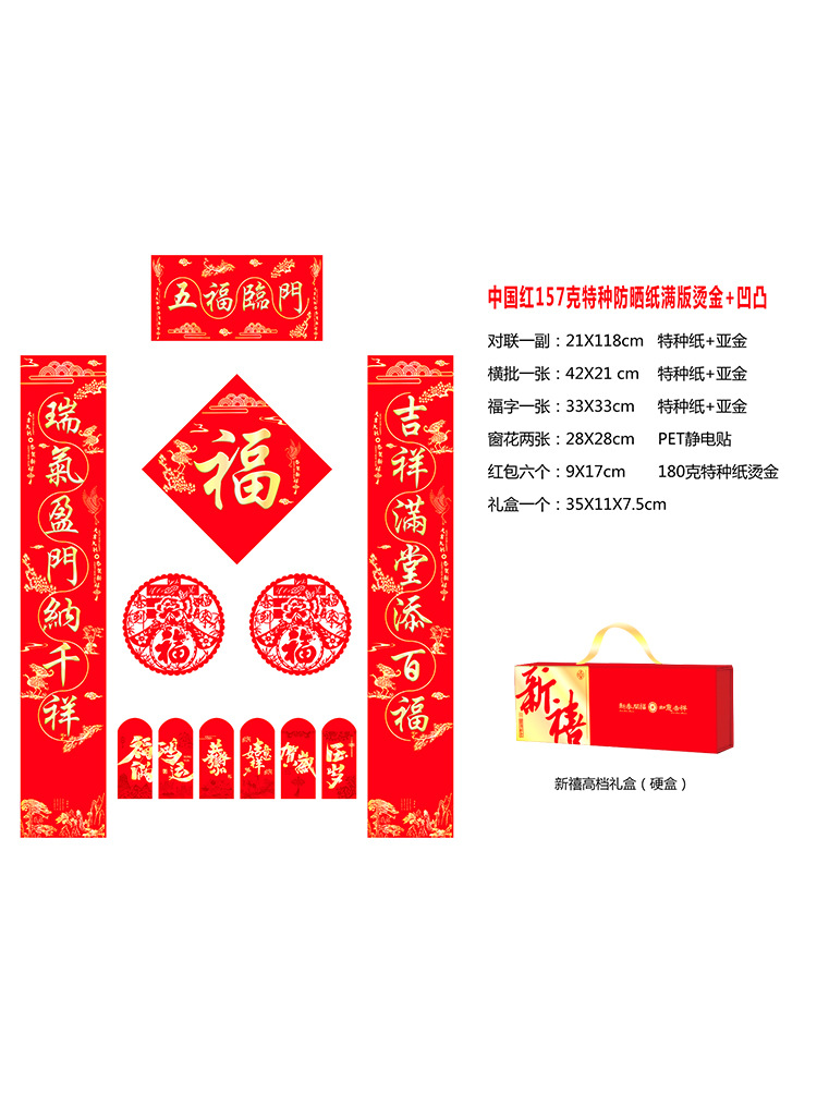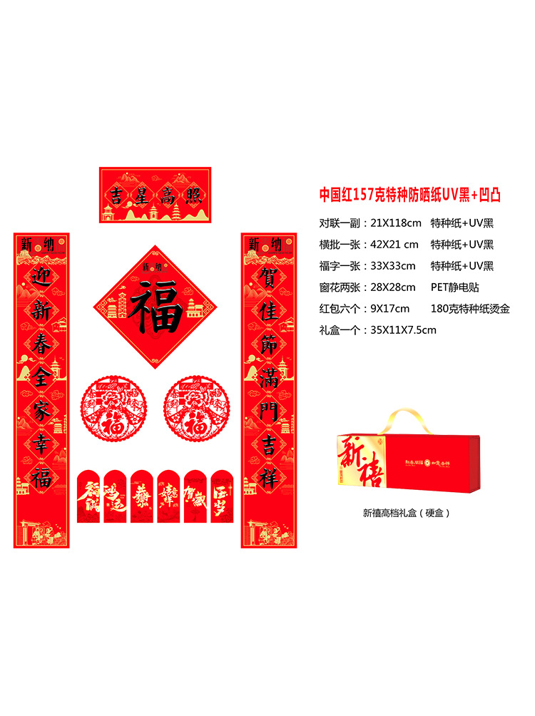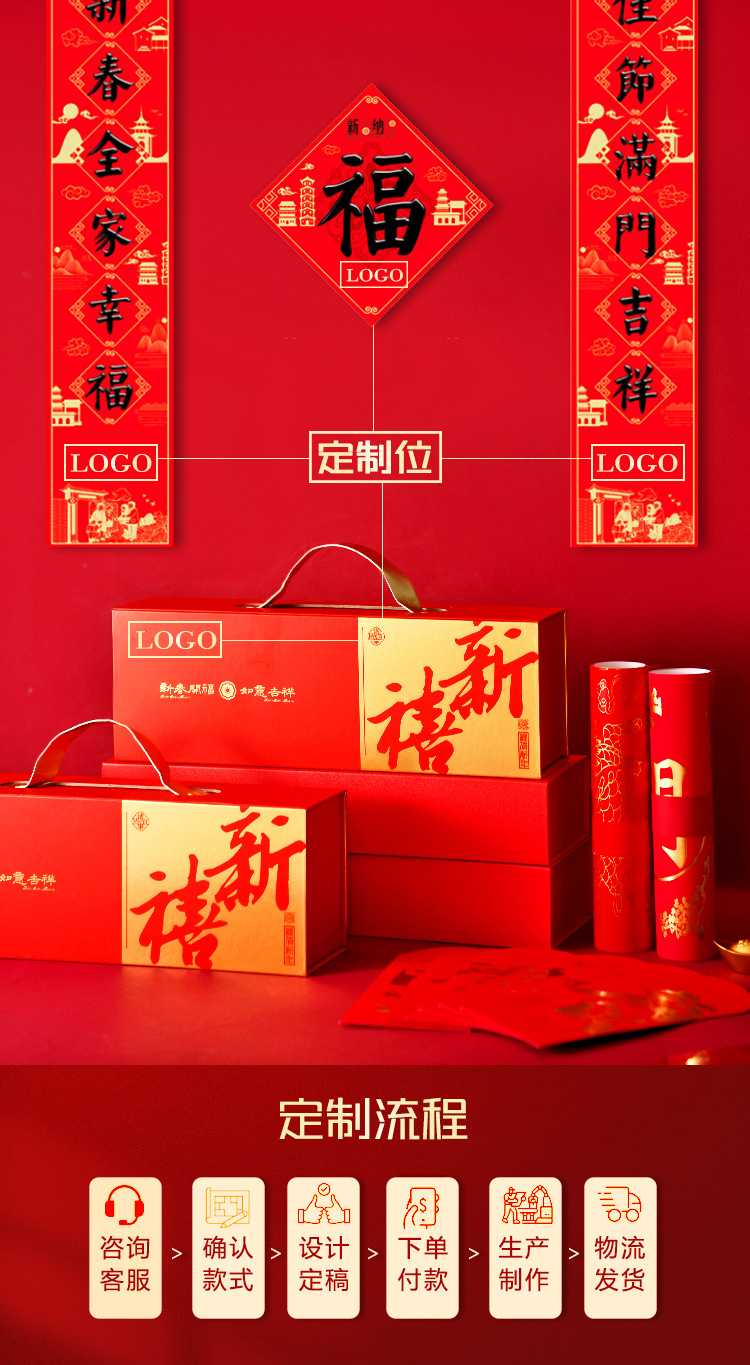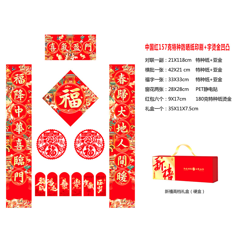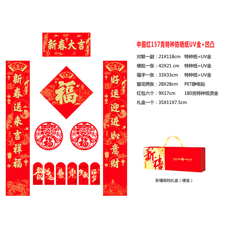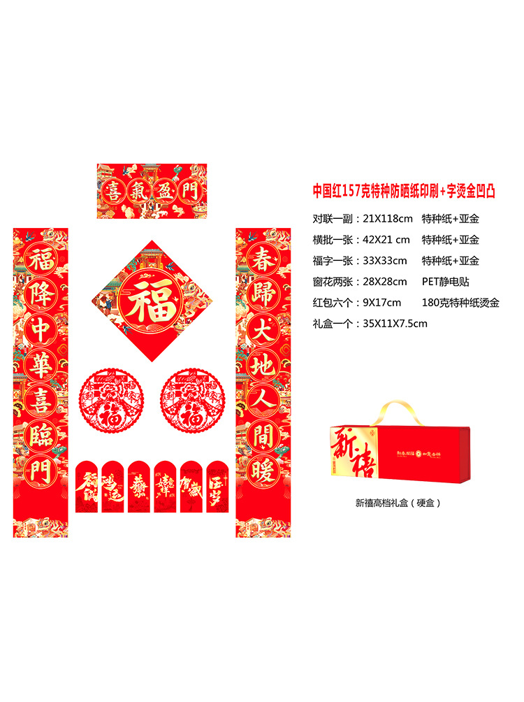 2026年马年新春烫金对联门联新年春联红包福字礼盒装企业银行印lo